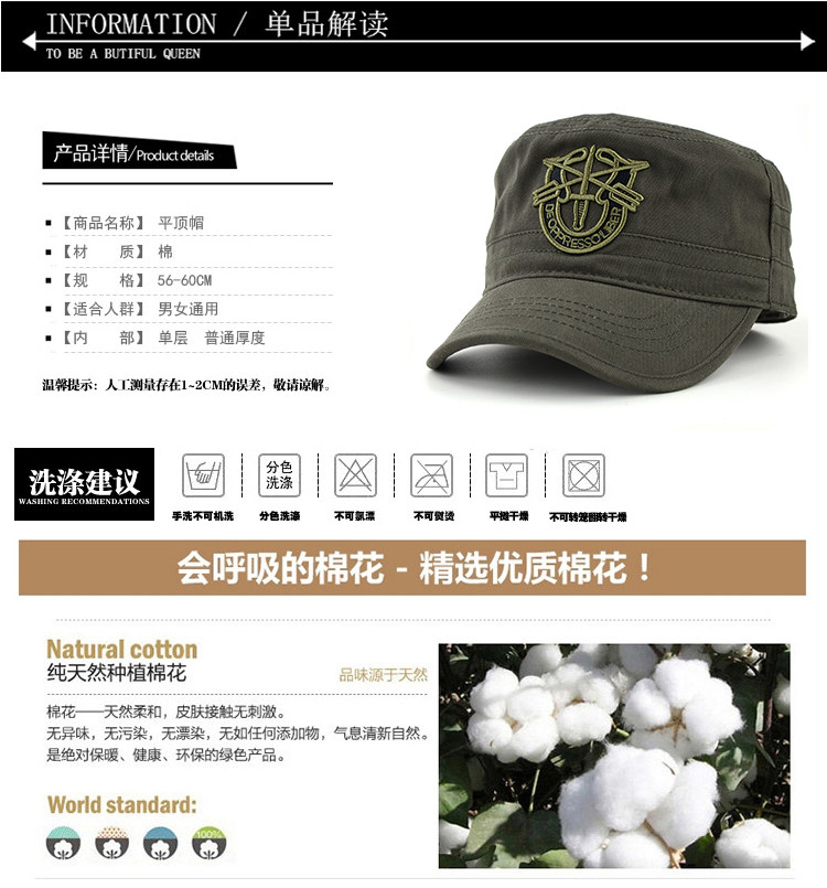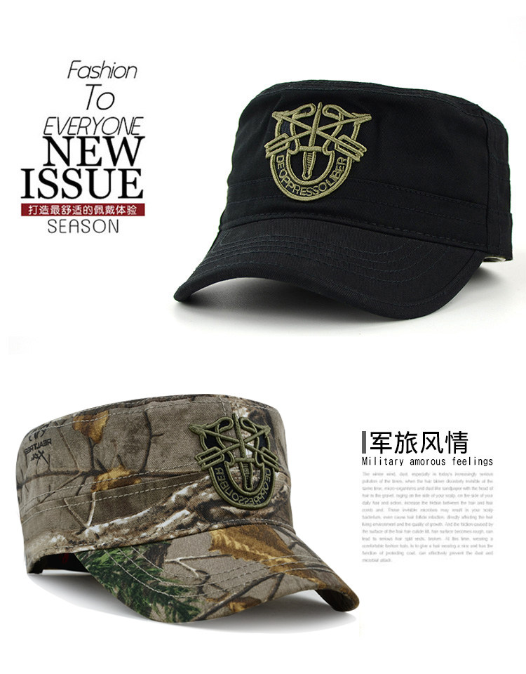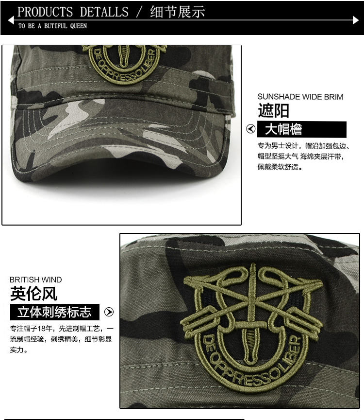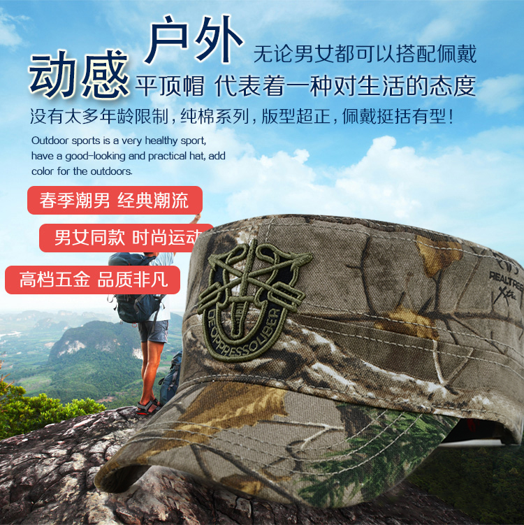 秋冬季迷彩军帽平顶帽子男士户外休闲运动遮太阳鸭舌棒球帽春夏天