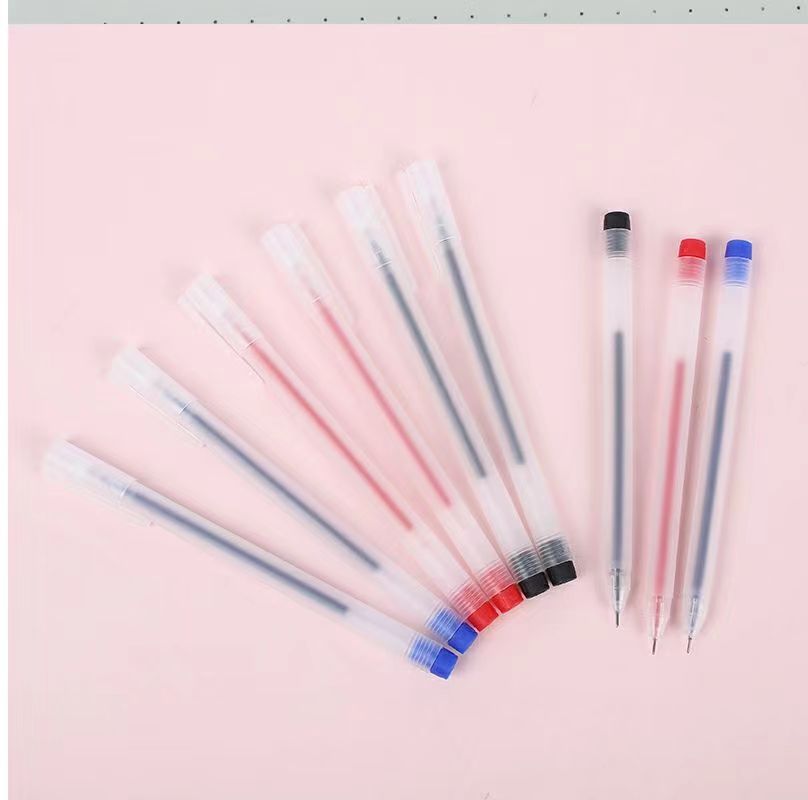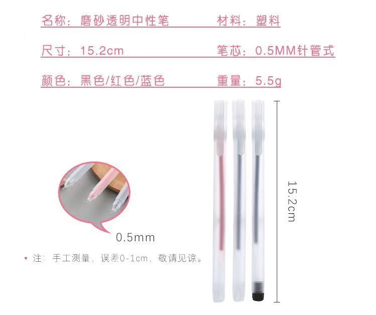 透明简约中性笔学生无印风黑笔全针管磨砂小白笔办公签字笔批发
