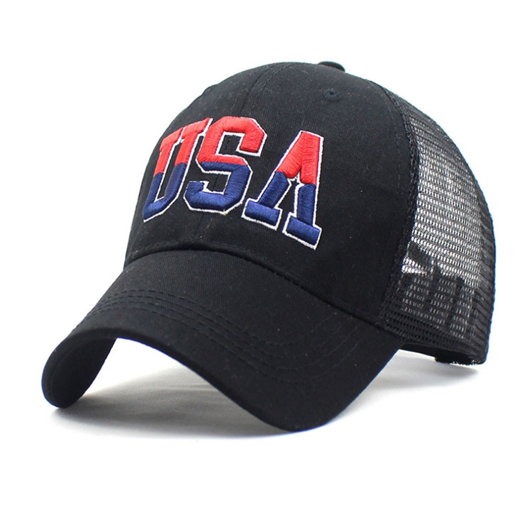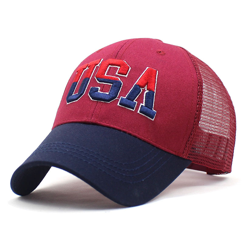 2021跨境亚马逊帽子大绣花棉美国旗棒球帽经典美国USA绣花鸭舌帽