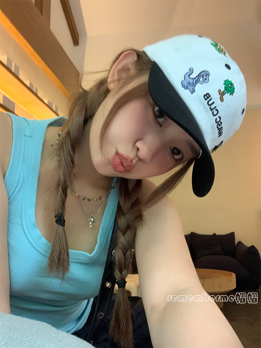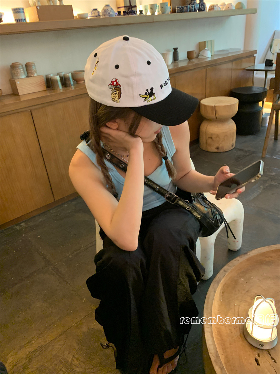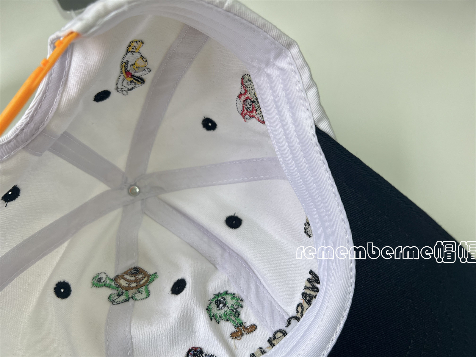韩国博主feve同款动物刺绣趣味鸭舌帽黑白拼色软顶棒球帽子女