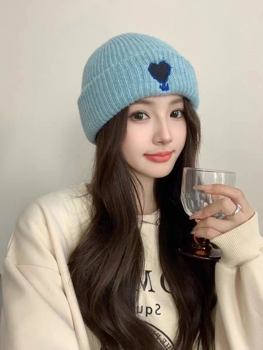 日系甜美刺绣爱心毛线帽子女秋冬季保暖护耳学生网红时尚针织帽潮