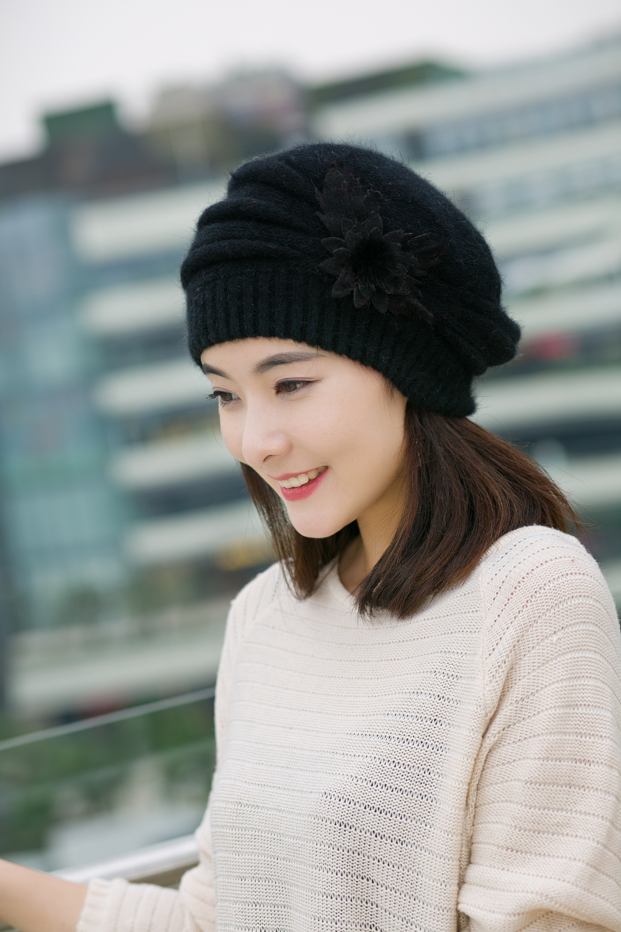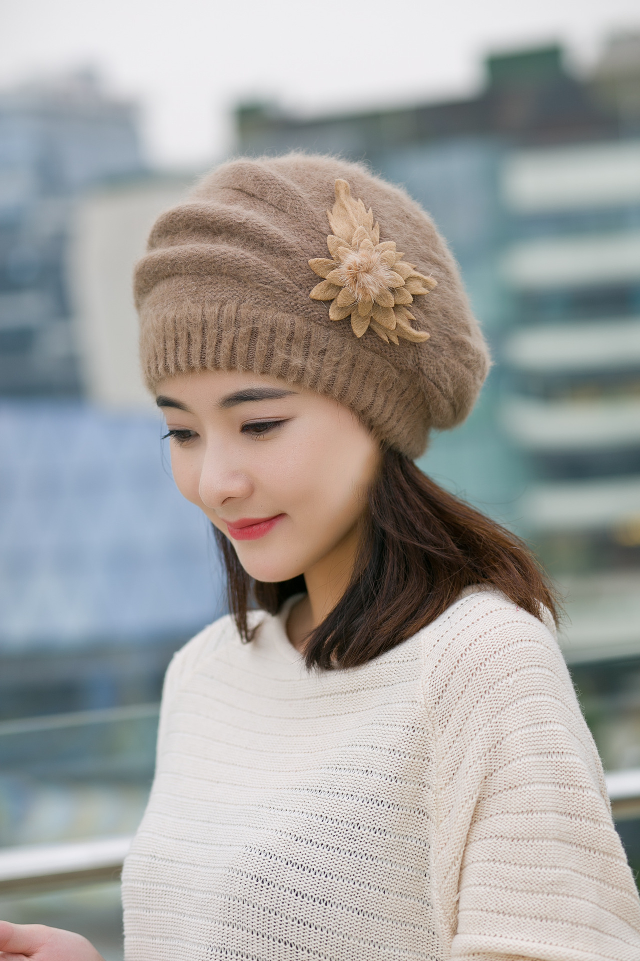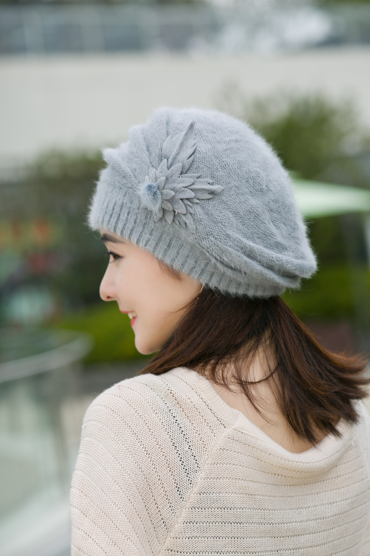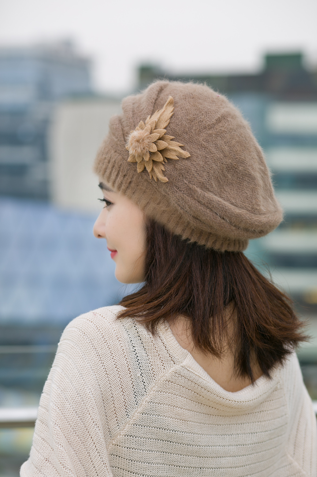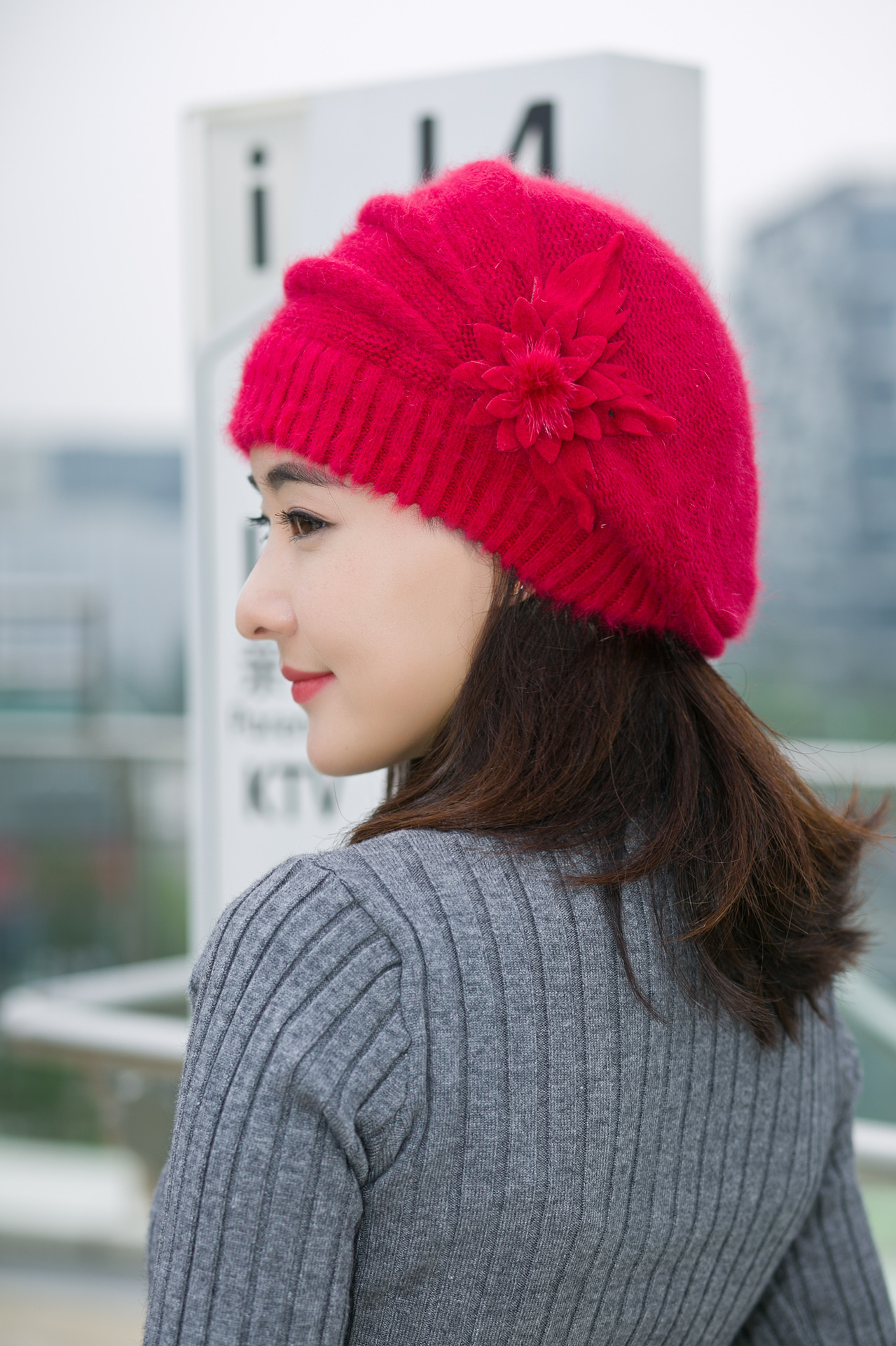 2016新款兔毛贝雷帽秋冬季保暖针织帽子 女士毛线帽韩版冬画家