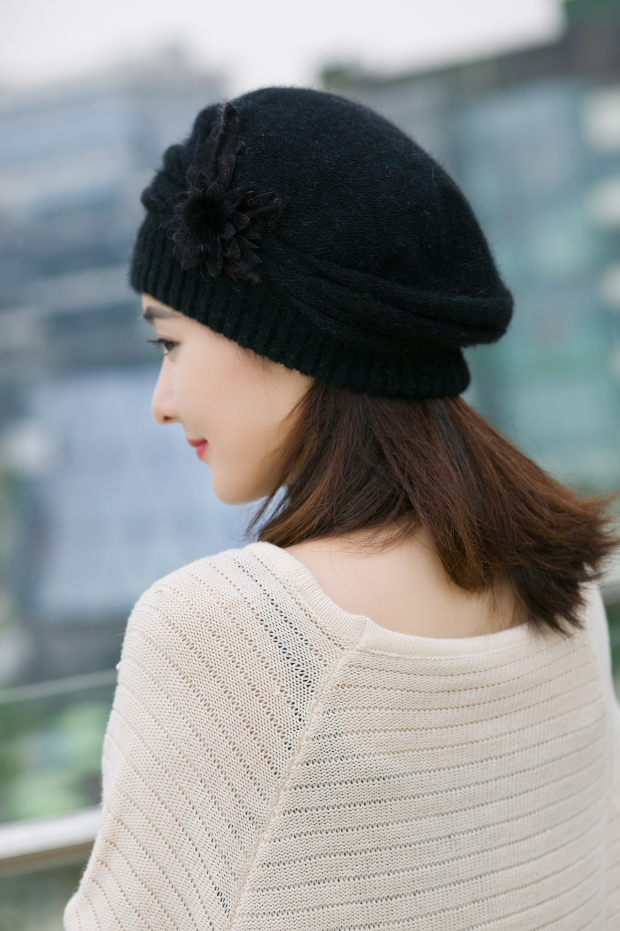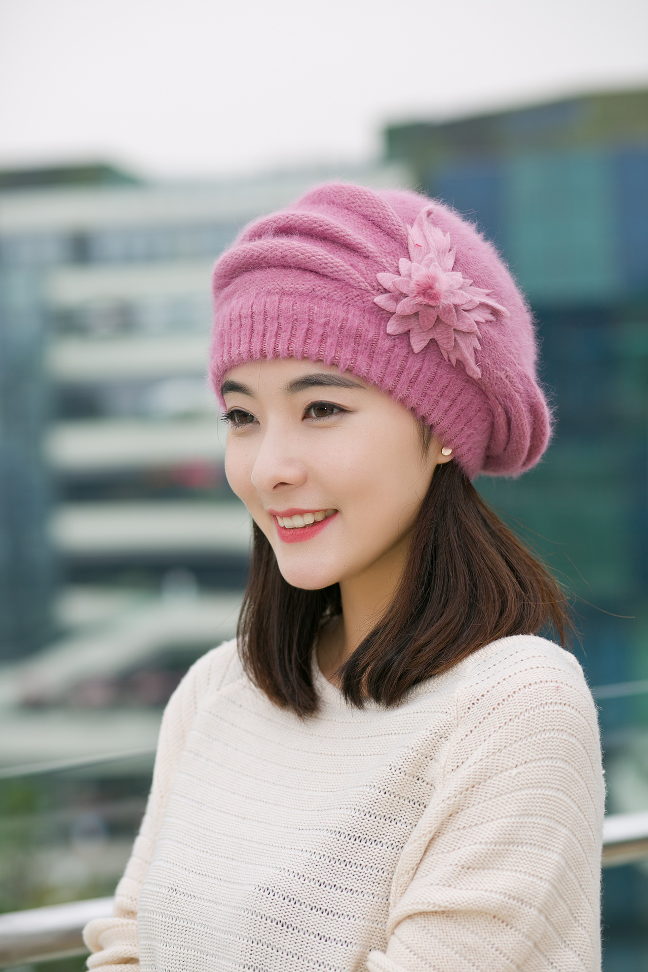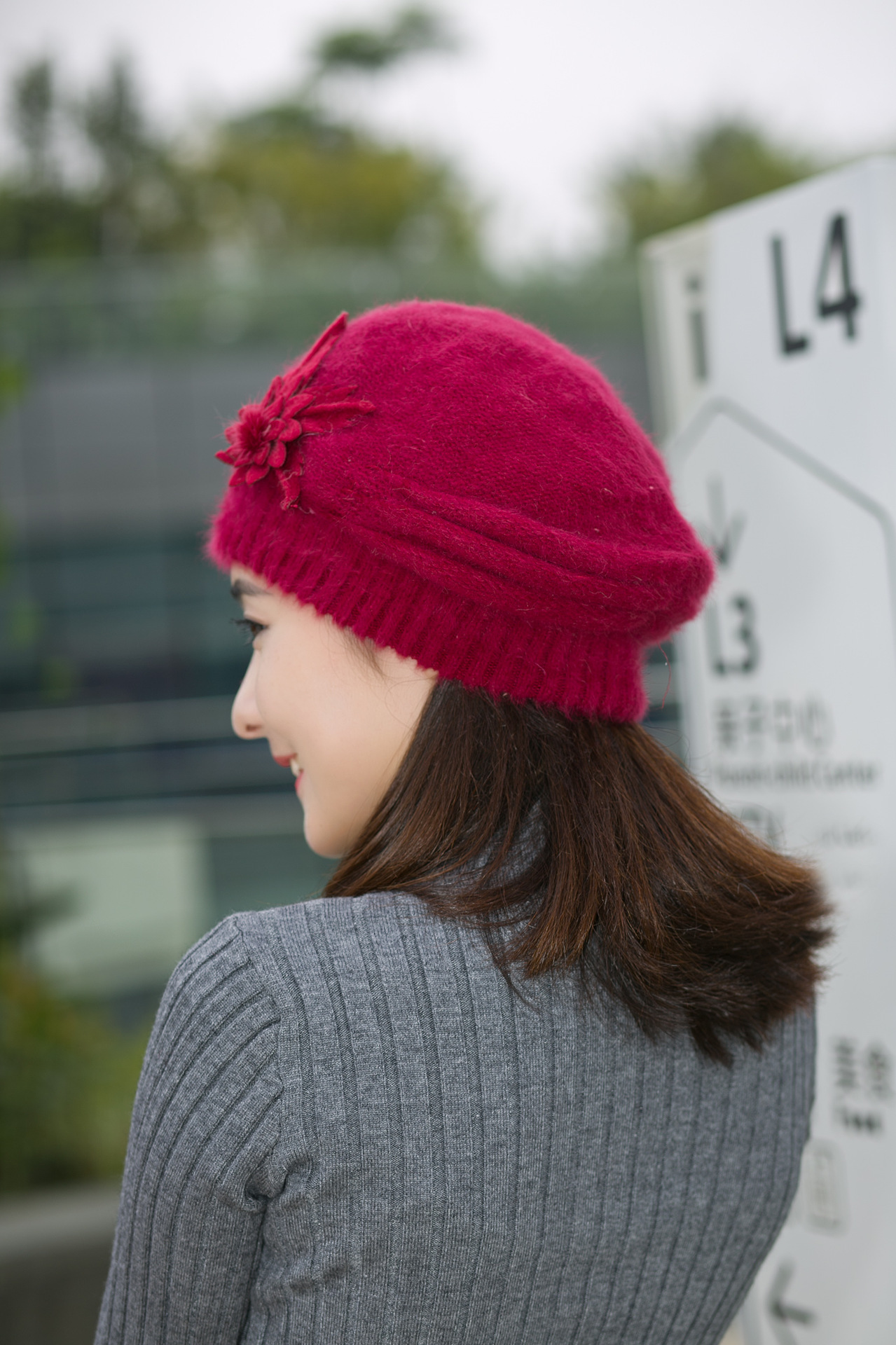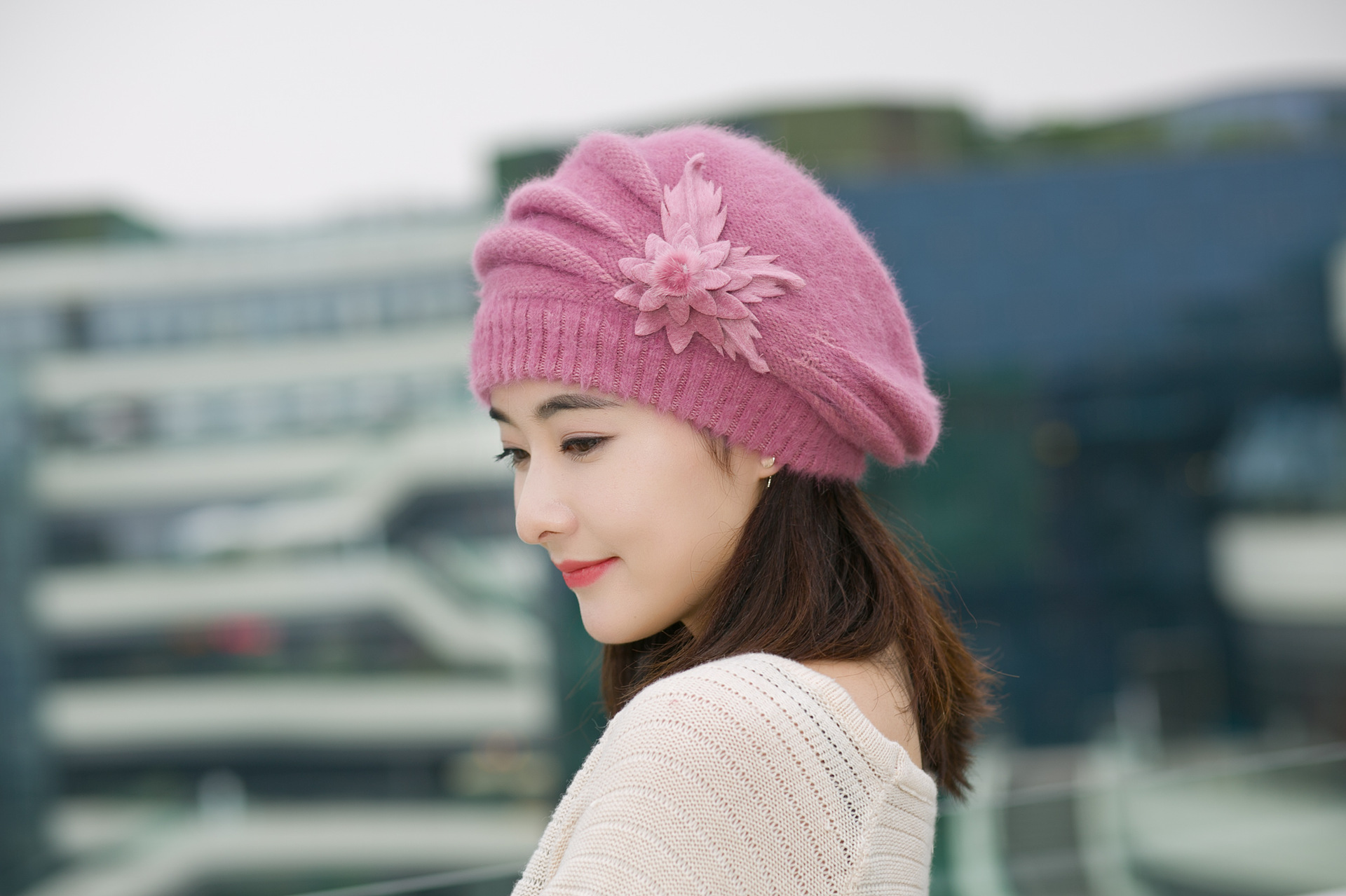 2016新款兔毛贝雷帽秋冬季保暖针织帽子 女士毛线帽韩版冬画家