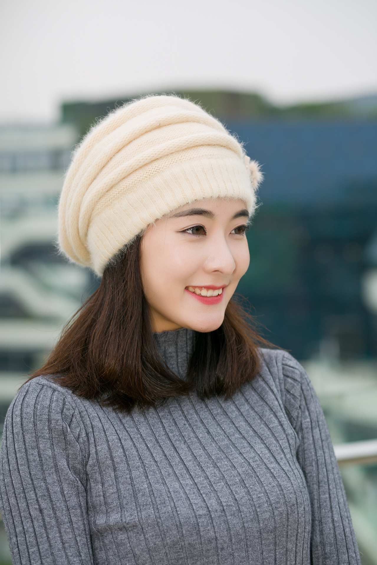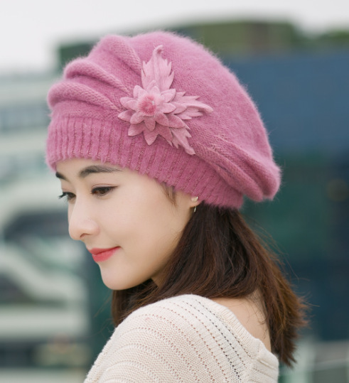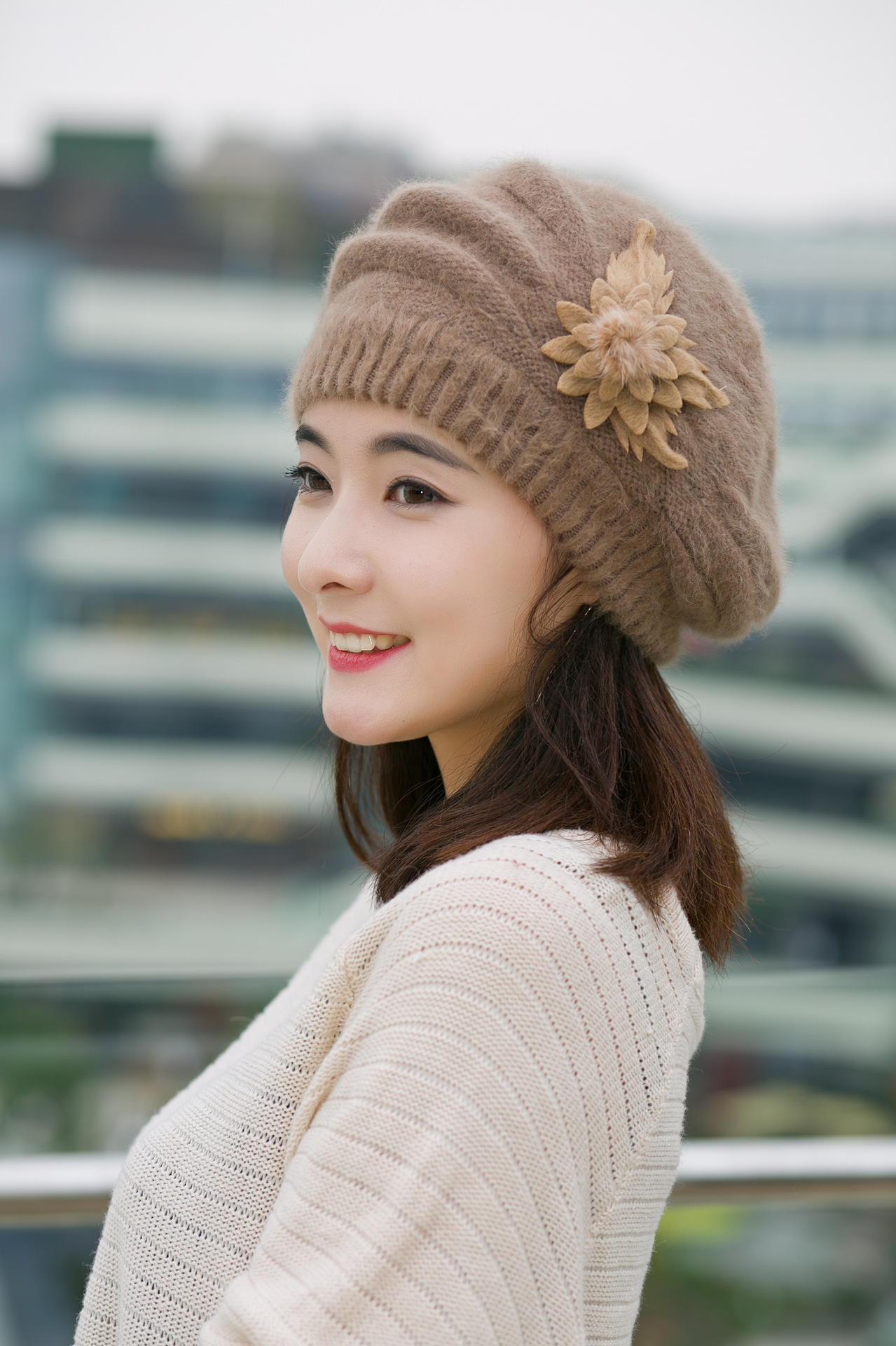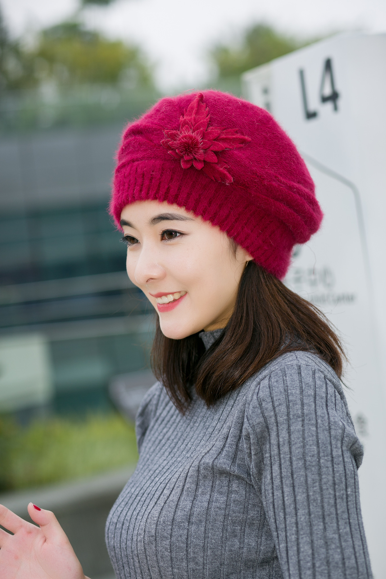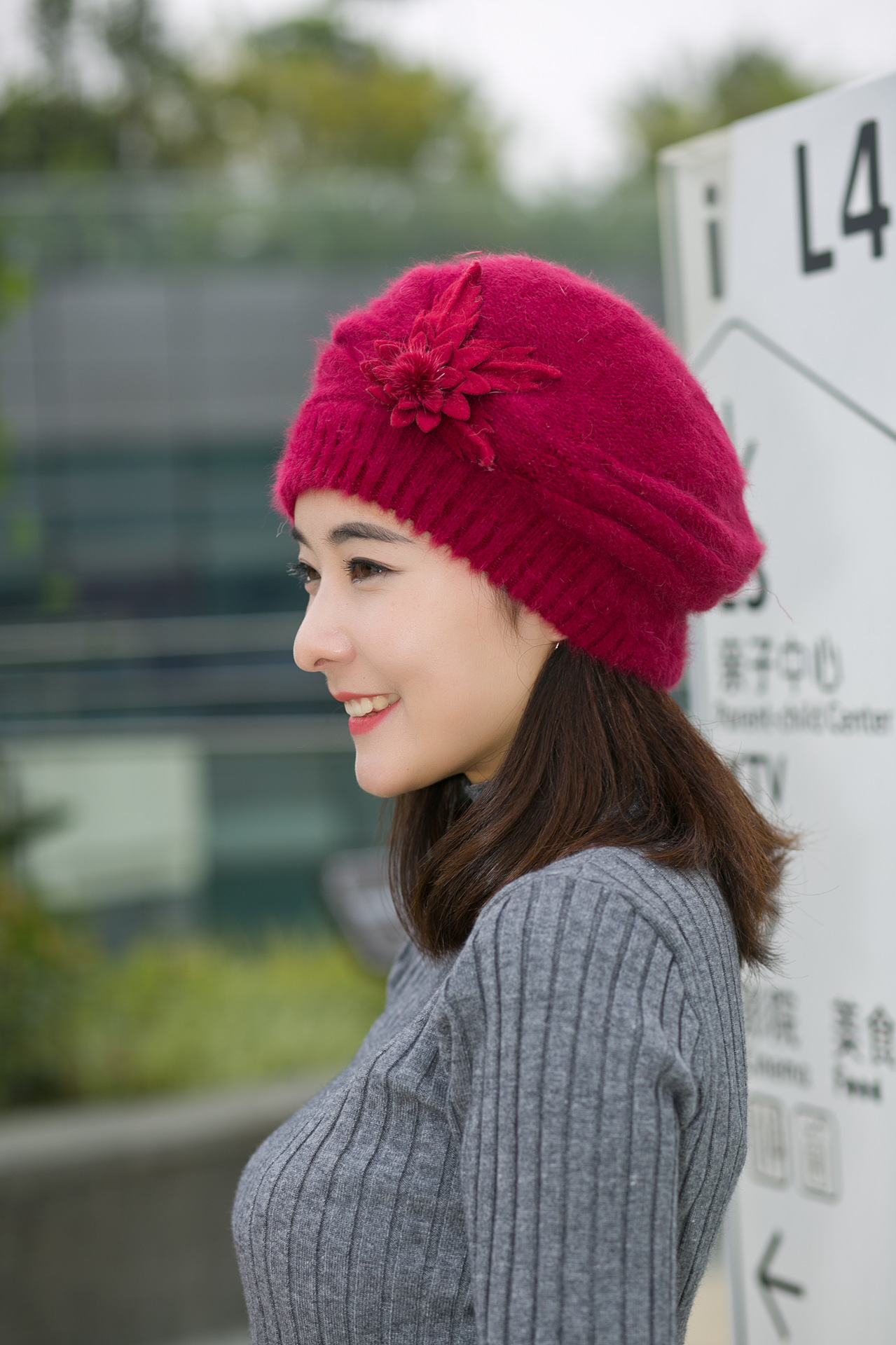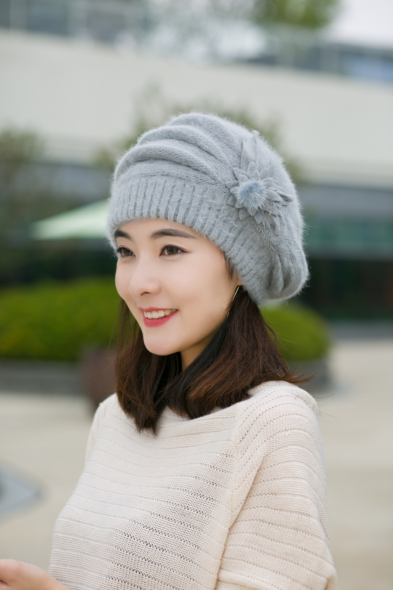 2016新款兔毛贝雷帽秋冬季保暖针织帽子 女士毛线帽韩版冬画家