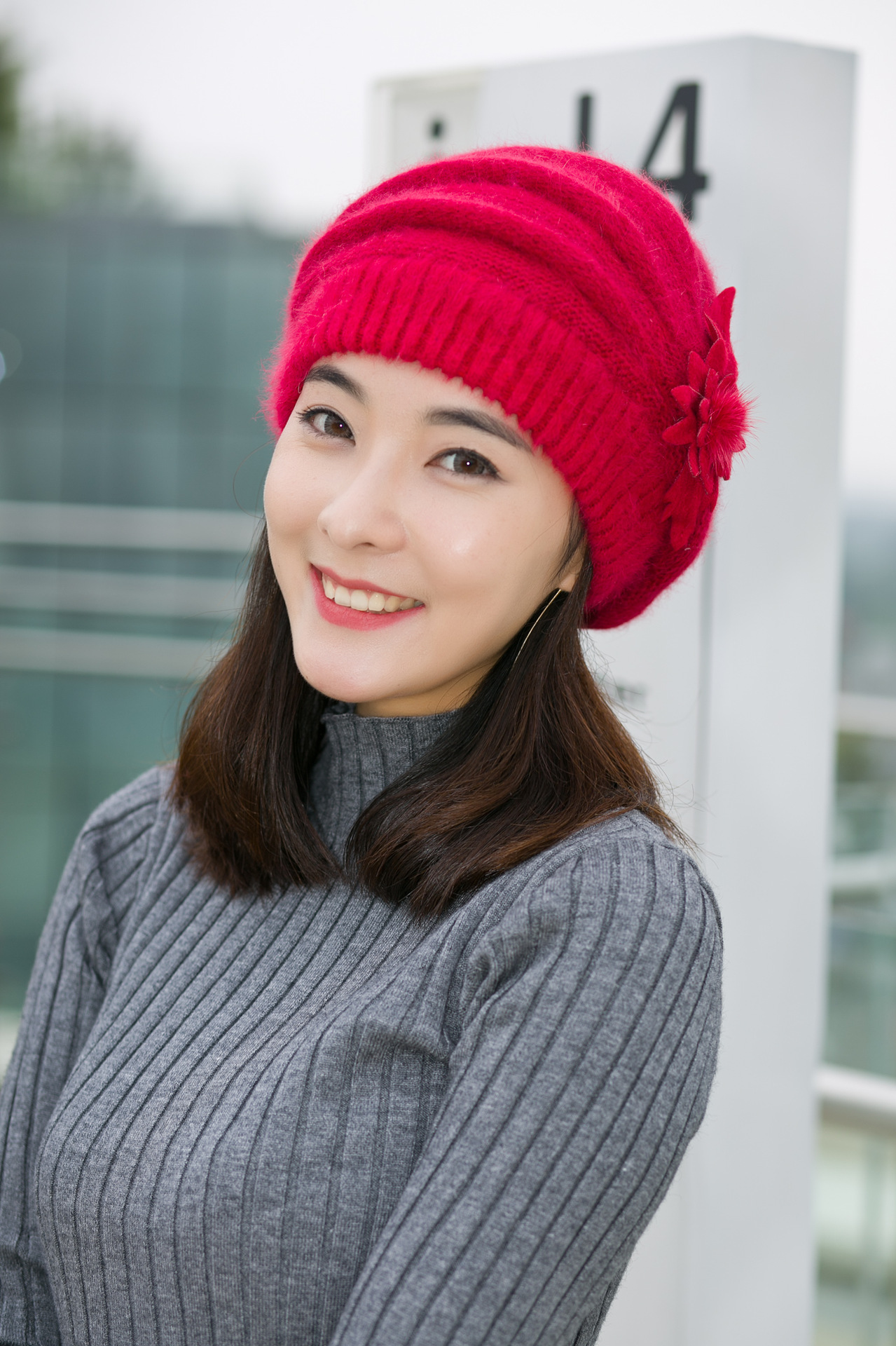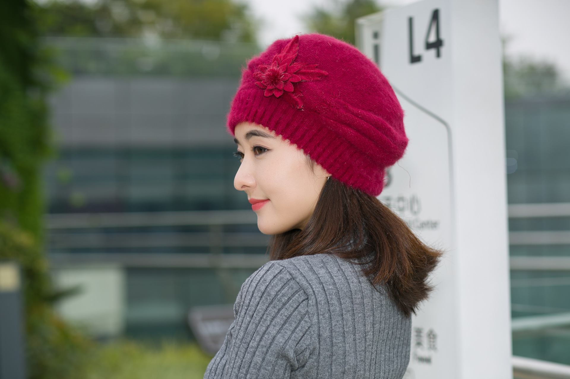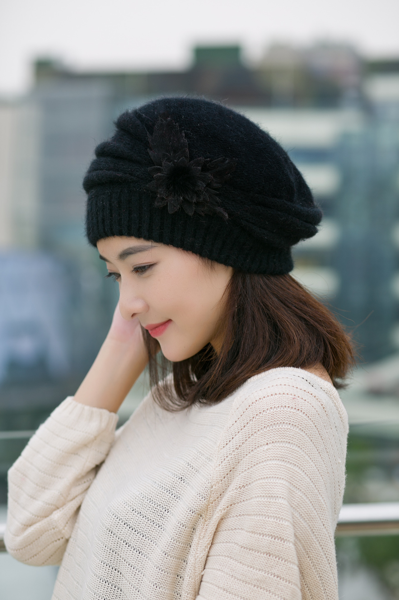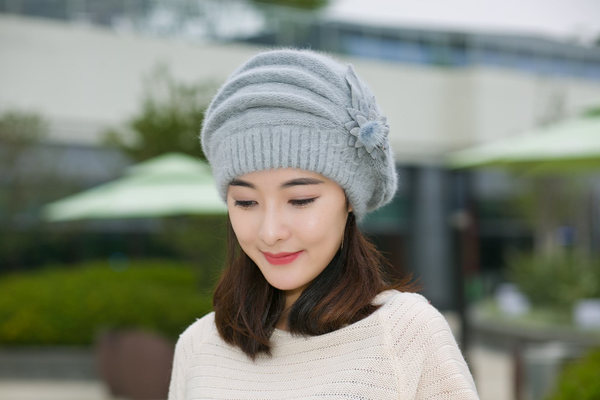 2016新款兔毛贝雷帽秋冬季保暖针织帽子 女士毛线帽韩版冬画家