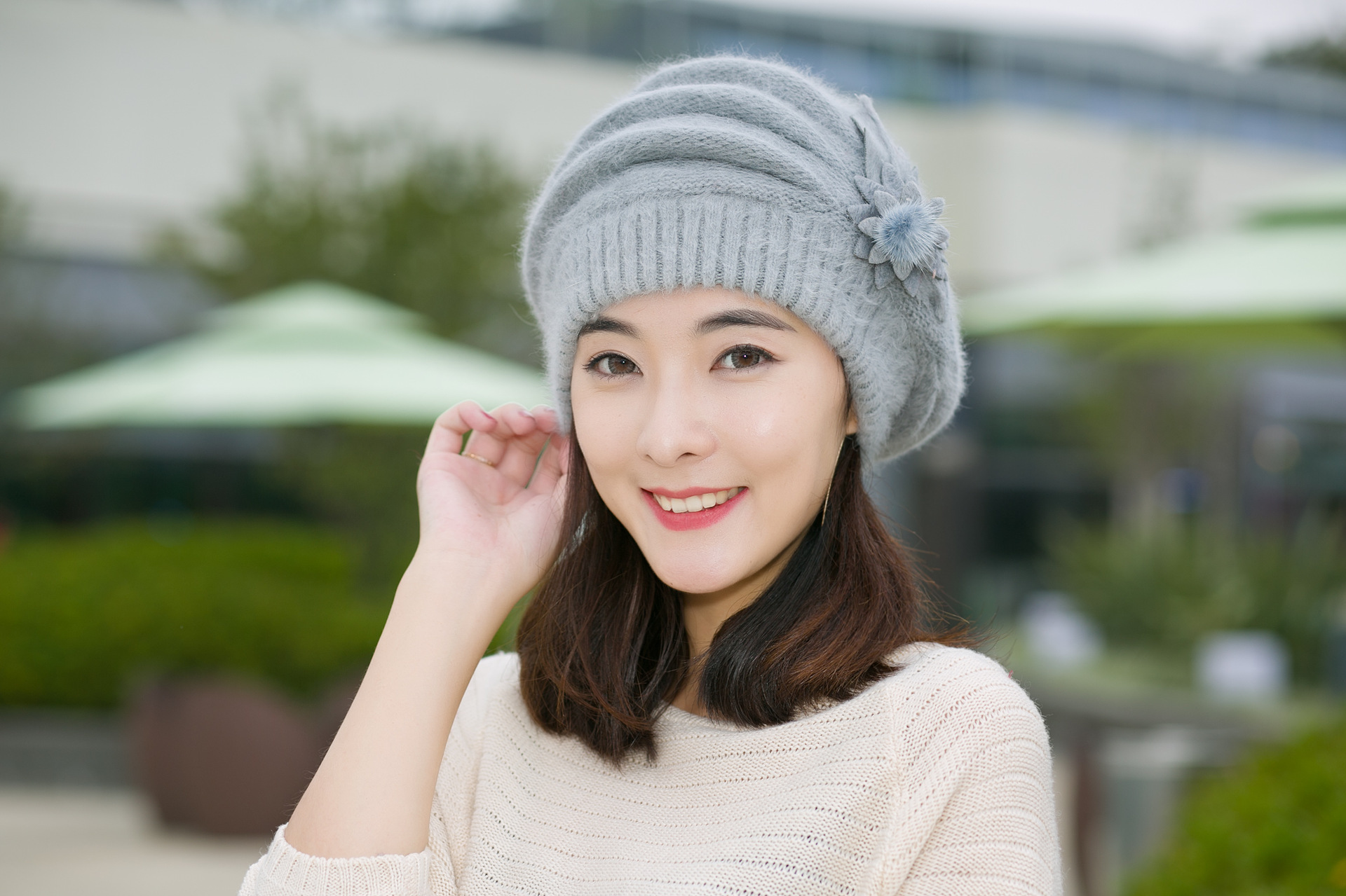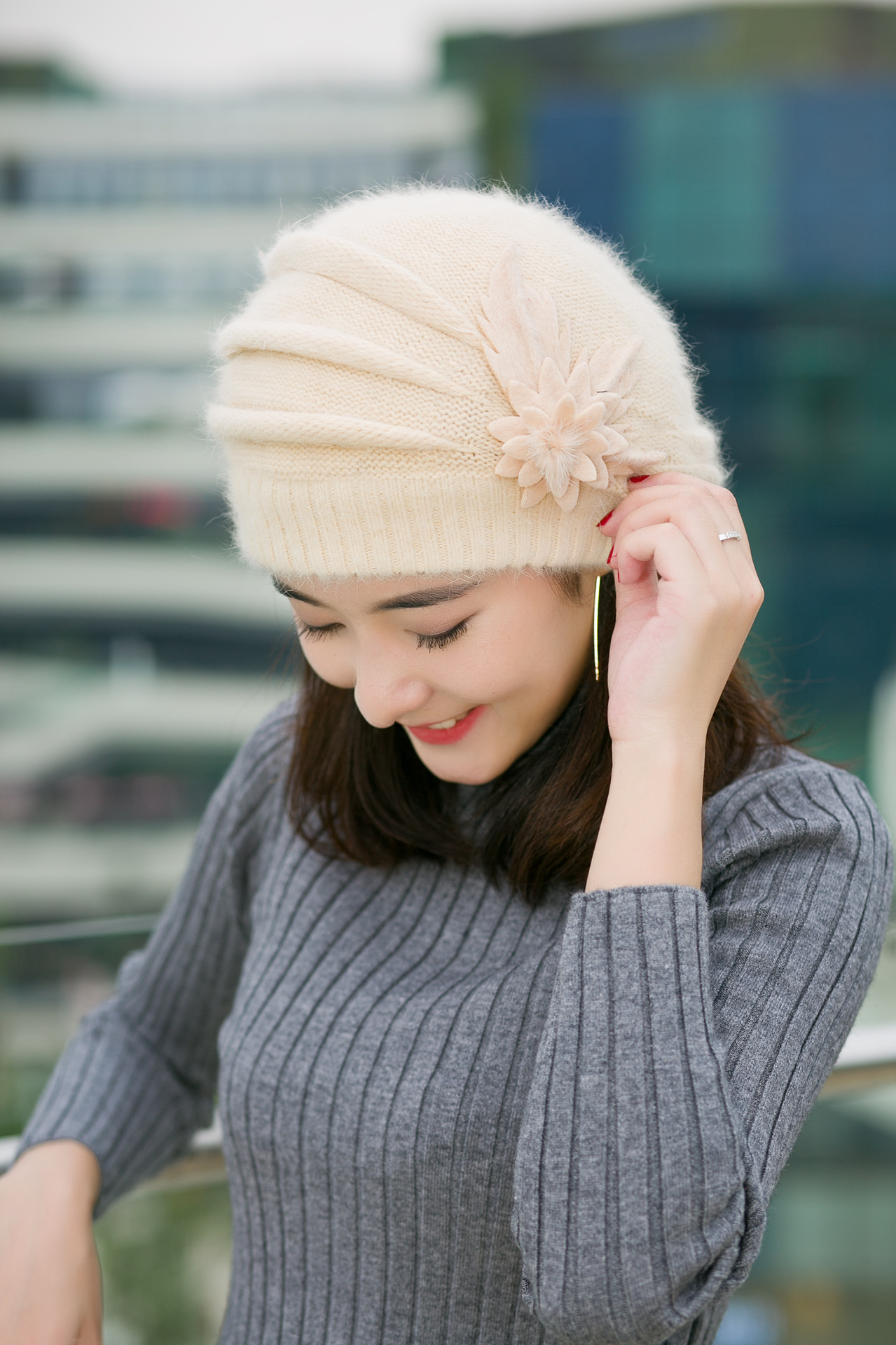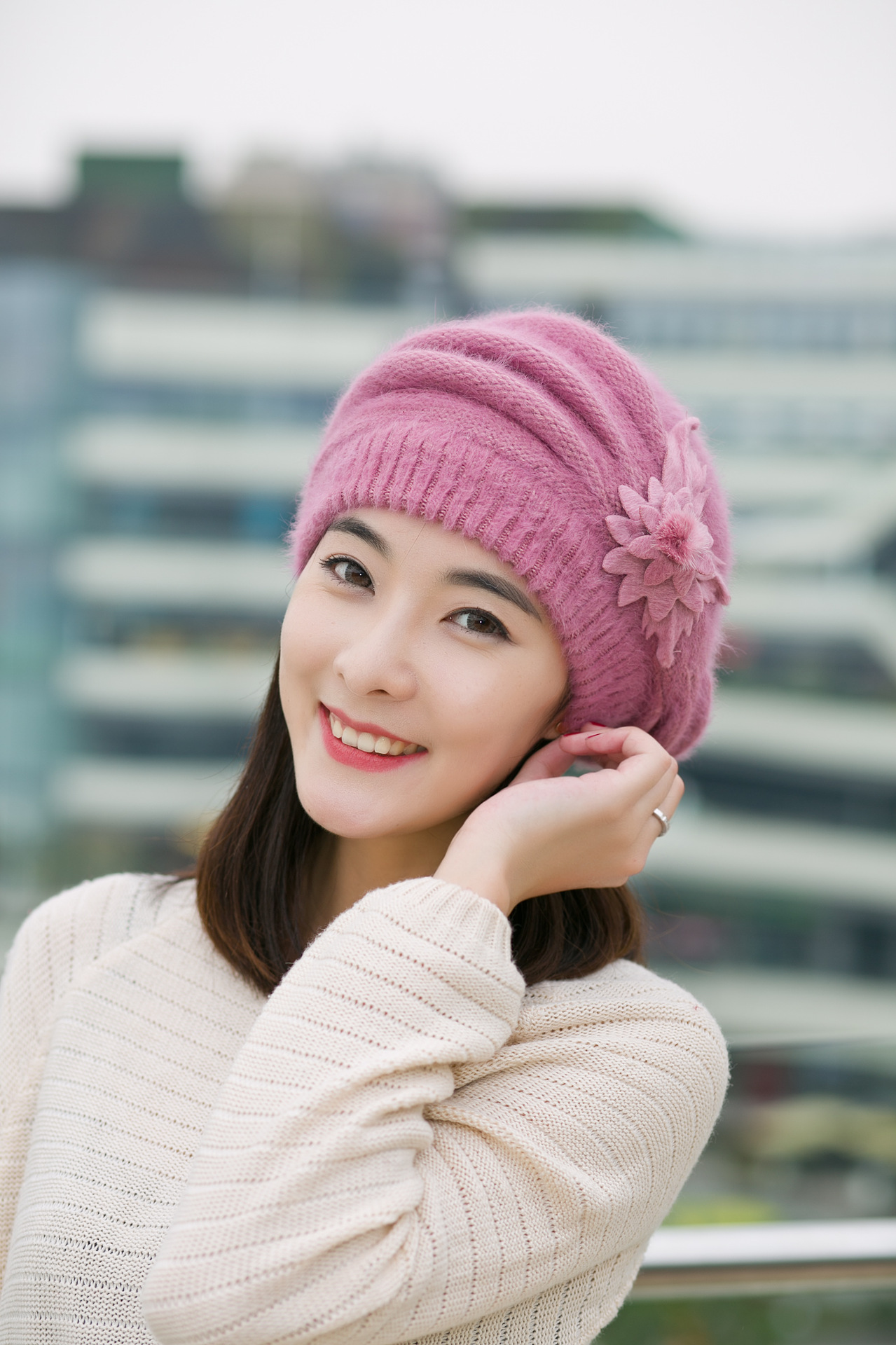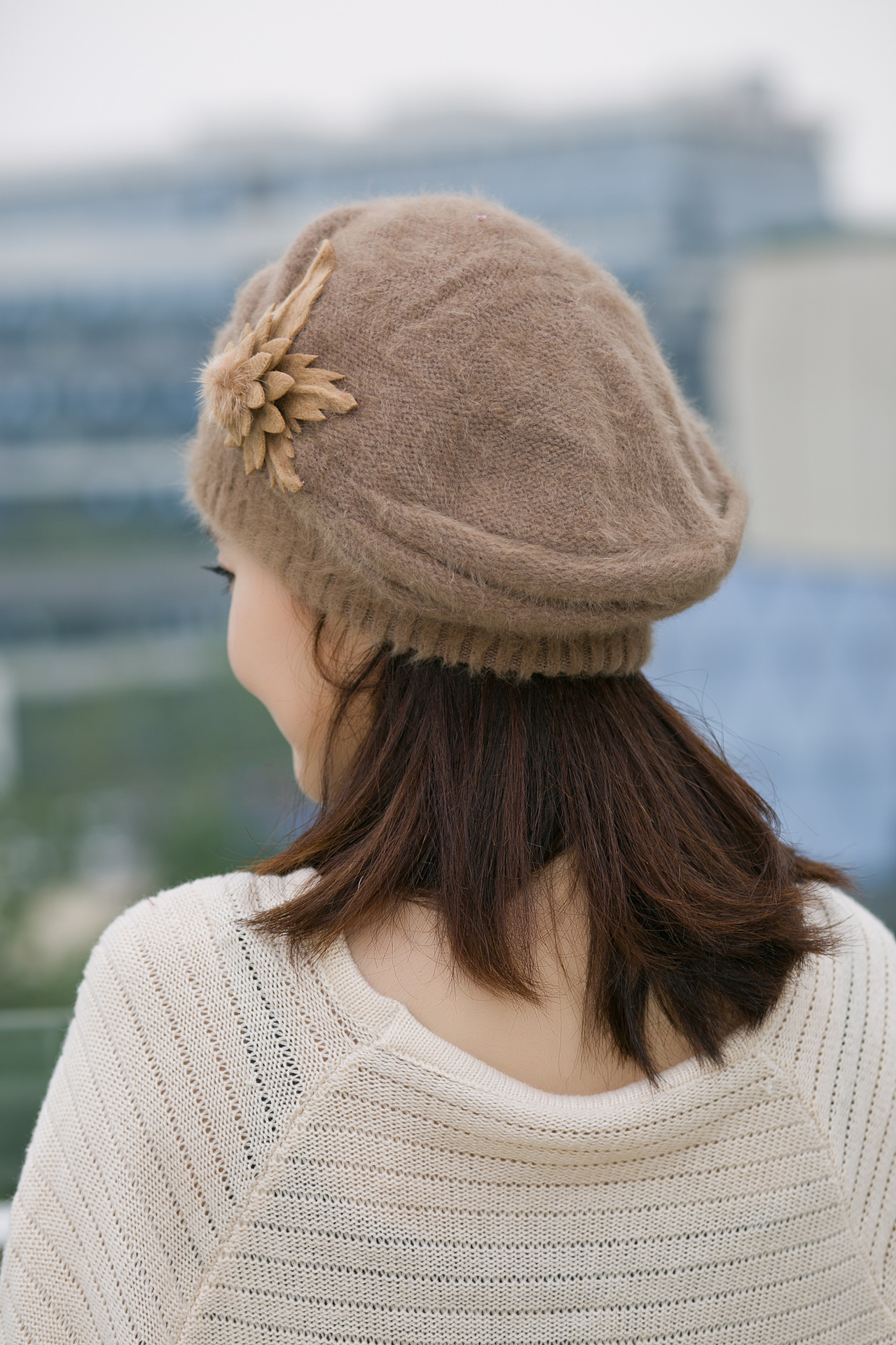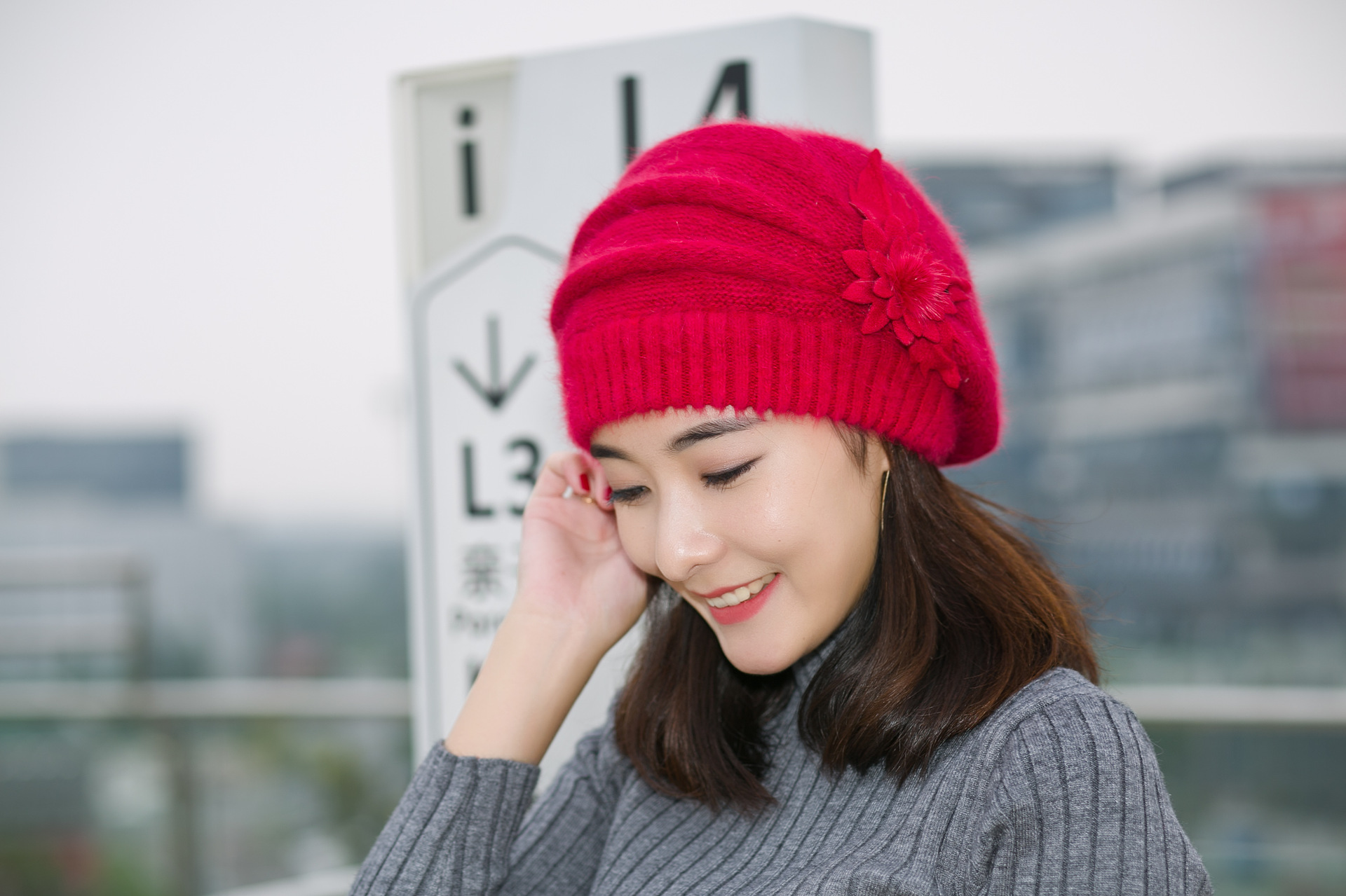 2016新款兔毛贝雷帽秋冬季保暖针织帽子 女士毛线帽韩版冬画家