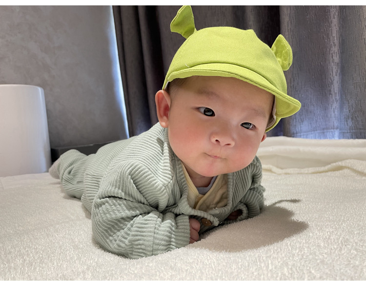 痞幼同款绿色帽子春夏薄款婴儿地主帽鸭舌帽渔夫帽宝宝儿童史莱克