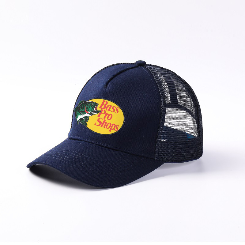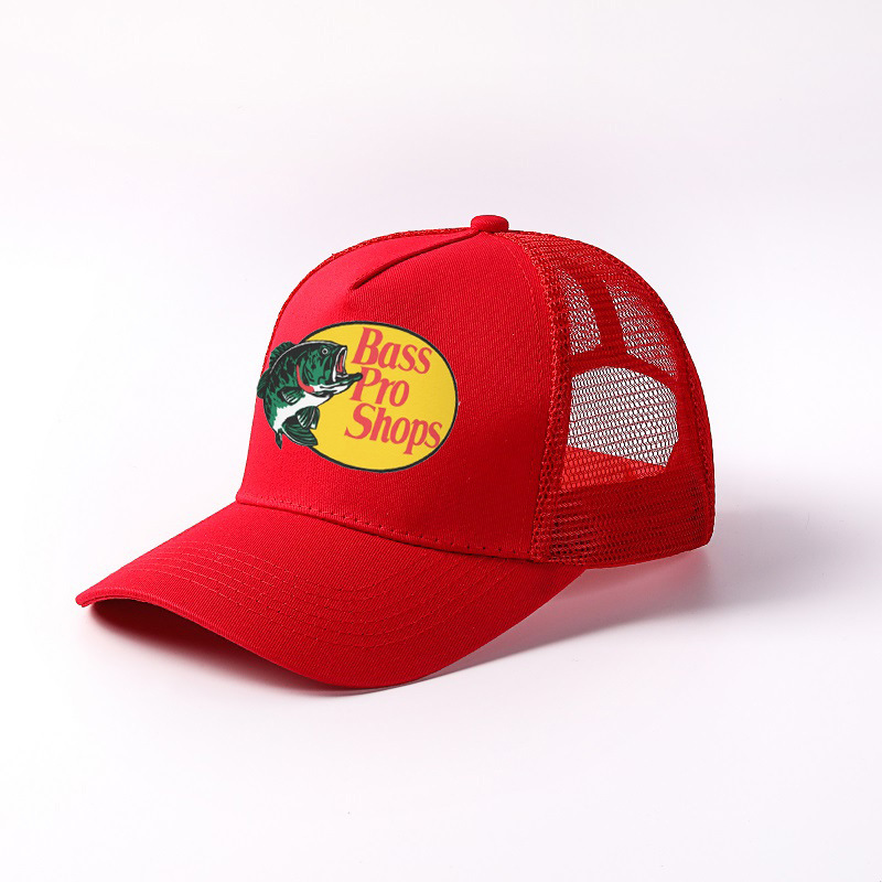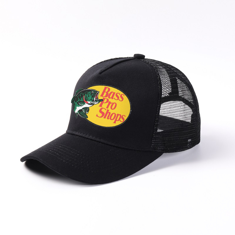 亚马逊Bassproshops印花纯棉五片网帽夏季户外钓鱼遮阳棒球帽卡车
