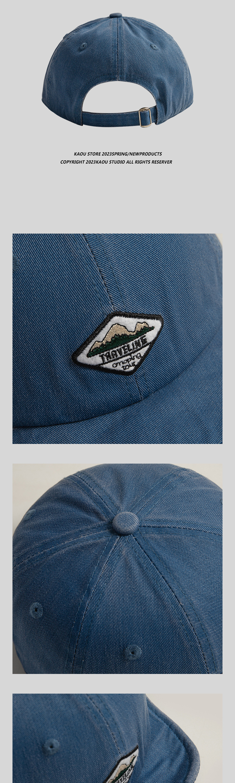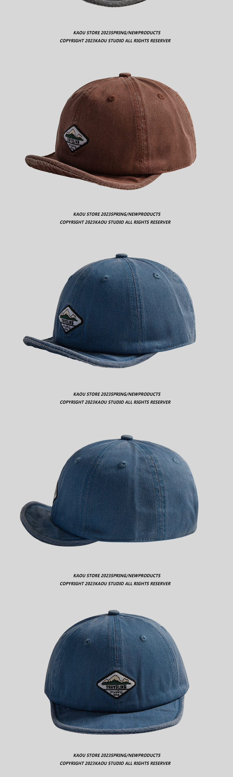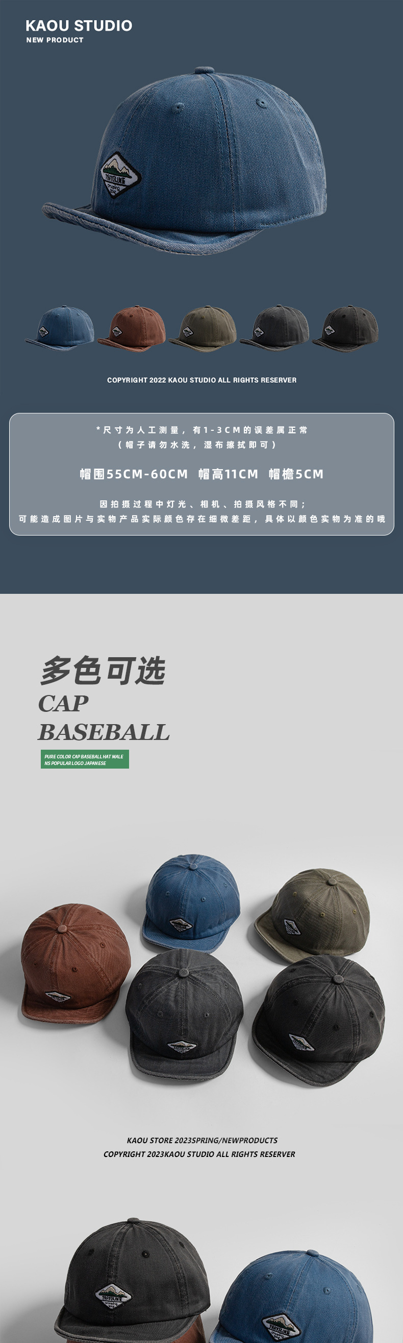 韩版短檐帽子男士水洗牛仔软檐鸭舌帽女日系做旧贴布大头围棒球帽