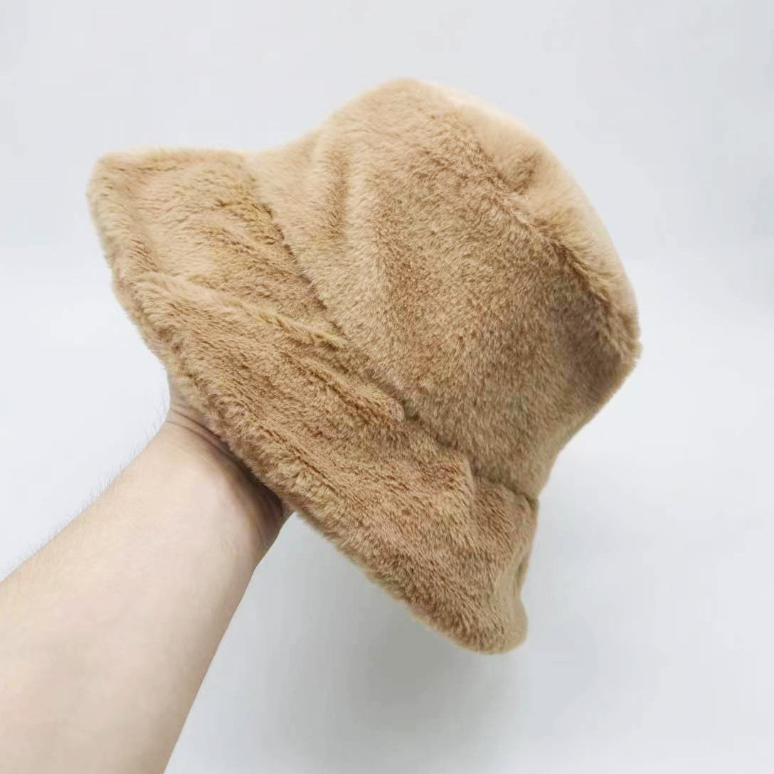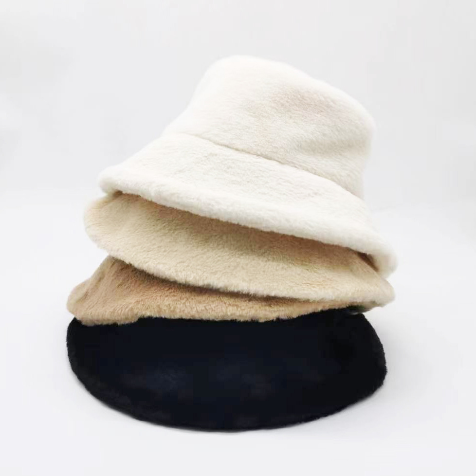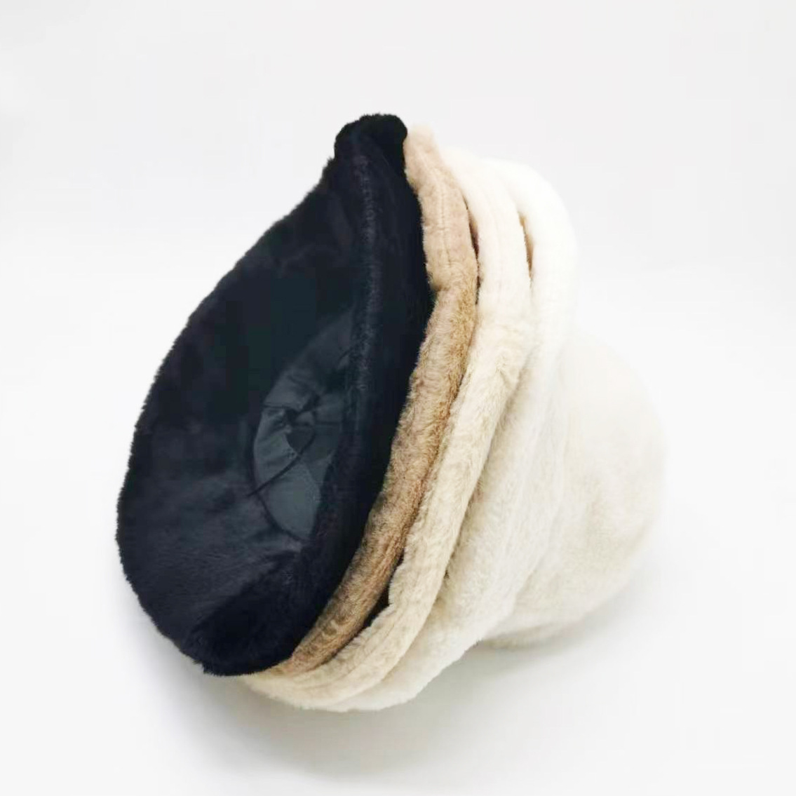 毛绒渔夫帽韩版纯色男女秋冬款保暖仿兔毛盆帽显脸小潮流百搭帽子