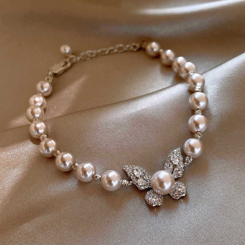 轻奢镶钻蝴蝶珍珠款可调节手链精致高级感手环法式复古手饰批发女