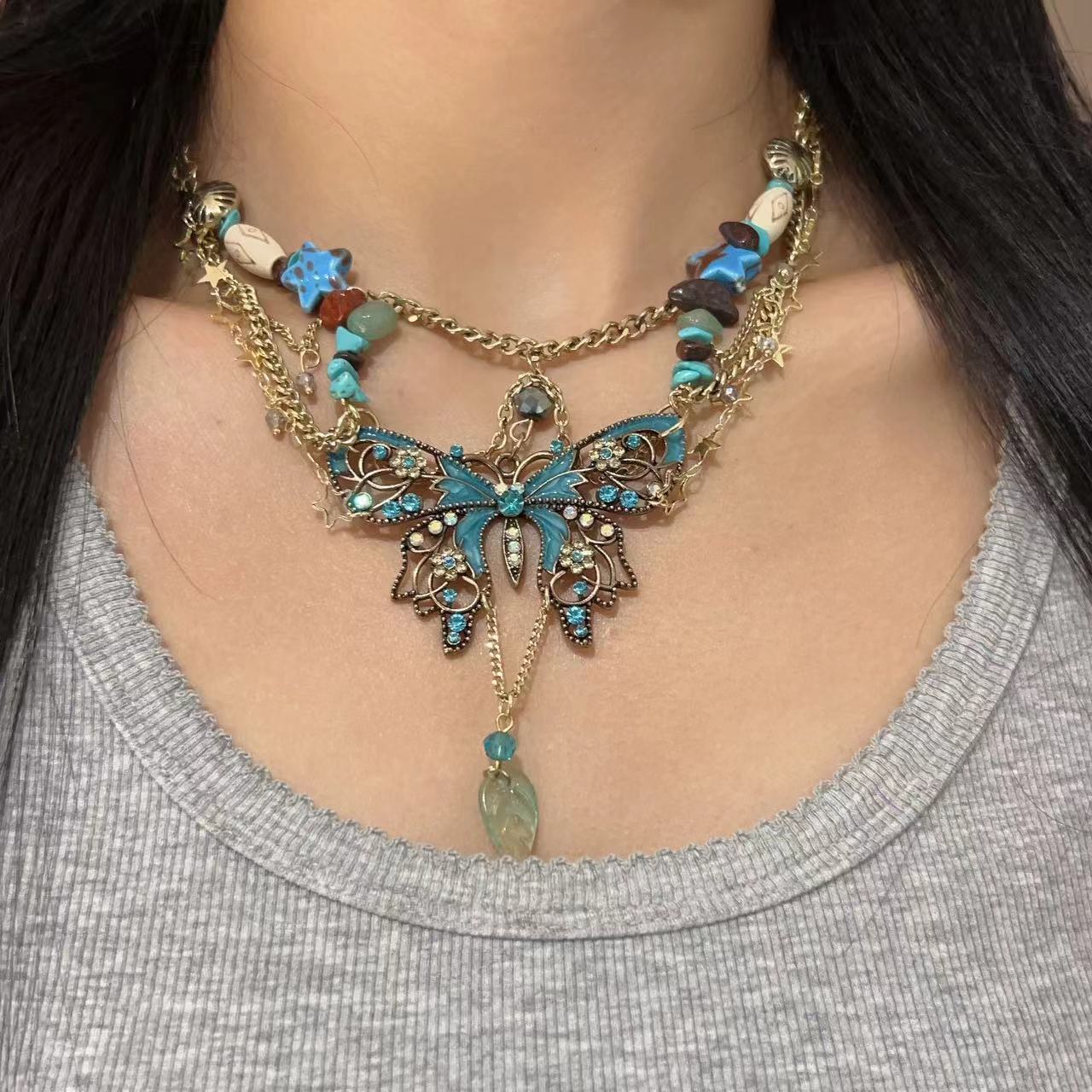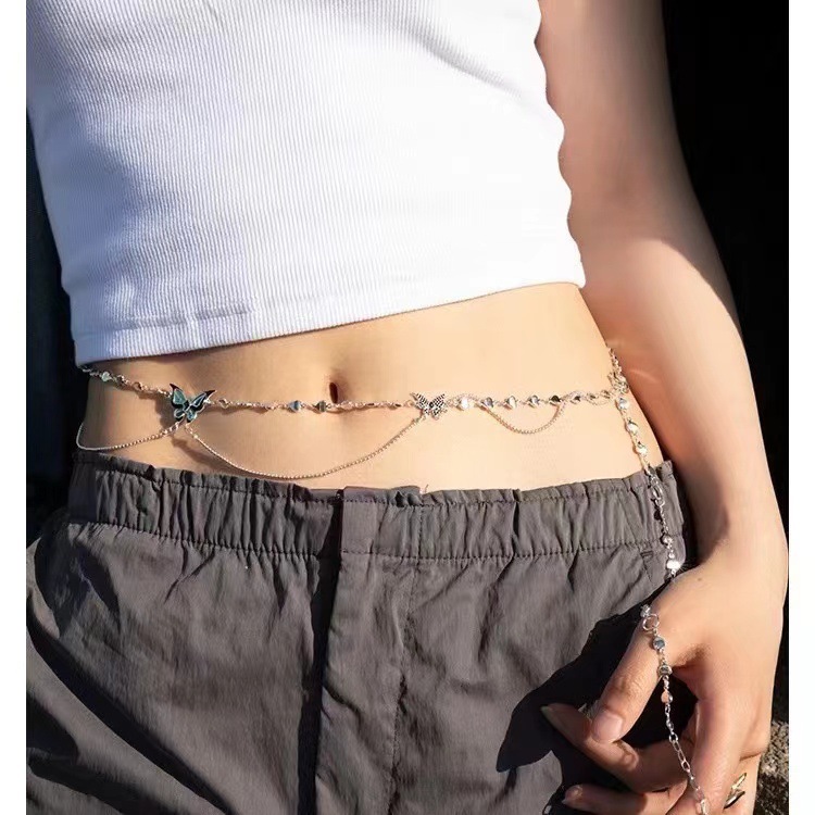 纯欲风蝴蝶流苏一款两戴项链腰链女小众高颜值甜酷辣妹腿链身体链