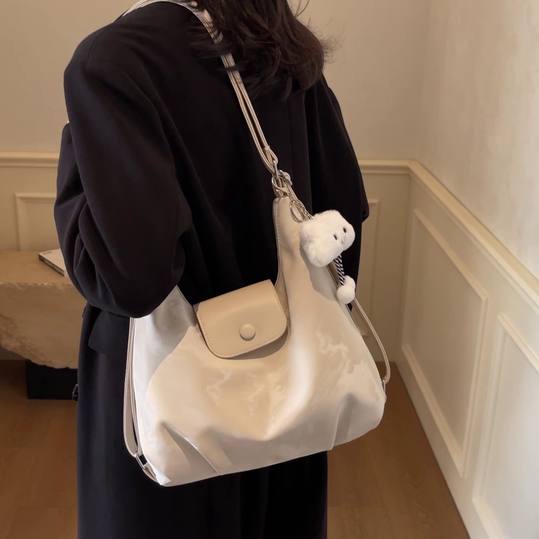 新款休闲单肩斜挎复古褶皱通勤托特包女大容量背包7348