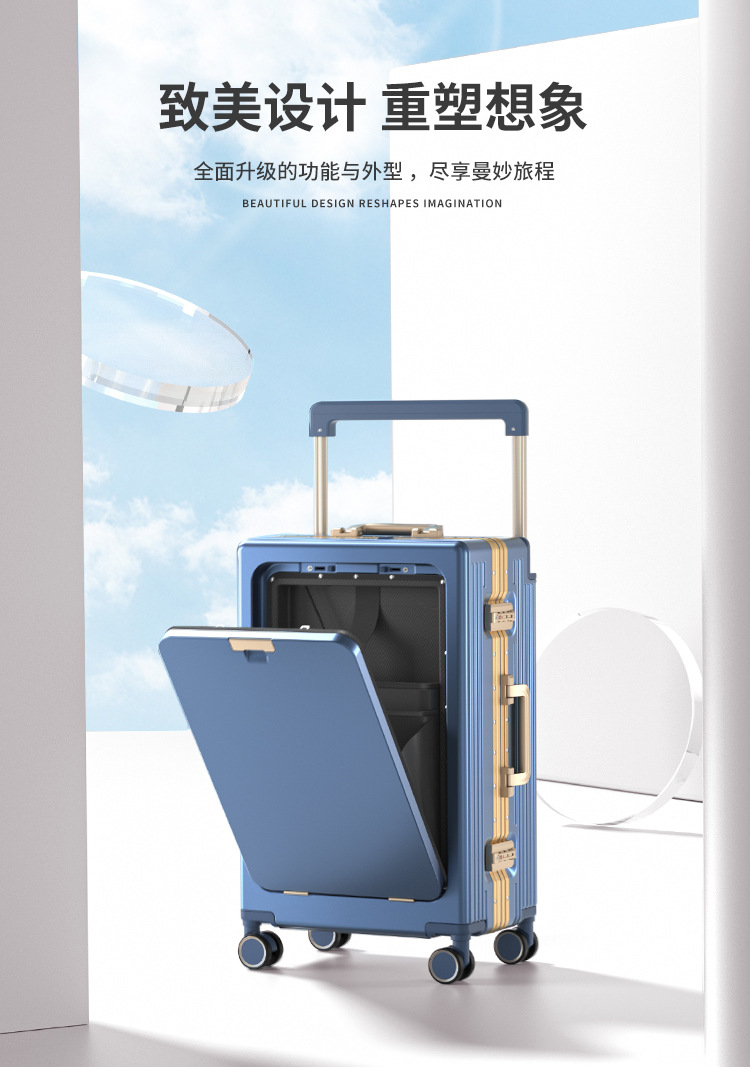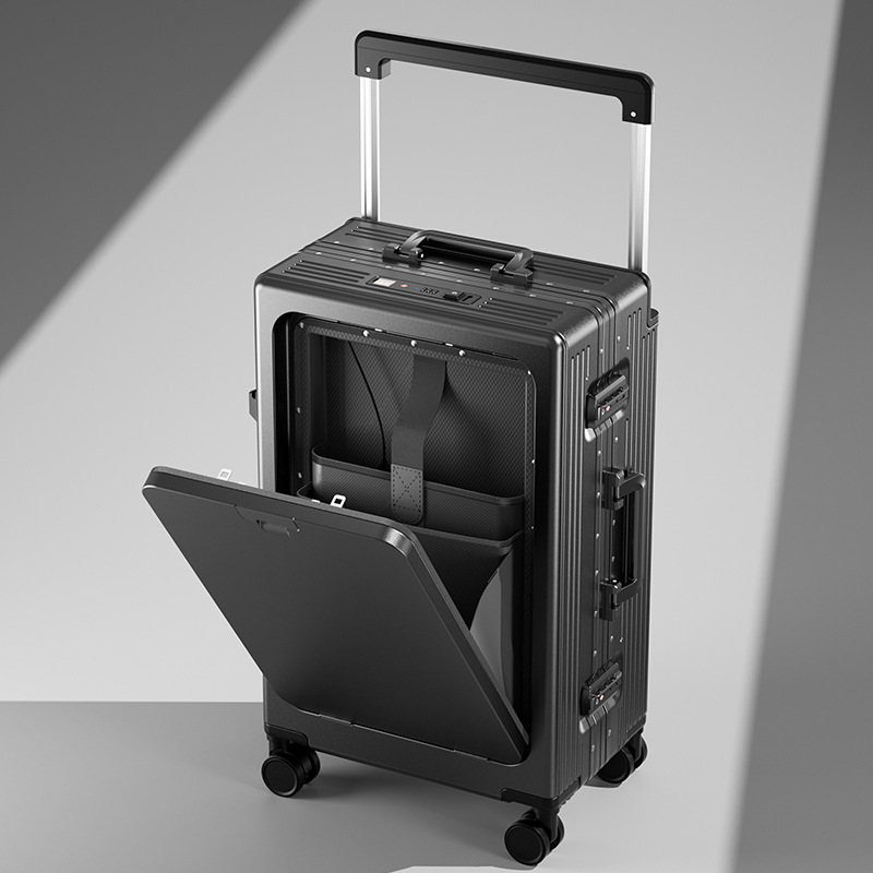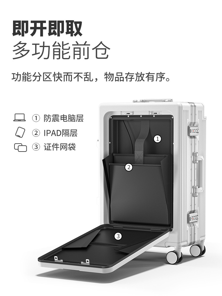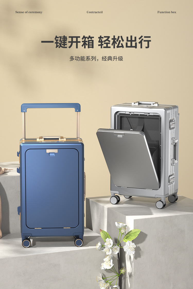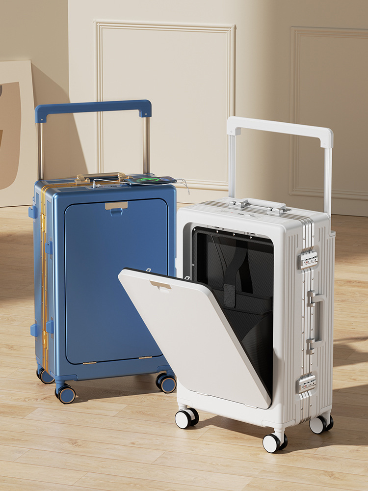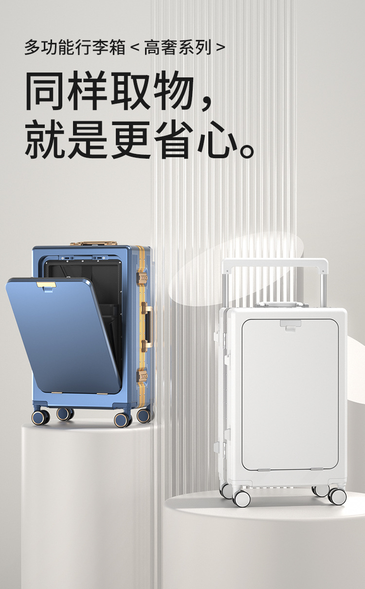 新款前置开口行李箱宽拉杆旅行箱多功能商务电脑箱包登机箱20寸男