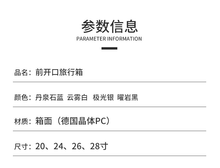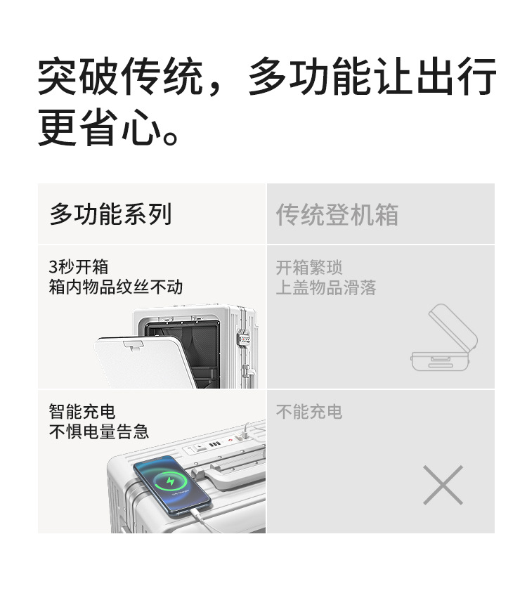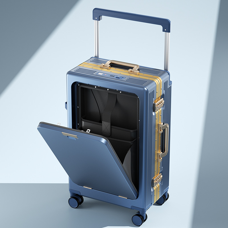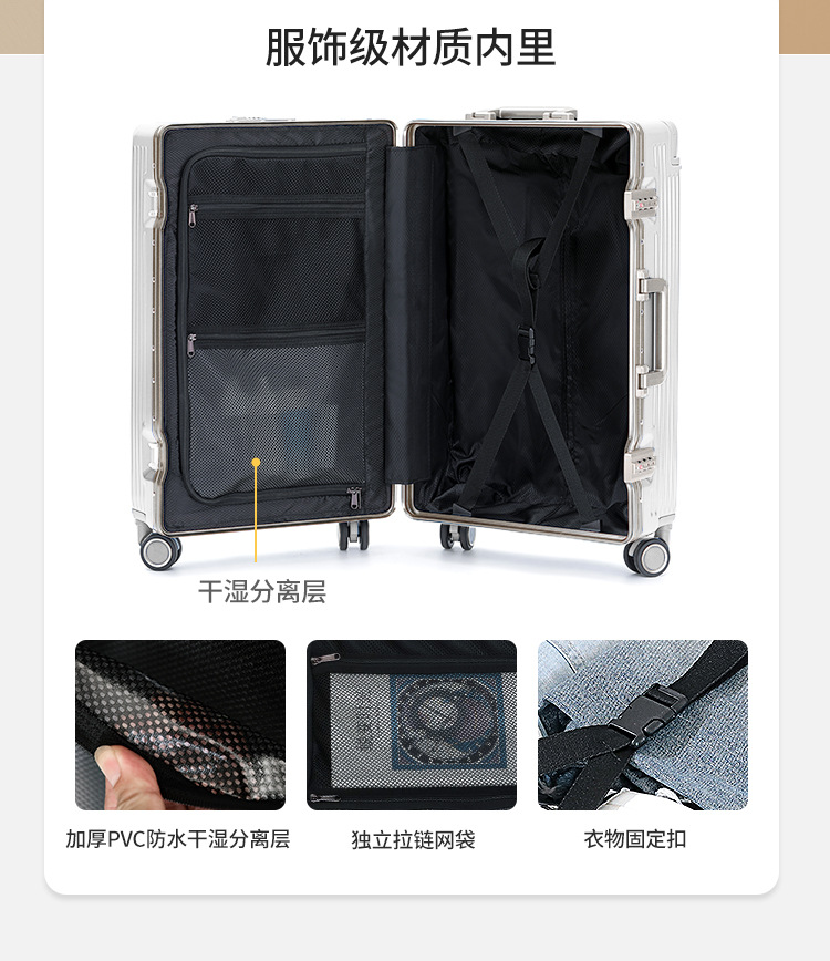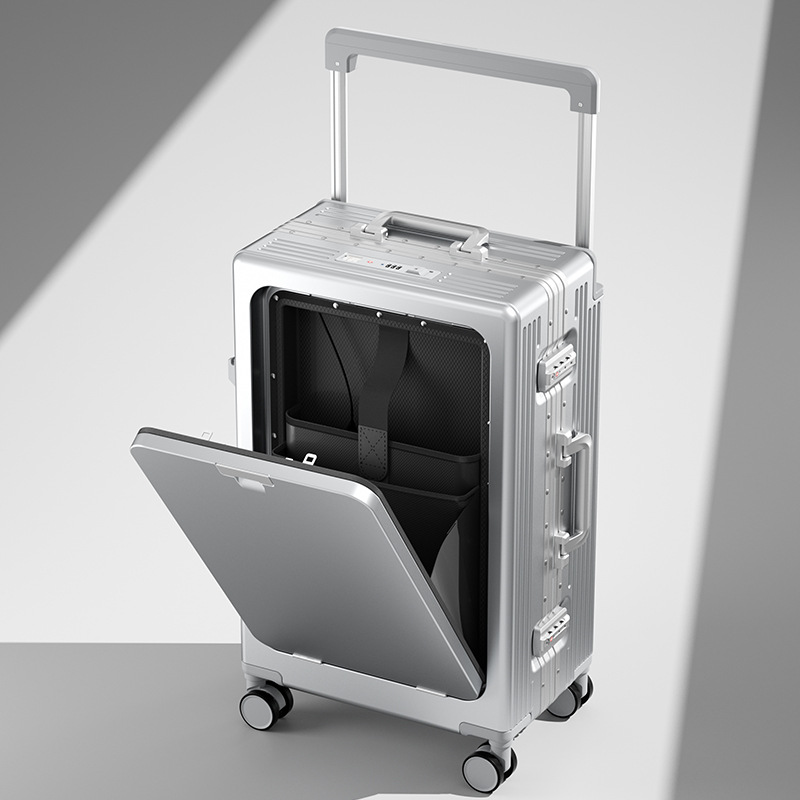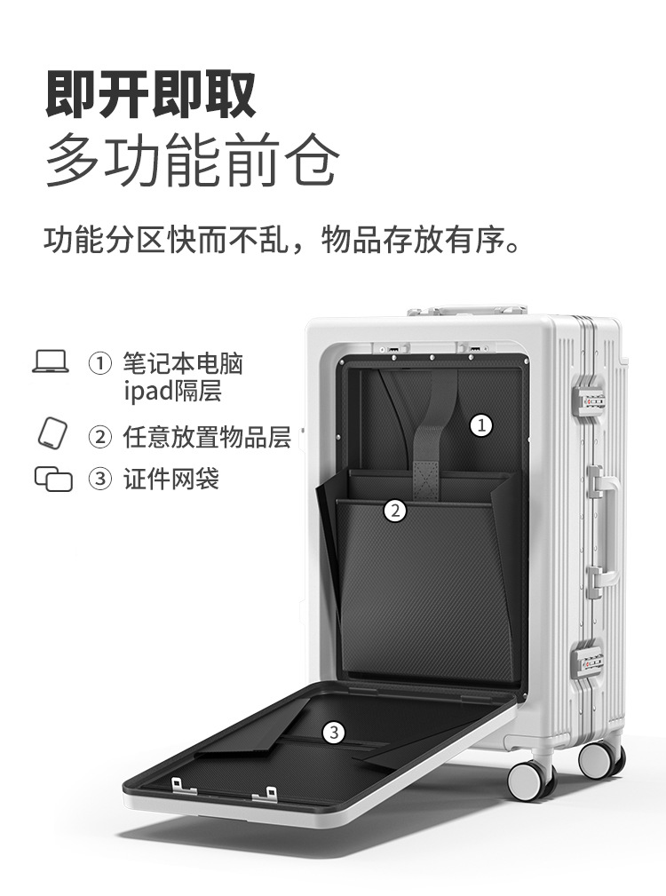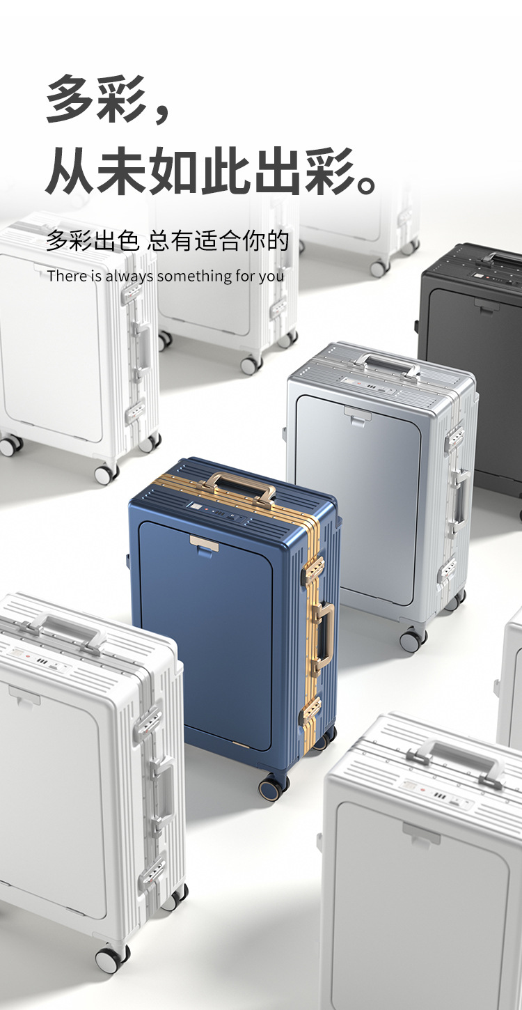 新款前置开口行李箱宽拉杆旅行箱多功能商务电脑箱包登机箱20寸男