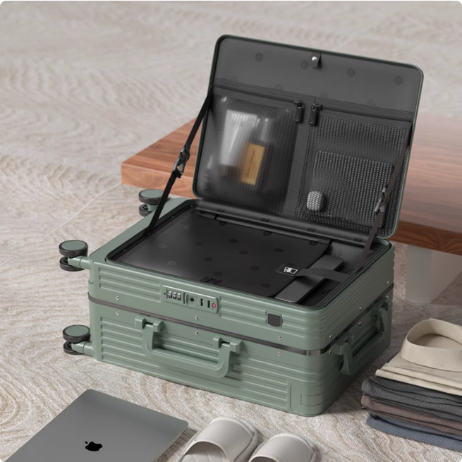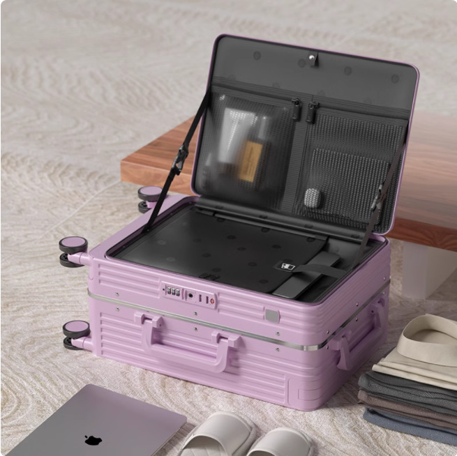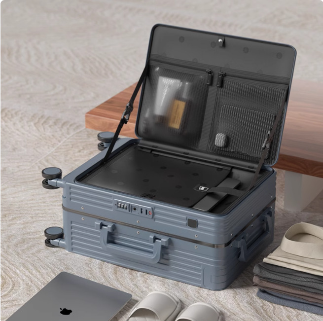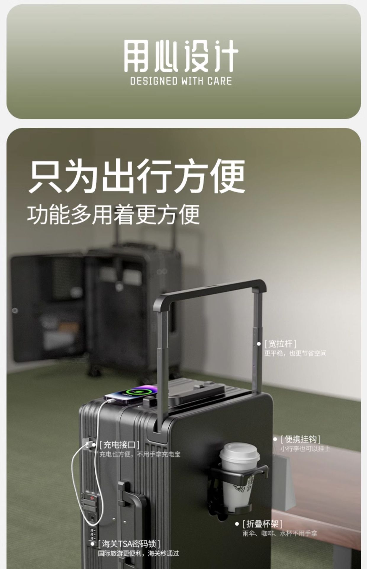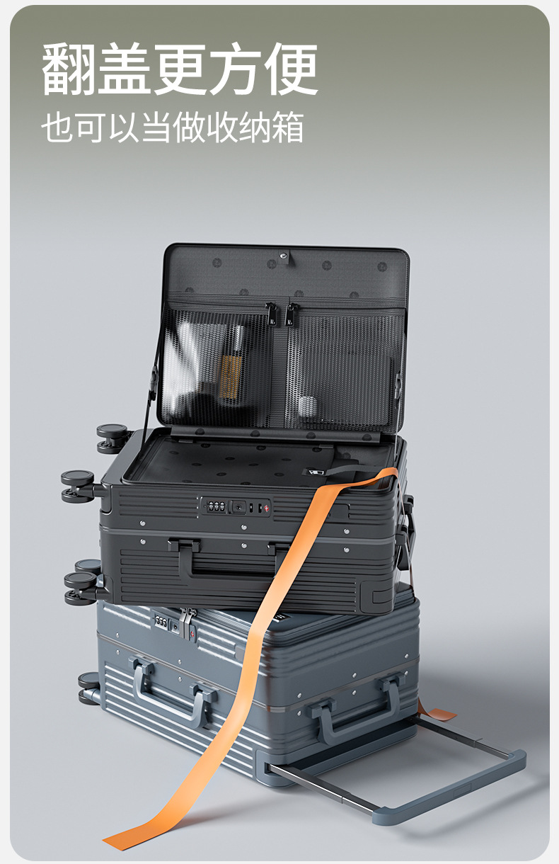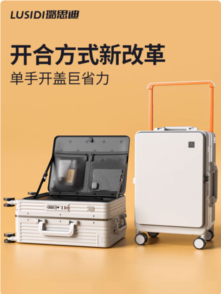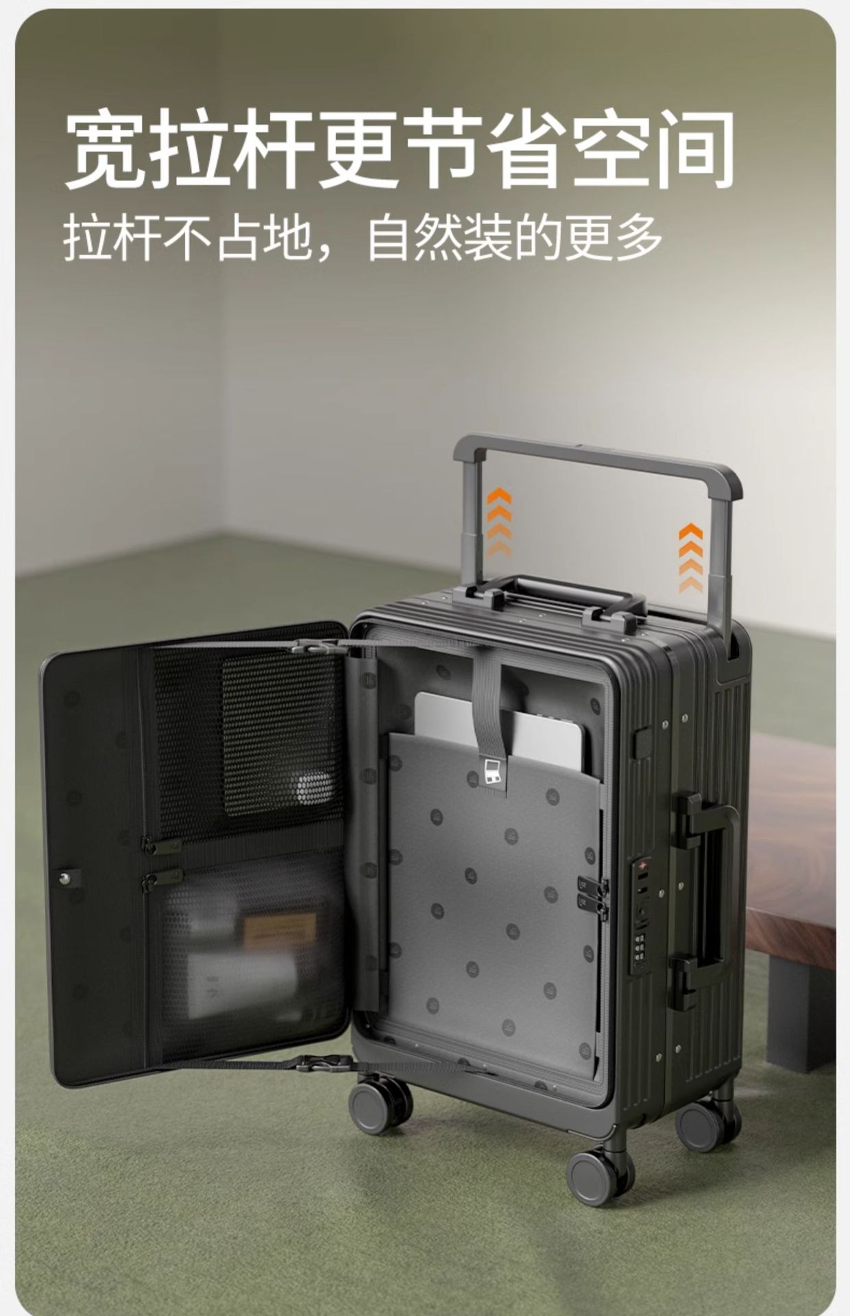 前开口行李箱女新款轻便宽拉杆20寸多功能商务登机箱小型旅行箱男