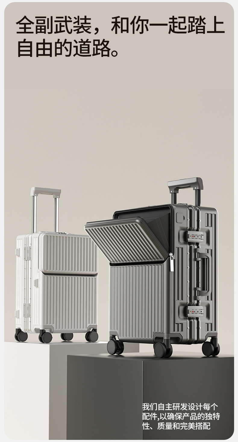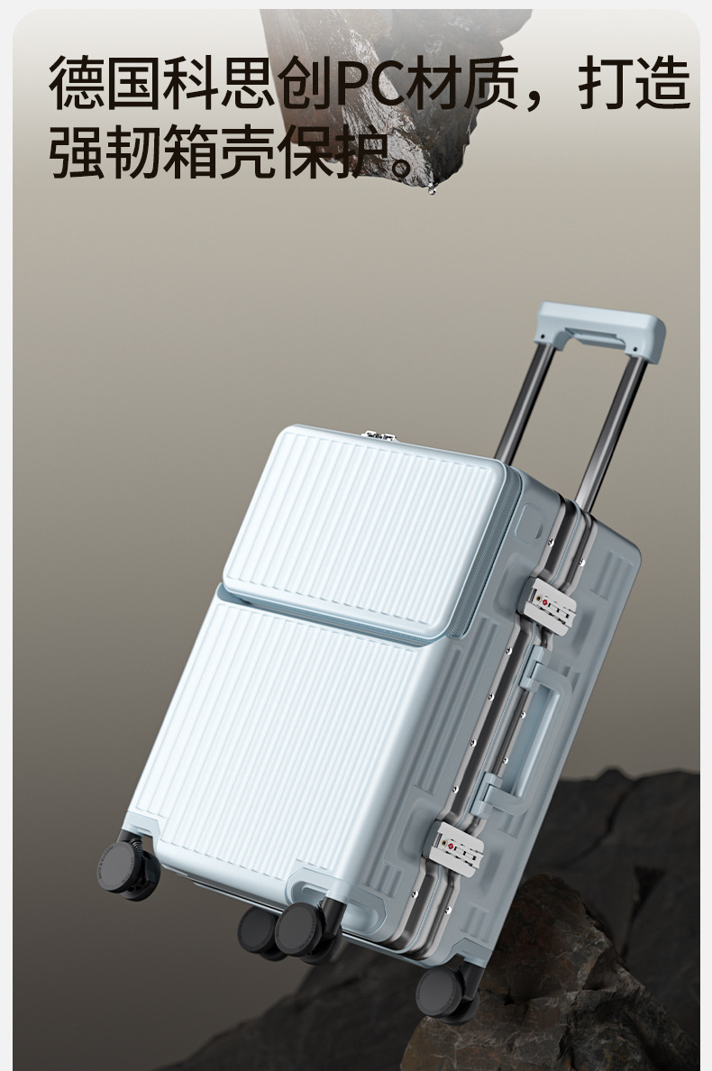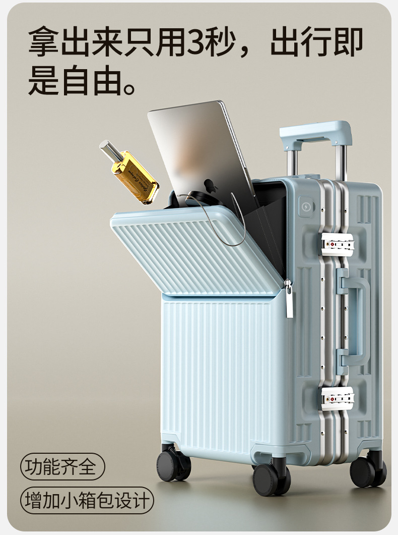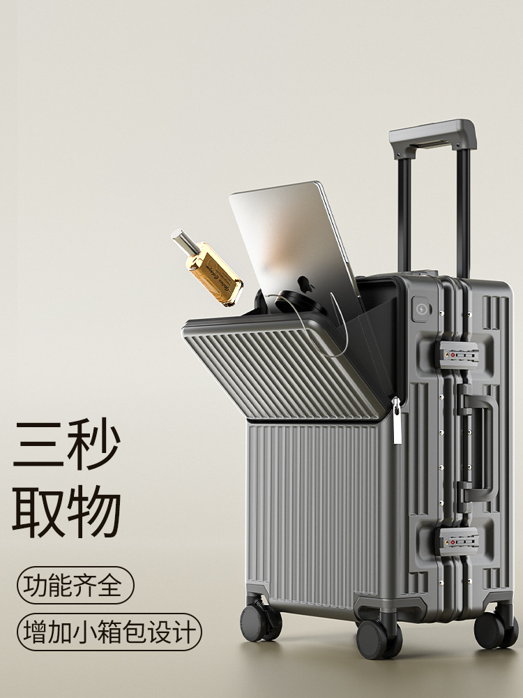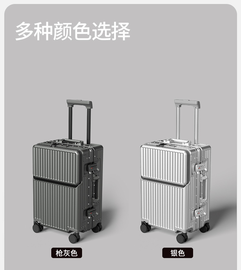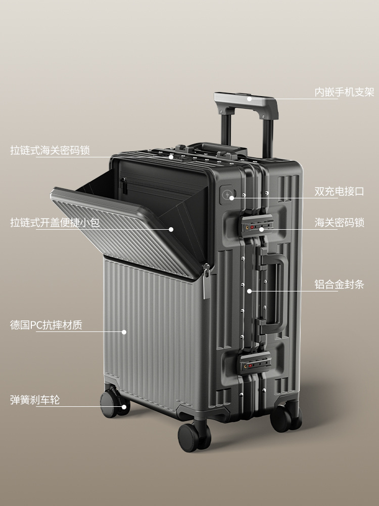 前开盖行李箱男20英寸飞机登机箱万向轮拉杆箱密码旅行箱皮箱子女