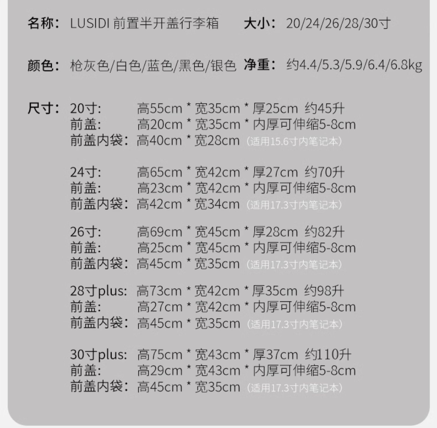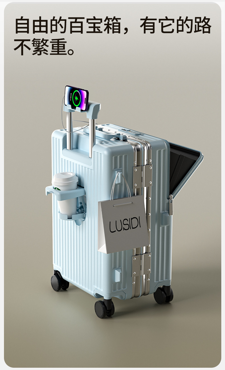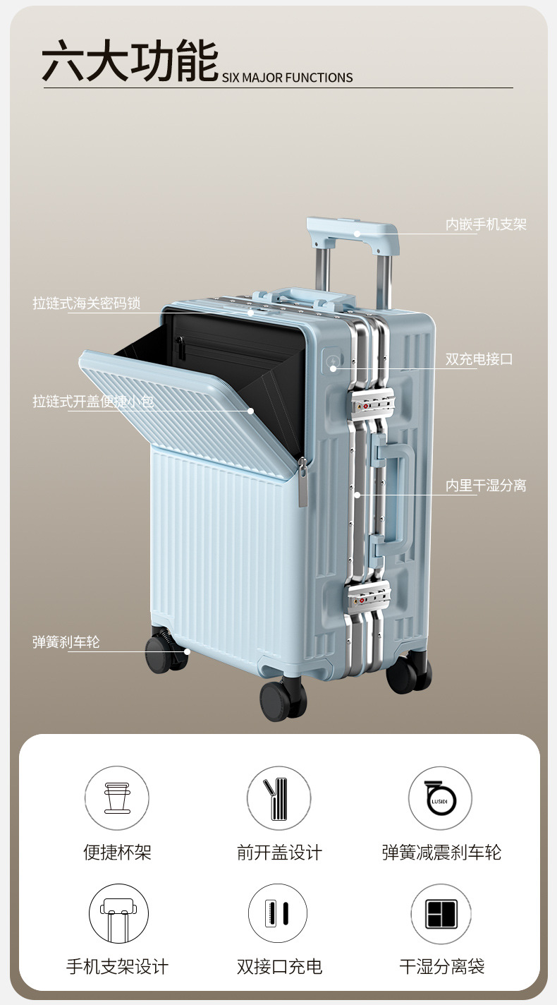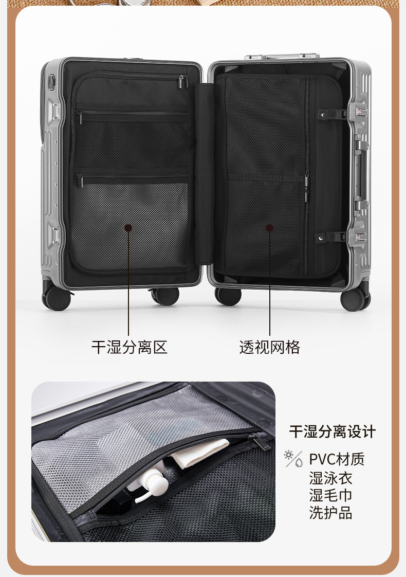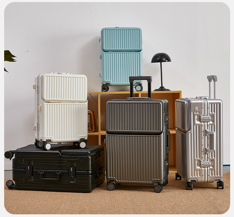 前开盖行李箱男20英寸飞机登机箱万向轮拉杆箱密码旅行箱皮箱子女