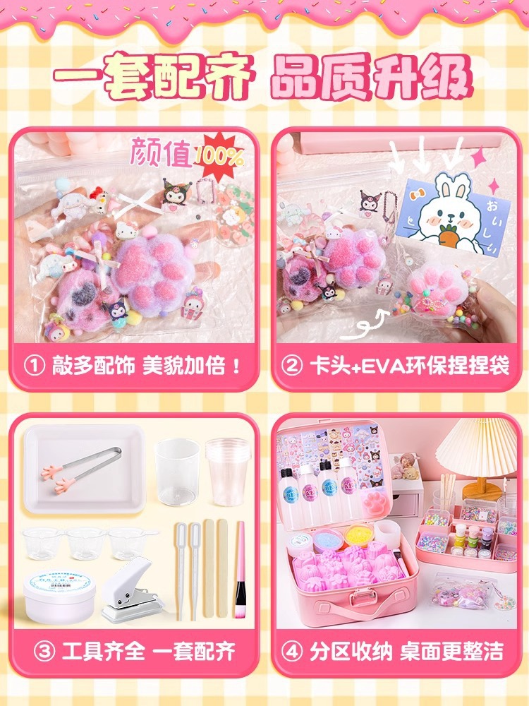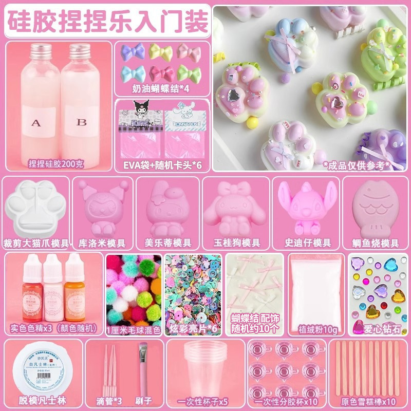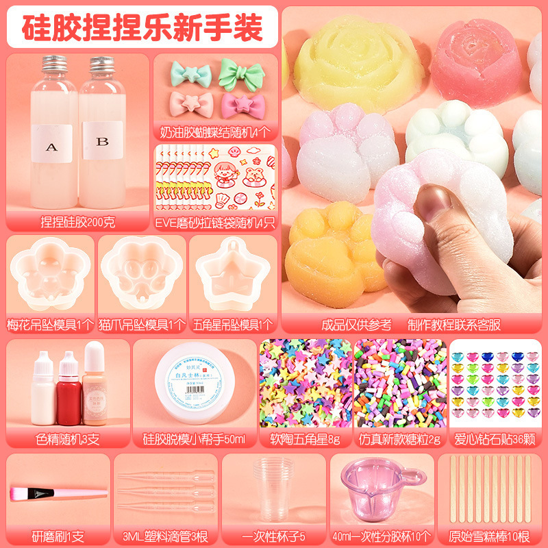 捏捏乐diy材料包自制硅胶捏捏套装儿童手工制作猫爪解压玩具女孩