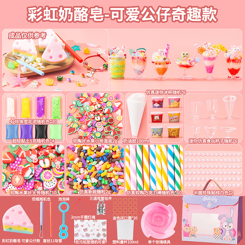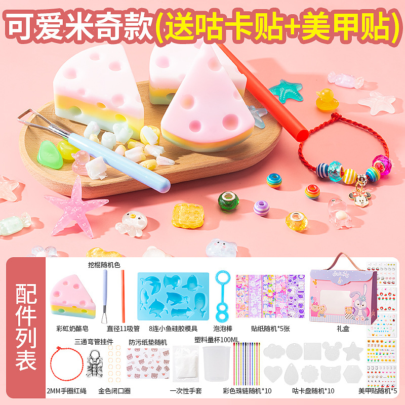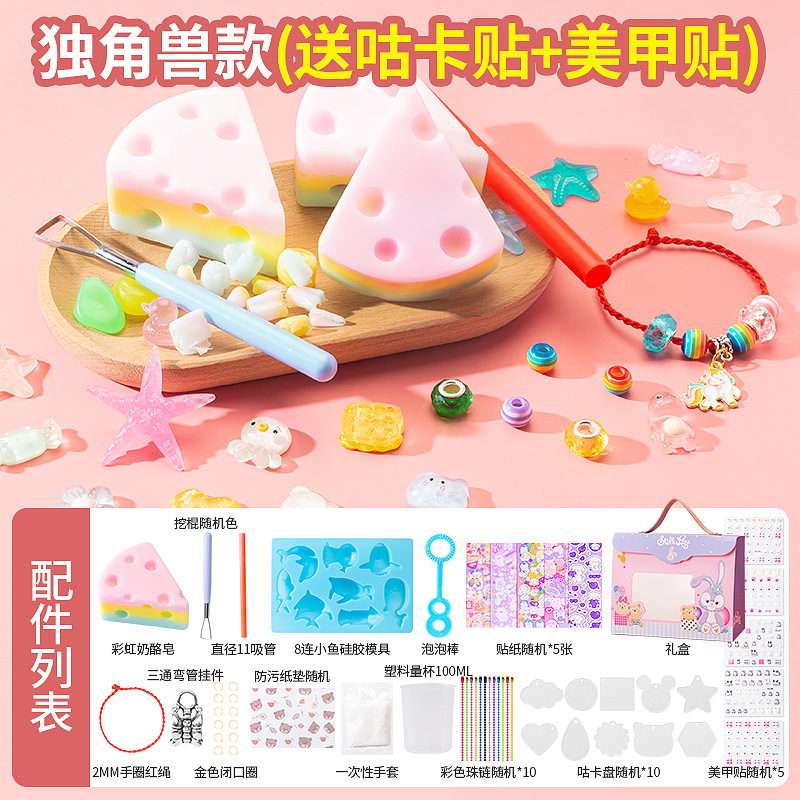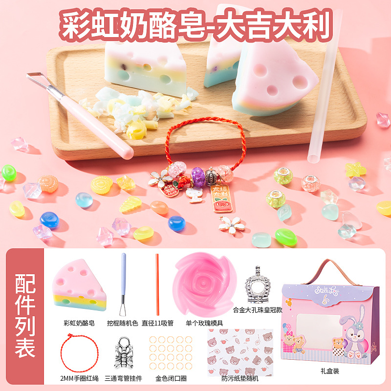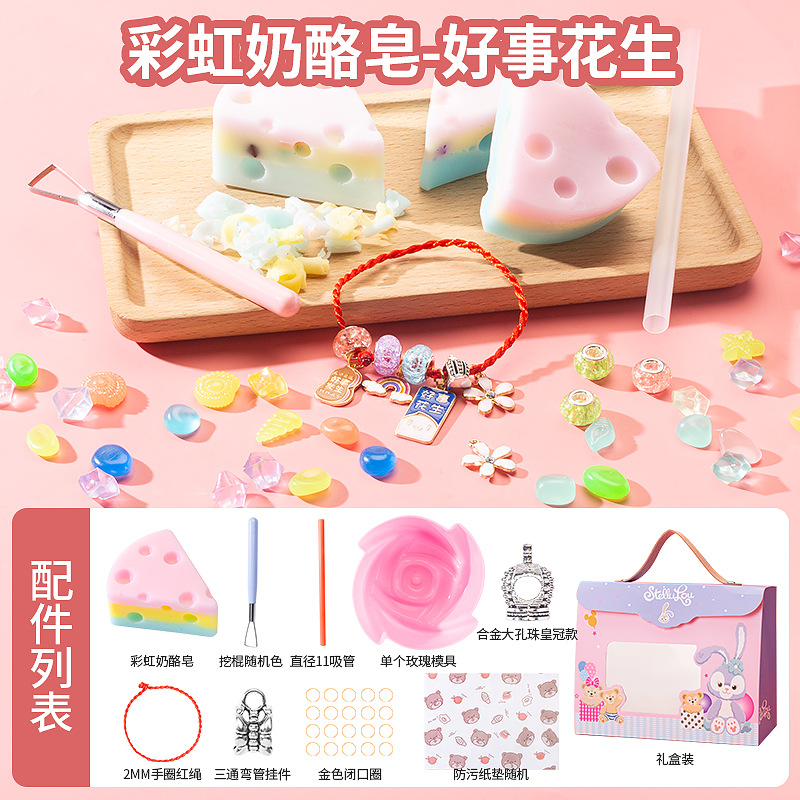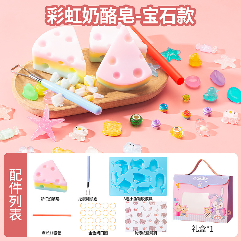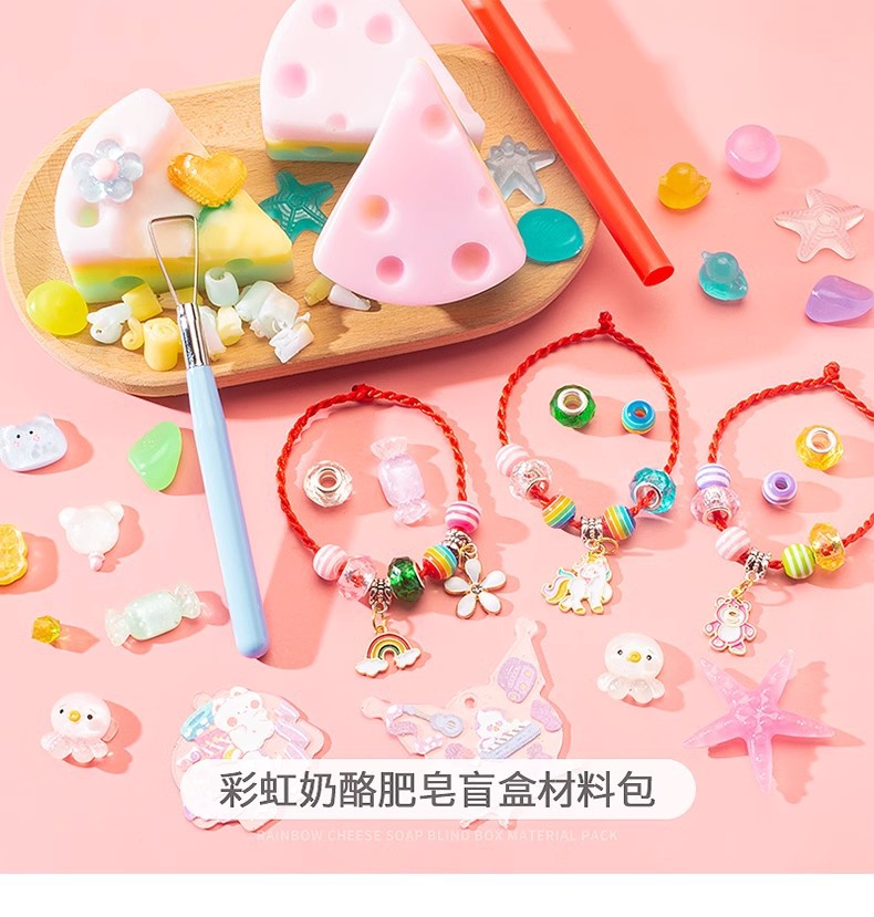 彩虹皂奶酪挖宝石盲盒儿童考古宝藏玩具女孩刮肥皂diy手链解压