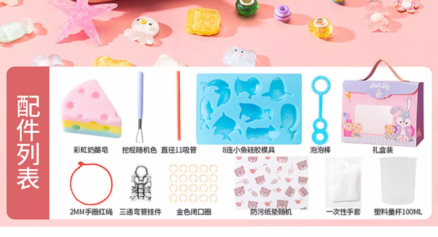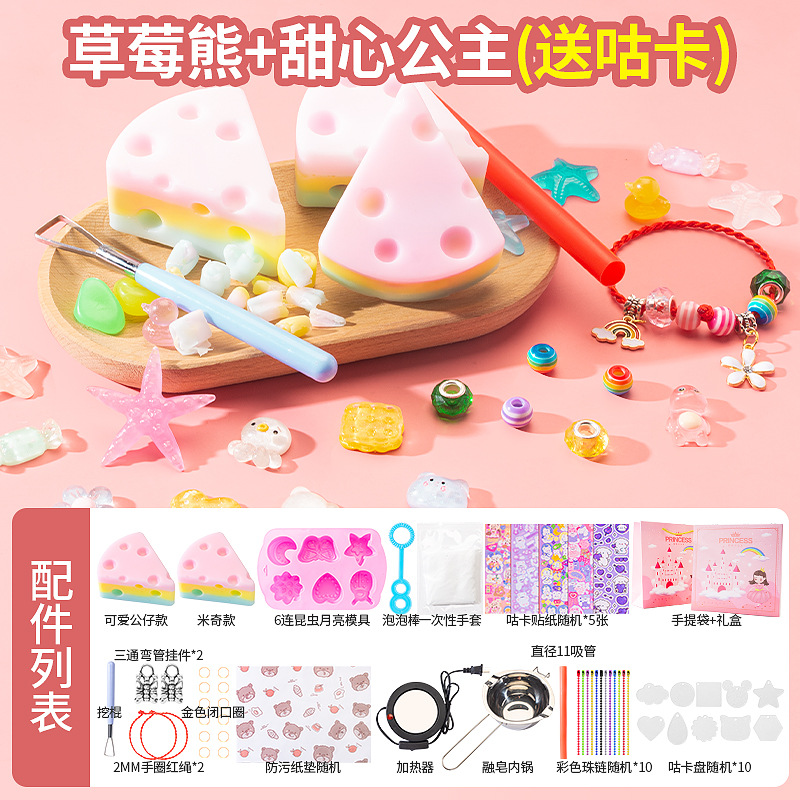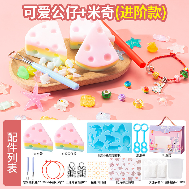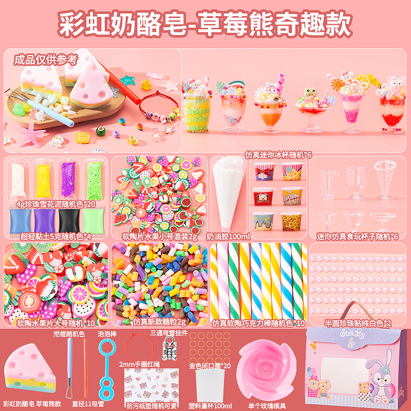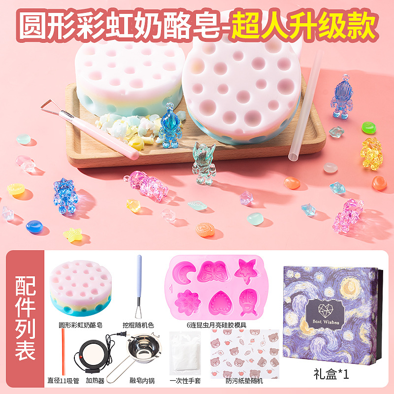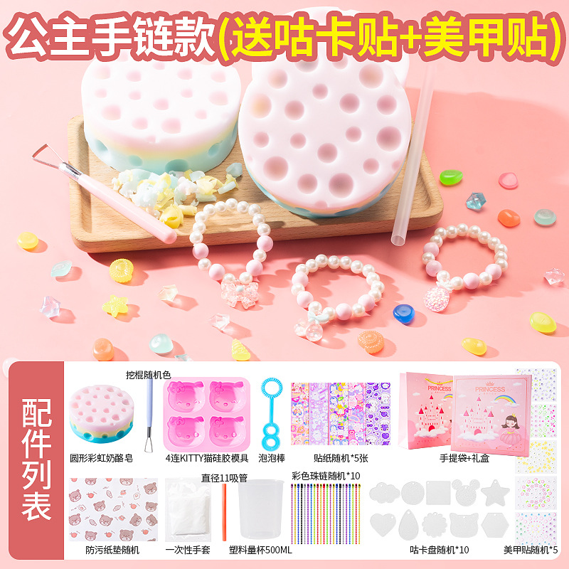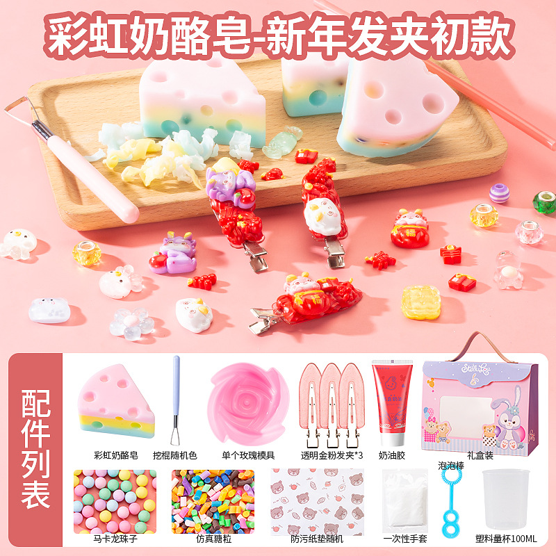 彩虹皂奶酪挖宝石盲盒儿童考古宝藏玩具女孩刮肥皂diy手链解压