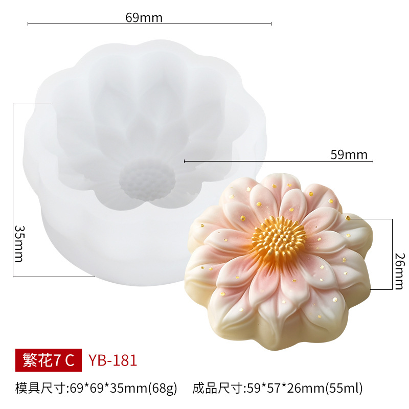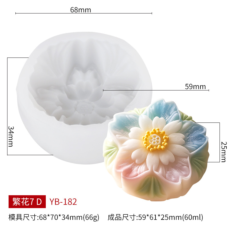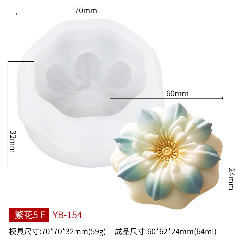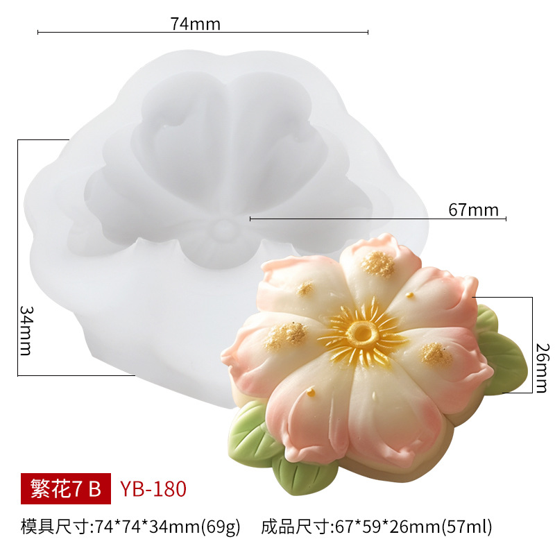 三信 立体花朵香薰蜡烛硅胶模具 手工玫瑰牡丹花滴胶摆件装饰跨境
