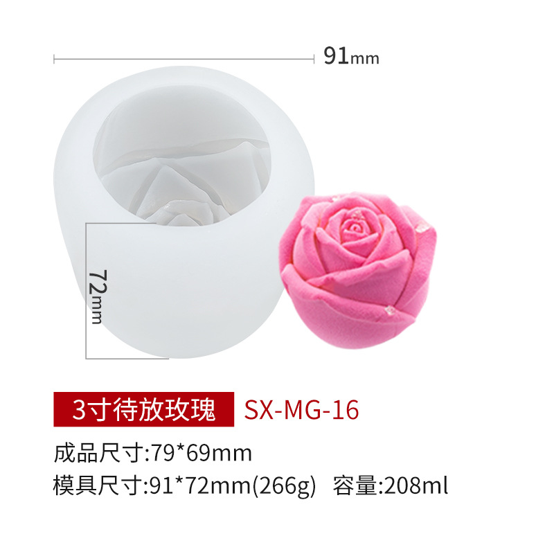 三信玫瑰花蜡烛硅胶模具DIY待放冰块情人节石膏蛋糕手工冰淇淋