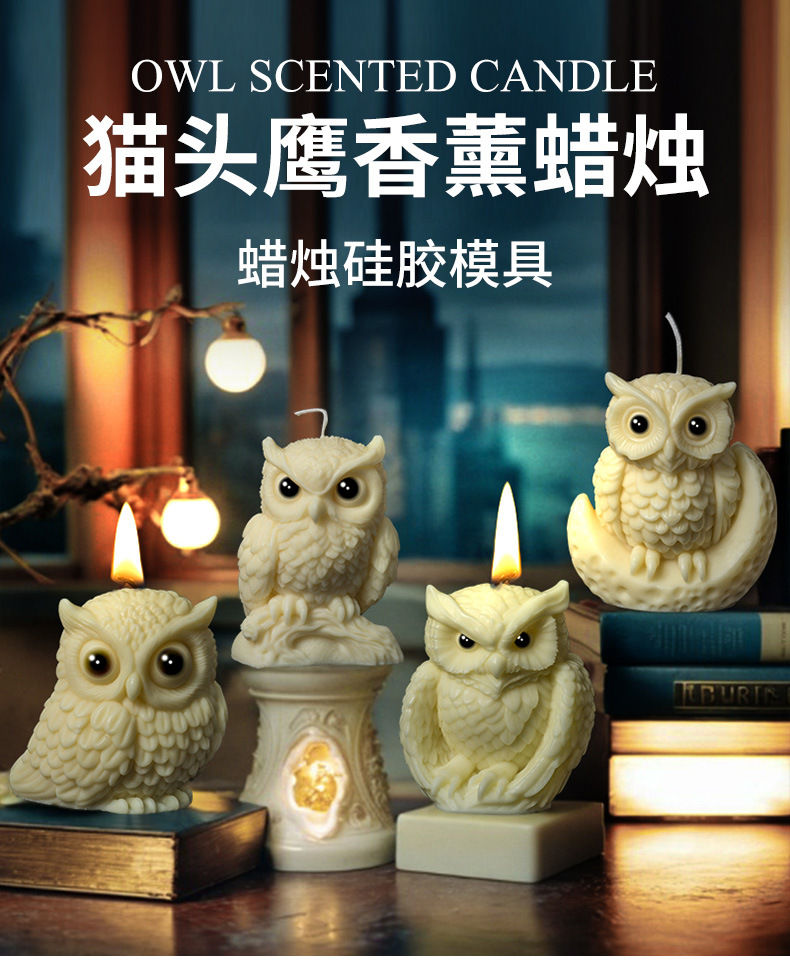 三信 猫头鹰香薰蜡烛模具 万圣节diy手工动物硅胶模具跨境源头