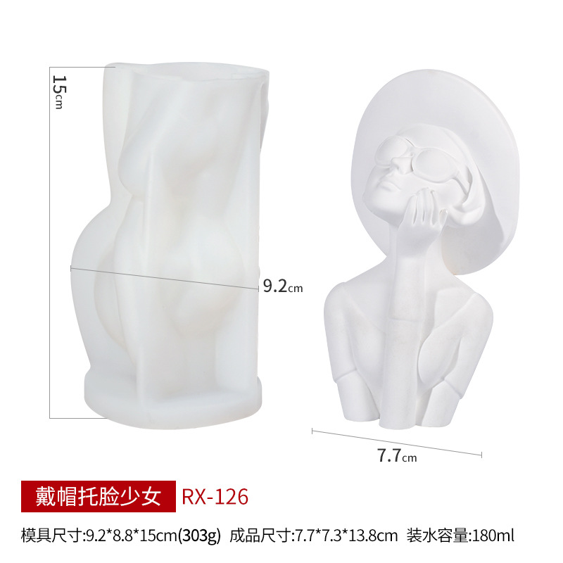 三信 蒙眼少女香薰蜡烛硅胶模具DIY女孩ins风石膏扩香石摆件磨具
