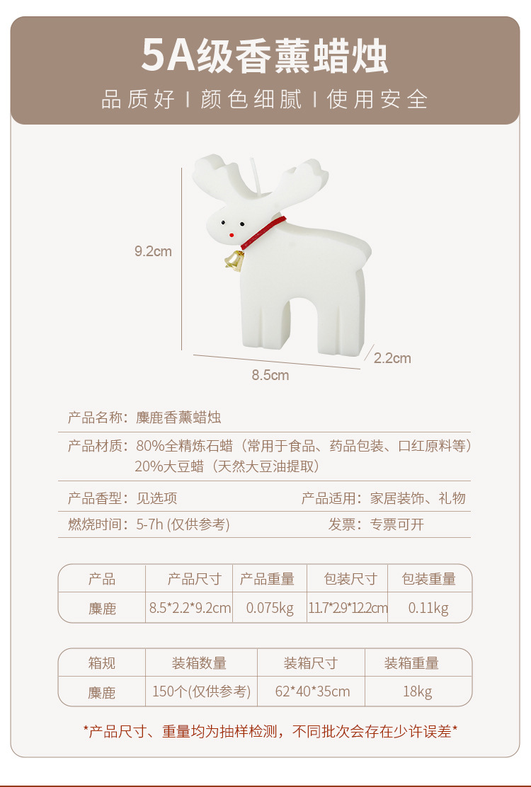 圣诞香薰蜡烛仿真麋鹿造型蜡candle伴手礼礼物圣诞节室内香氛蜡烛