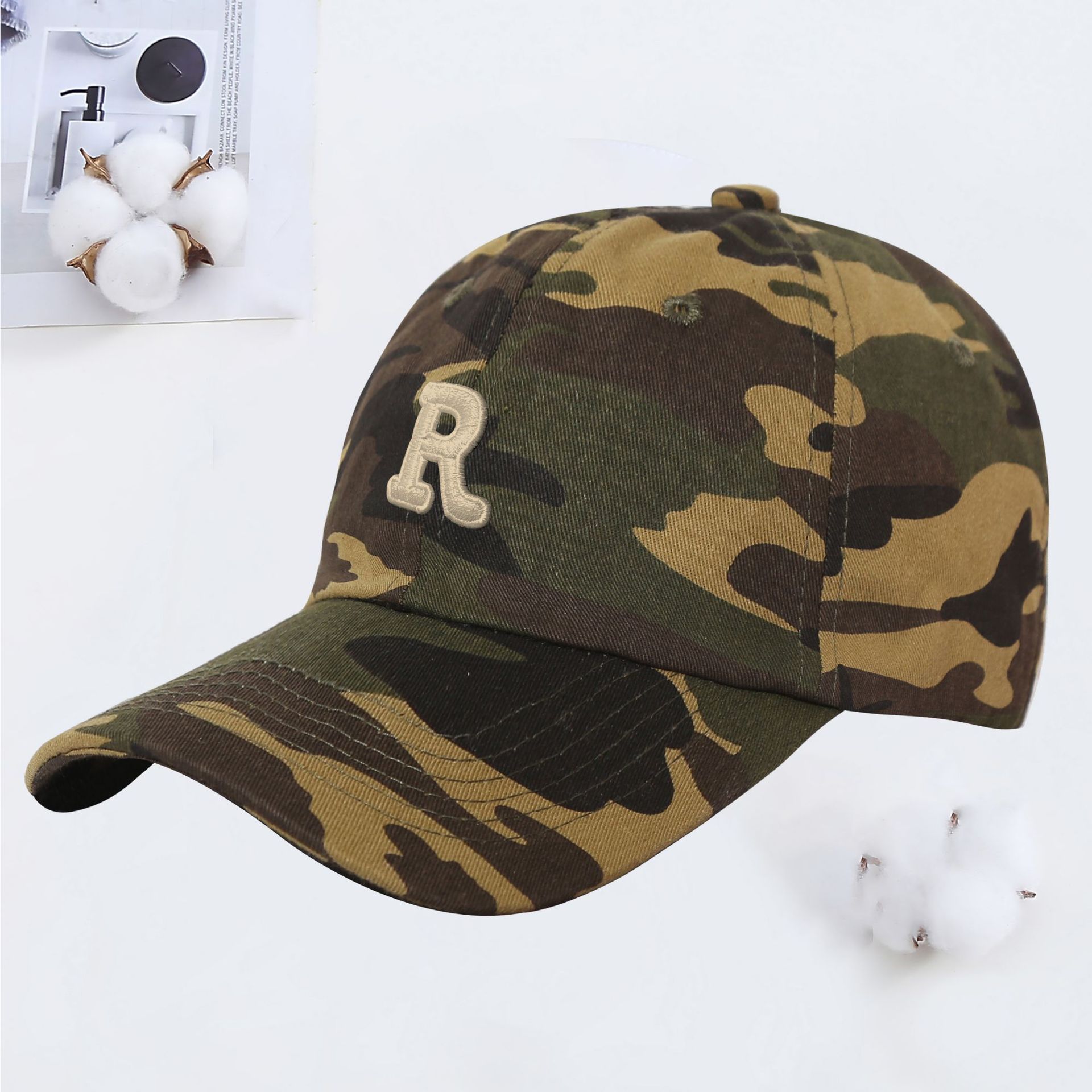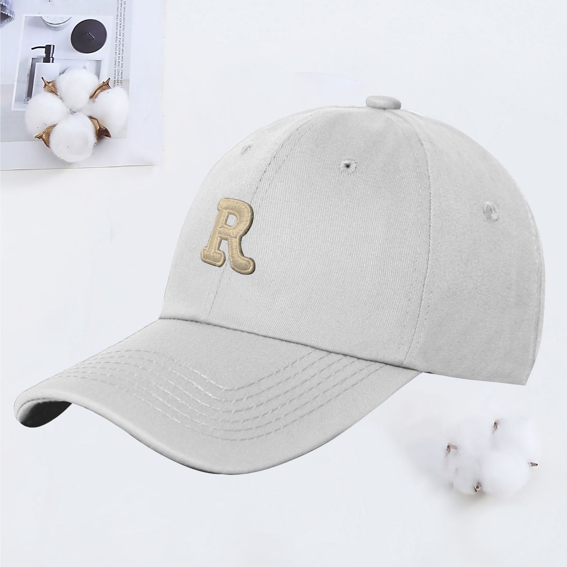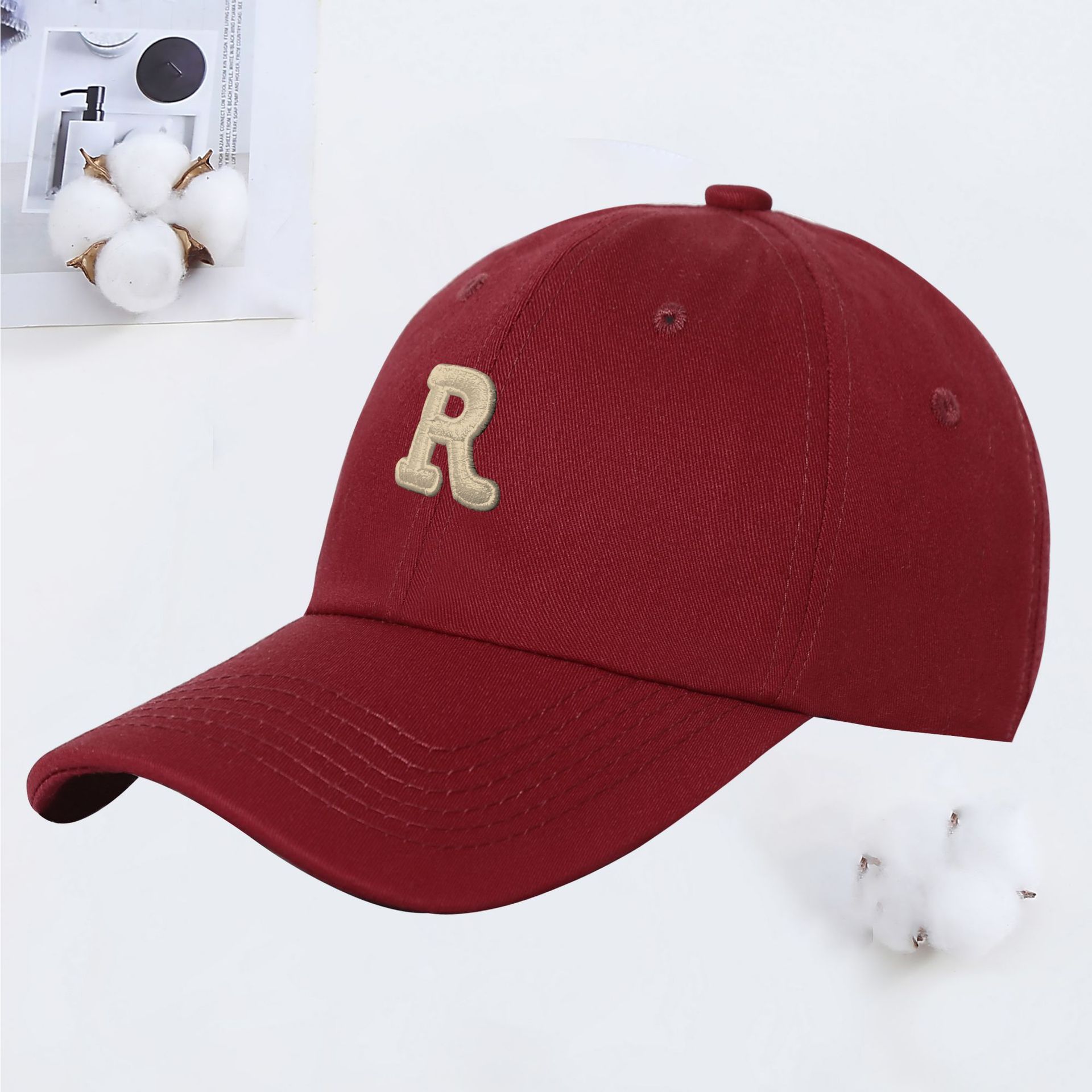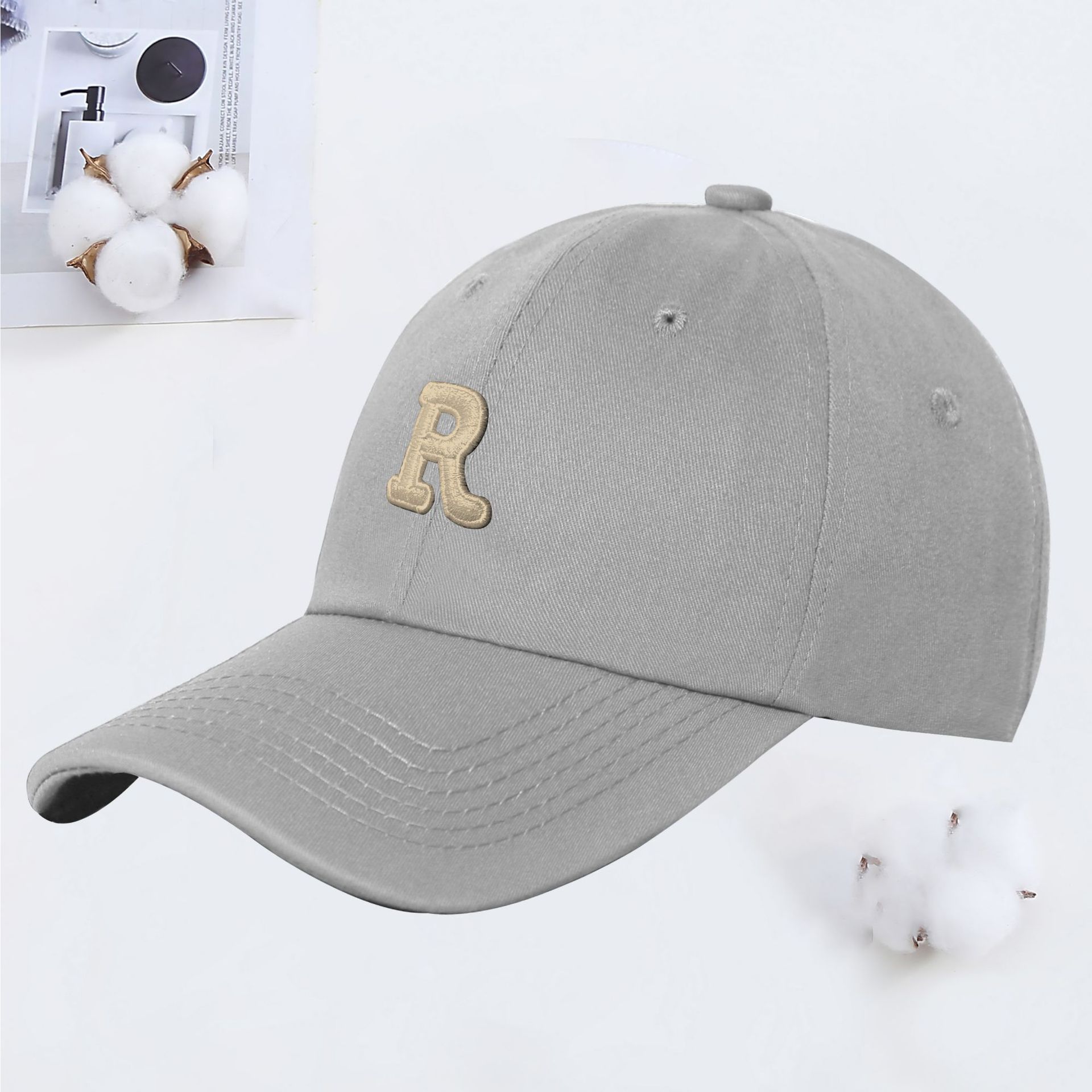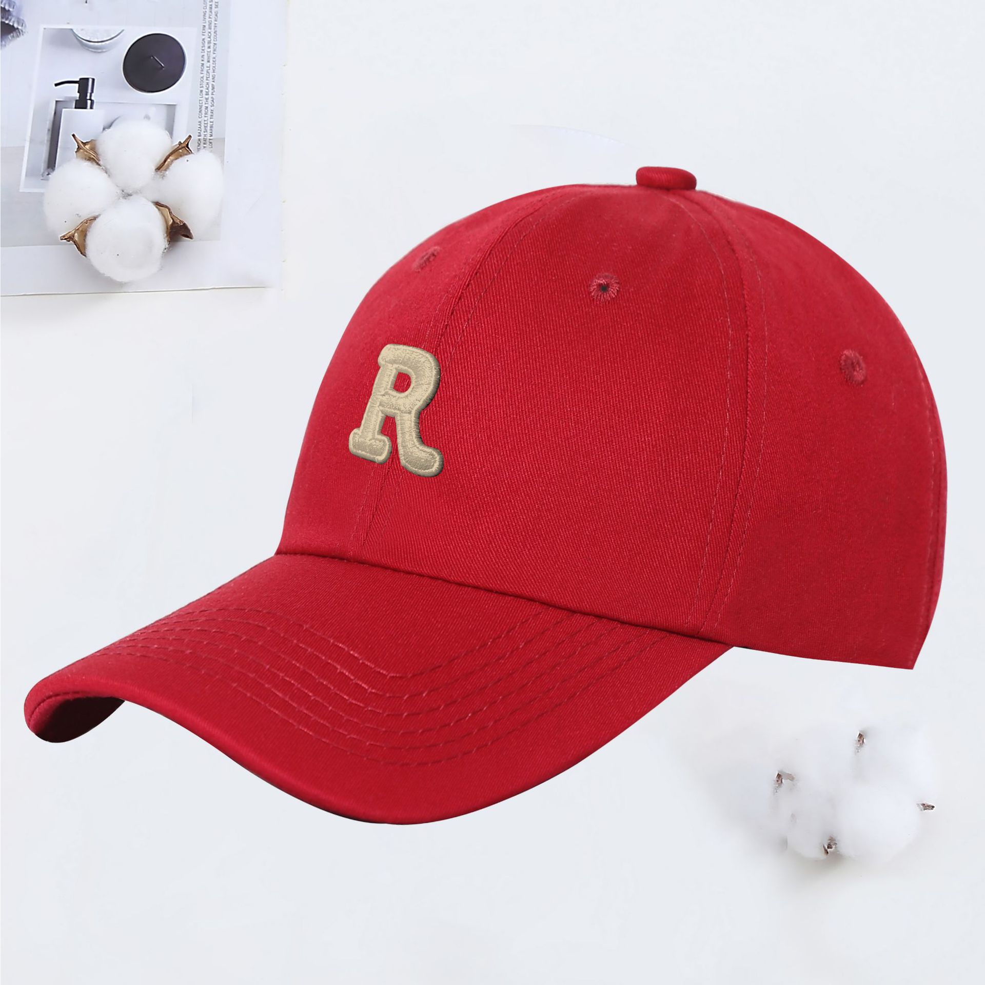 新款R字母彩色棒球帽女夏季韩版ins软顶遮阳鸭舌帽学生情侣太阳帽