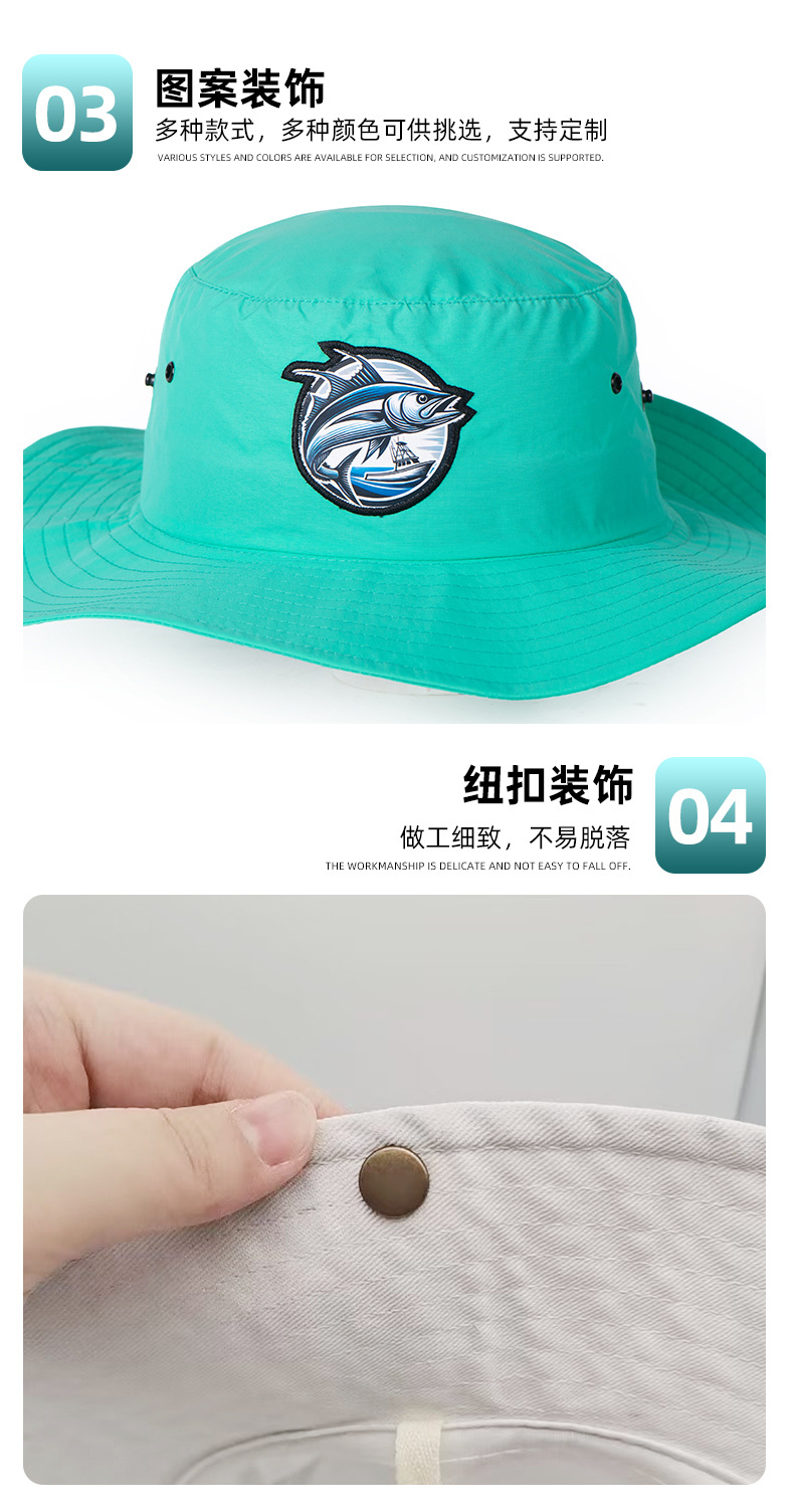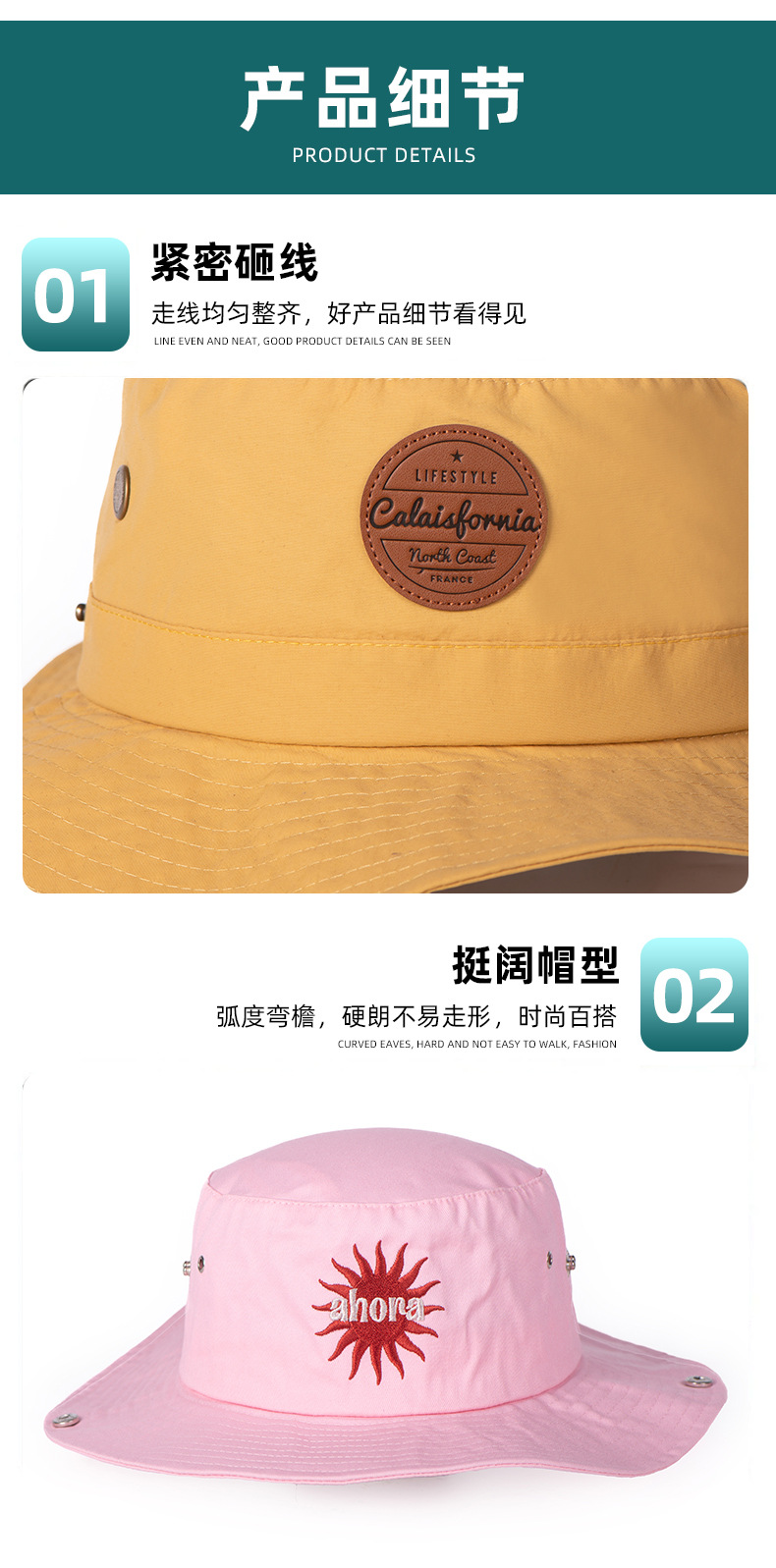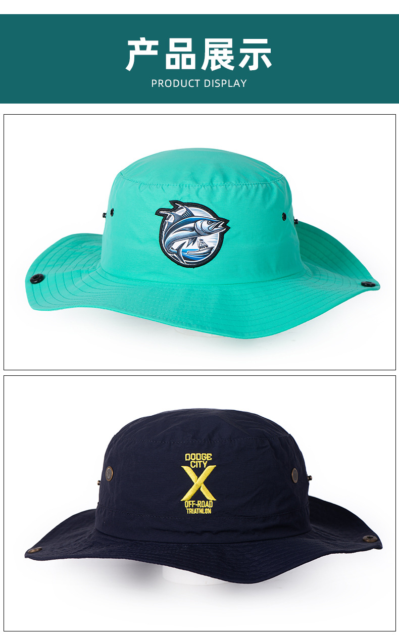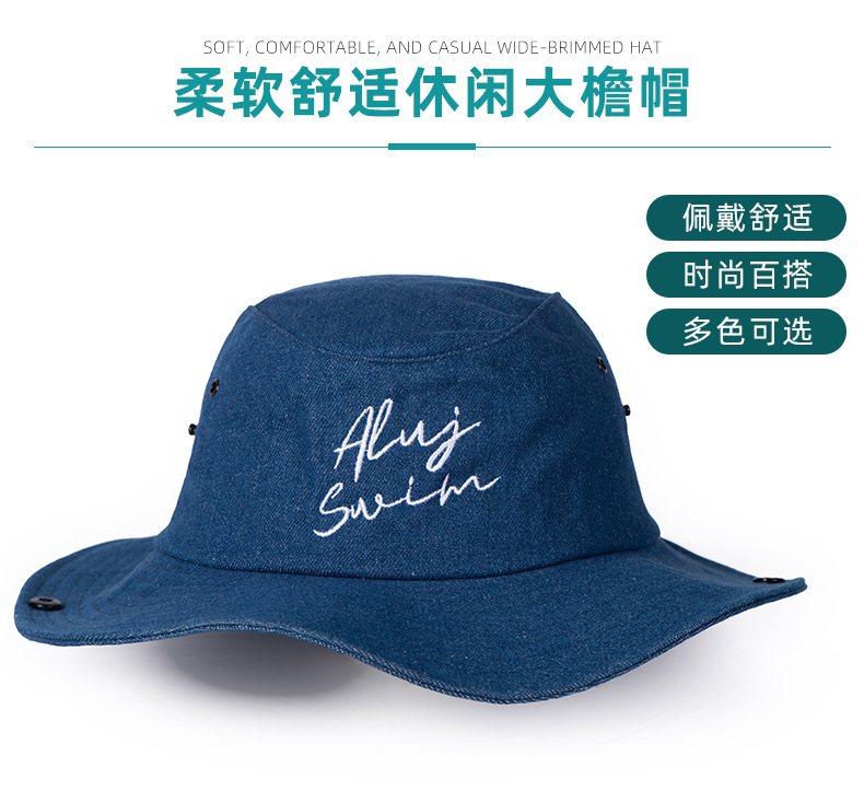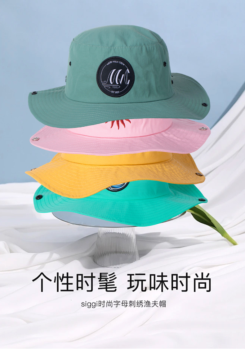 跨境新款大沿帽印字渔夫帽遮阳定团建防晒帽冬季防风帽户外大檐帽