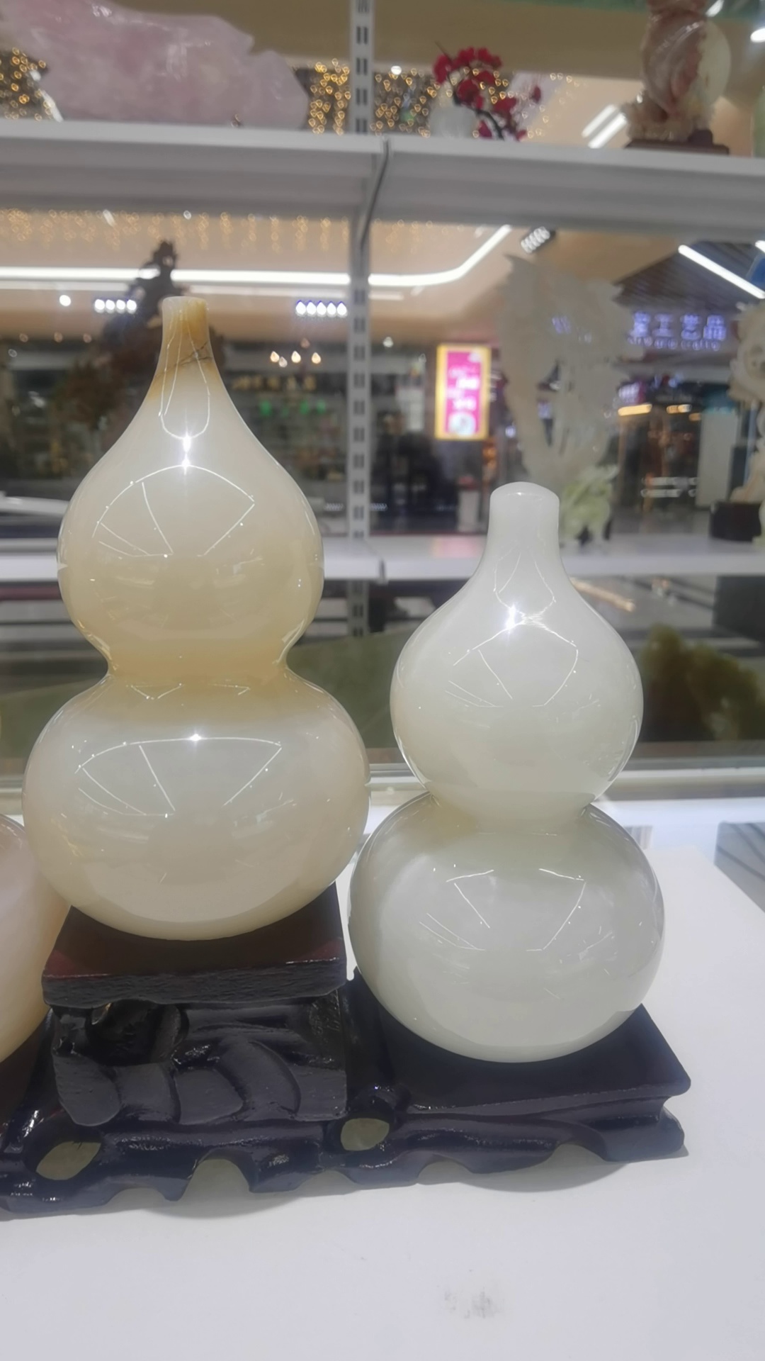 巴基斯坦天然玉石摆件,葫芦,福,禄,双全16*9