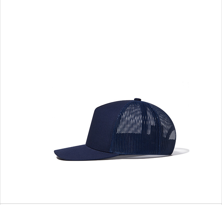 欧美跨境新款帽沿微弯卡车网帽纯色百搭遮阳潮男女深蓝色棒球帽