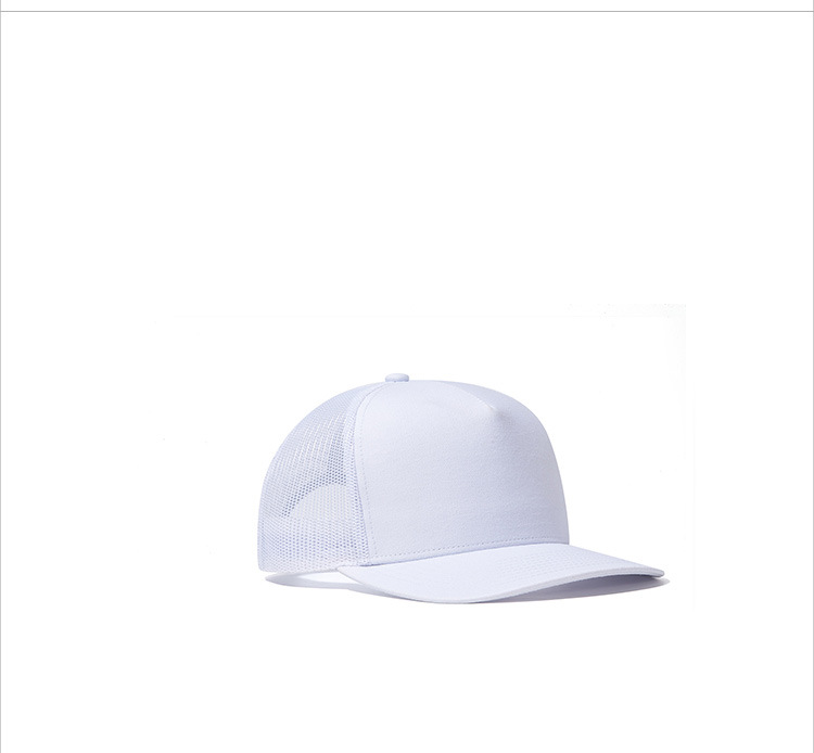 跨境东南亚新款微弯帽沿卡车网帽纯白色遮阳潮男五片棒球帽女