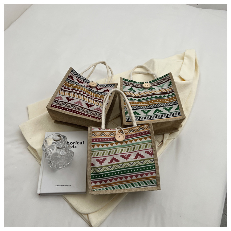 亚麻饭盒包包夏日时尚百搭外出手拎麻布包ins上班手提便当袋