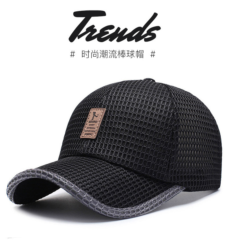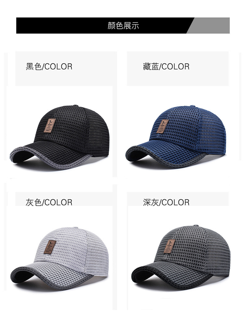 春夏季新品帽子透气网眼遮阳帽子防晒鸭舌帽男女士棒球帽贴标logo