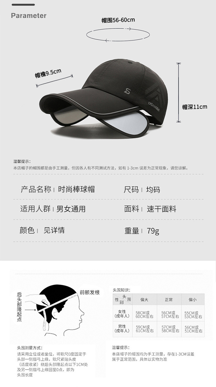 防晒夏季帽子防紫外线男士加长檐遮阳帽女户外运动速干棒球帽热销