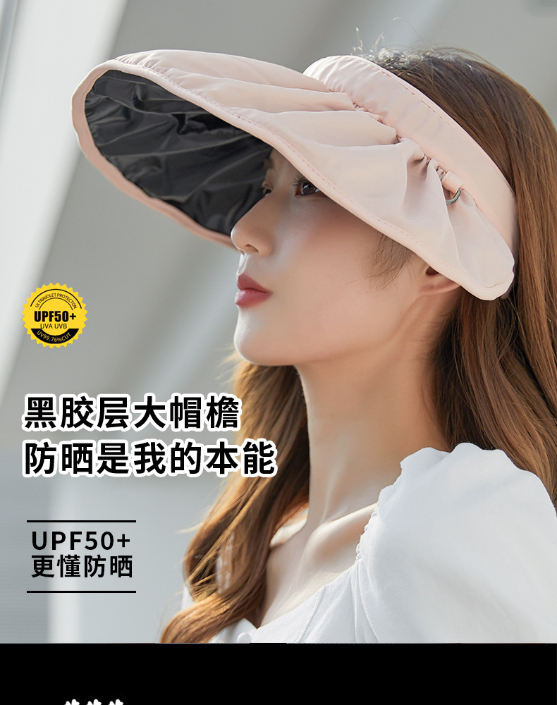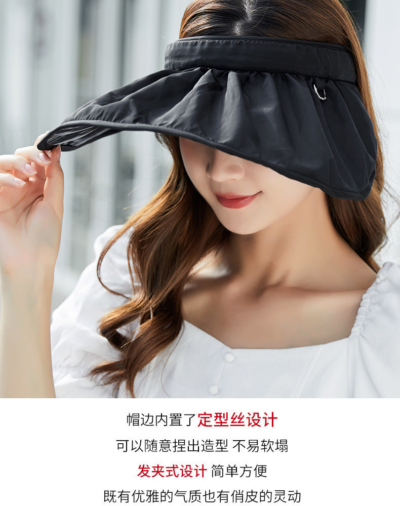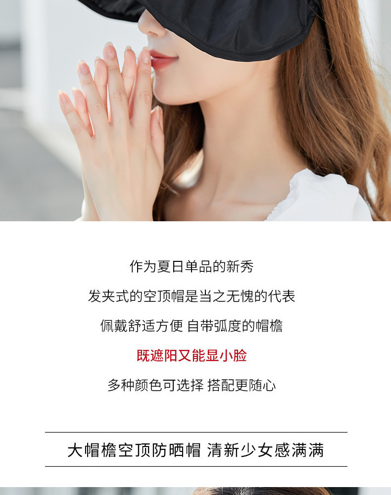 夏季帽子女户外出行防晒遮阳帽子升级黑胶两用发夹发箍空顶帽跨境