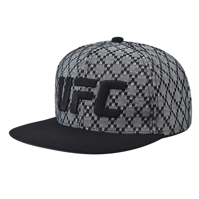 跨境新款户外潮绣花ufc棒球帽男女士格子鸭舌帽网帽时尚帽子批发