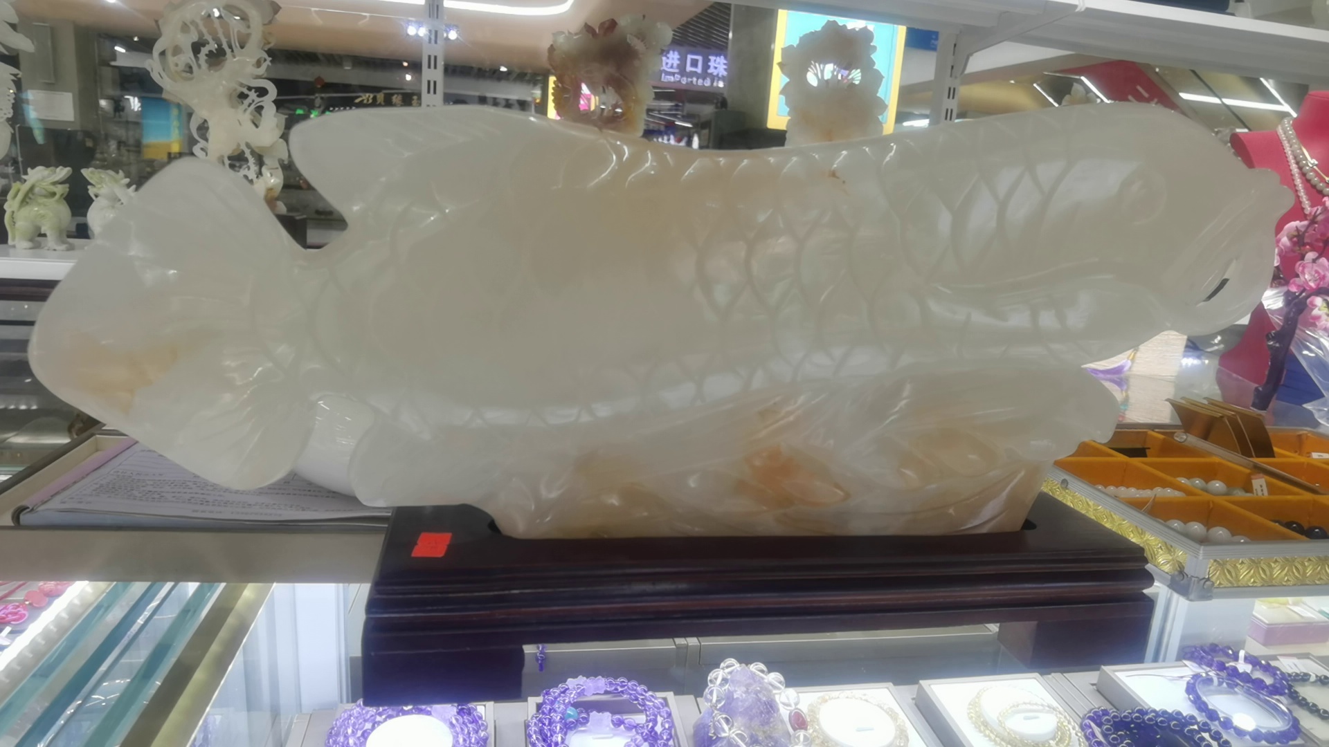 巴基斯坦天然玉石摆件,鱼跃龙门,年年有余52*22