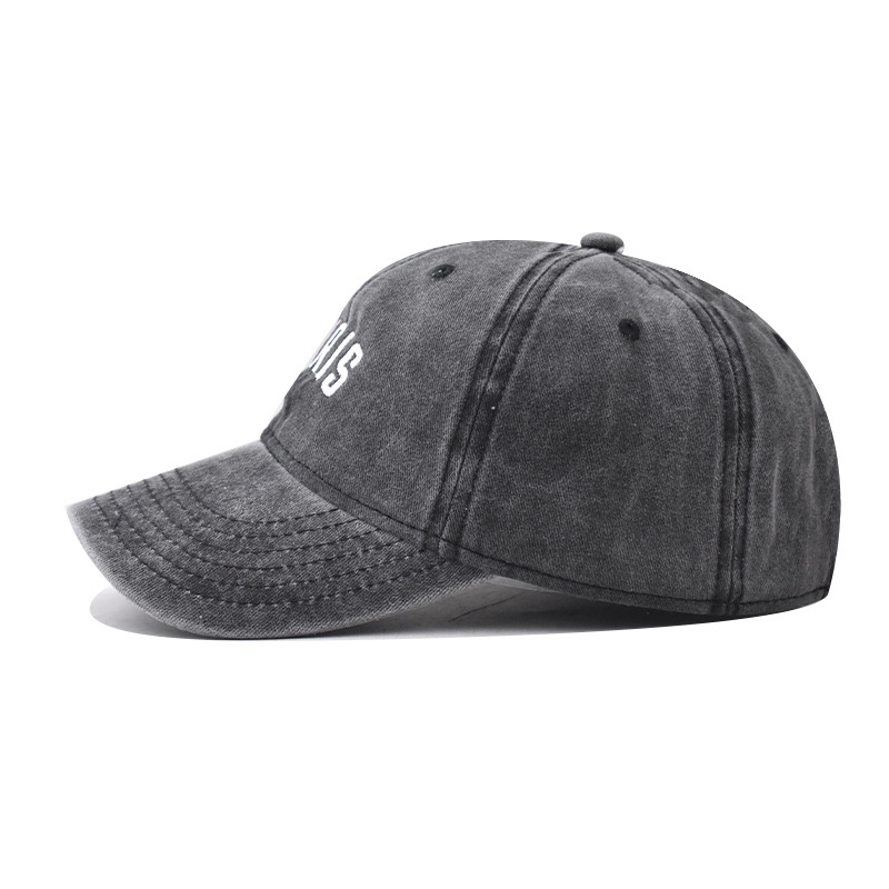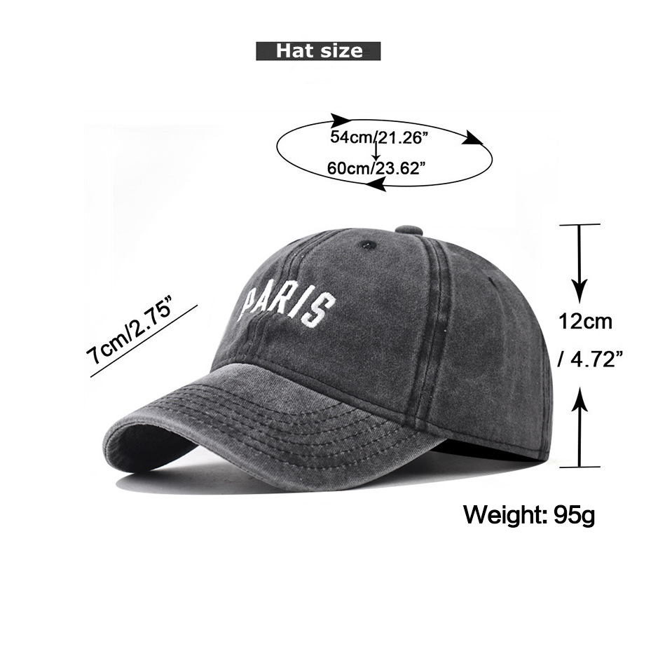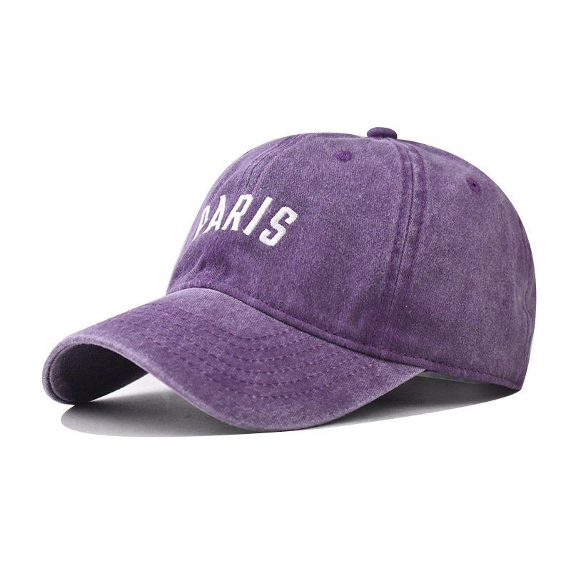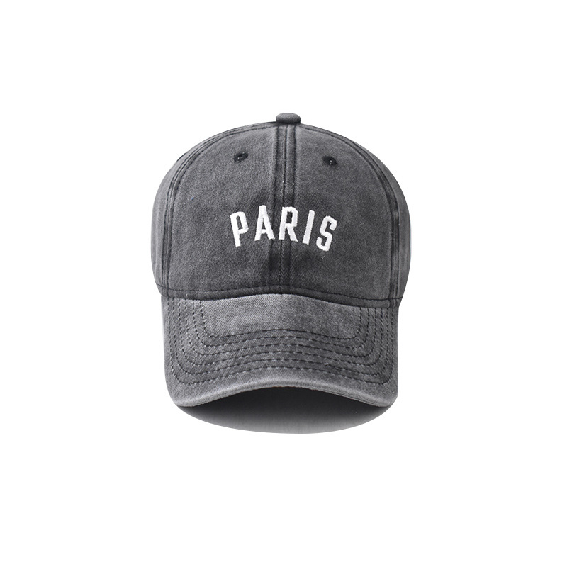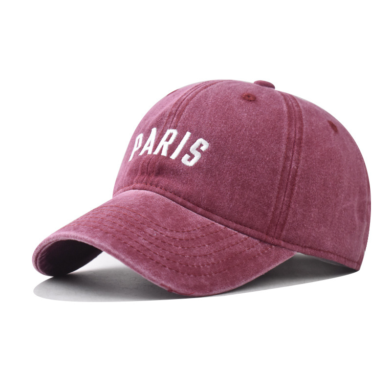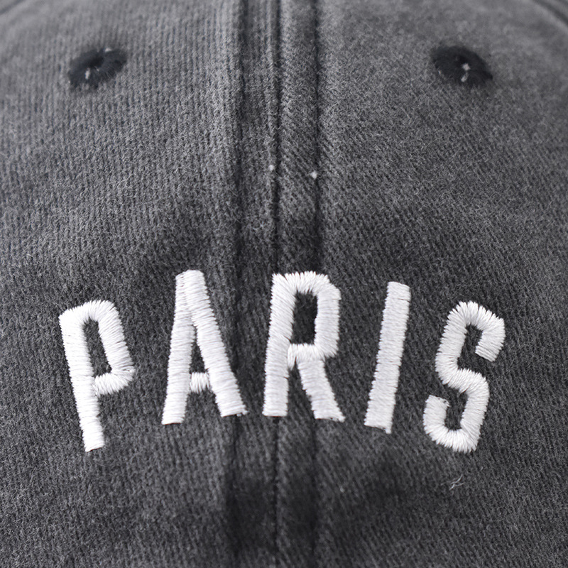跨境纯棉水洗做旧PARIS小字母绣花棒球帽男女户外印花鸭舌帽