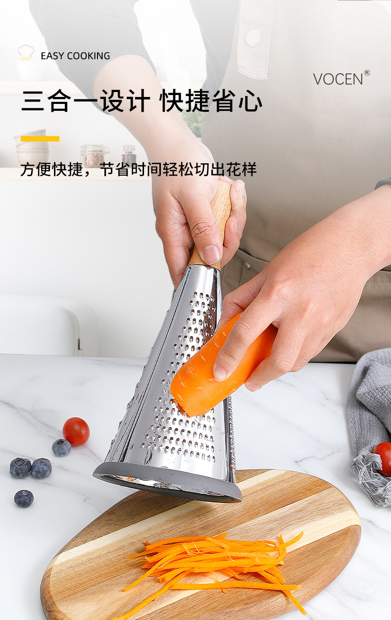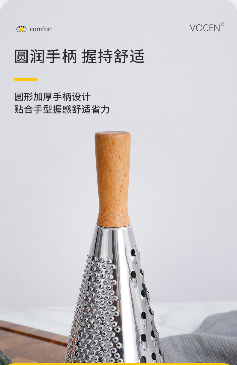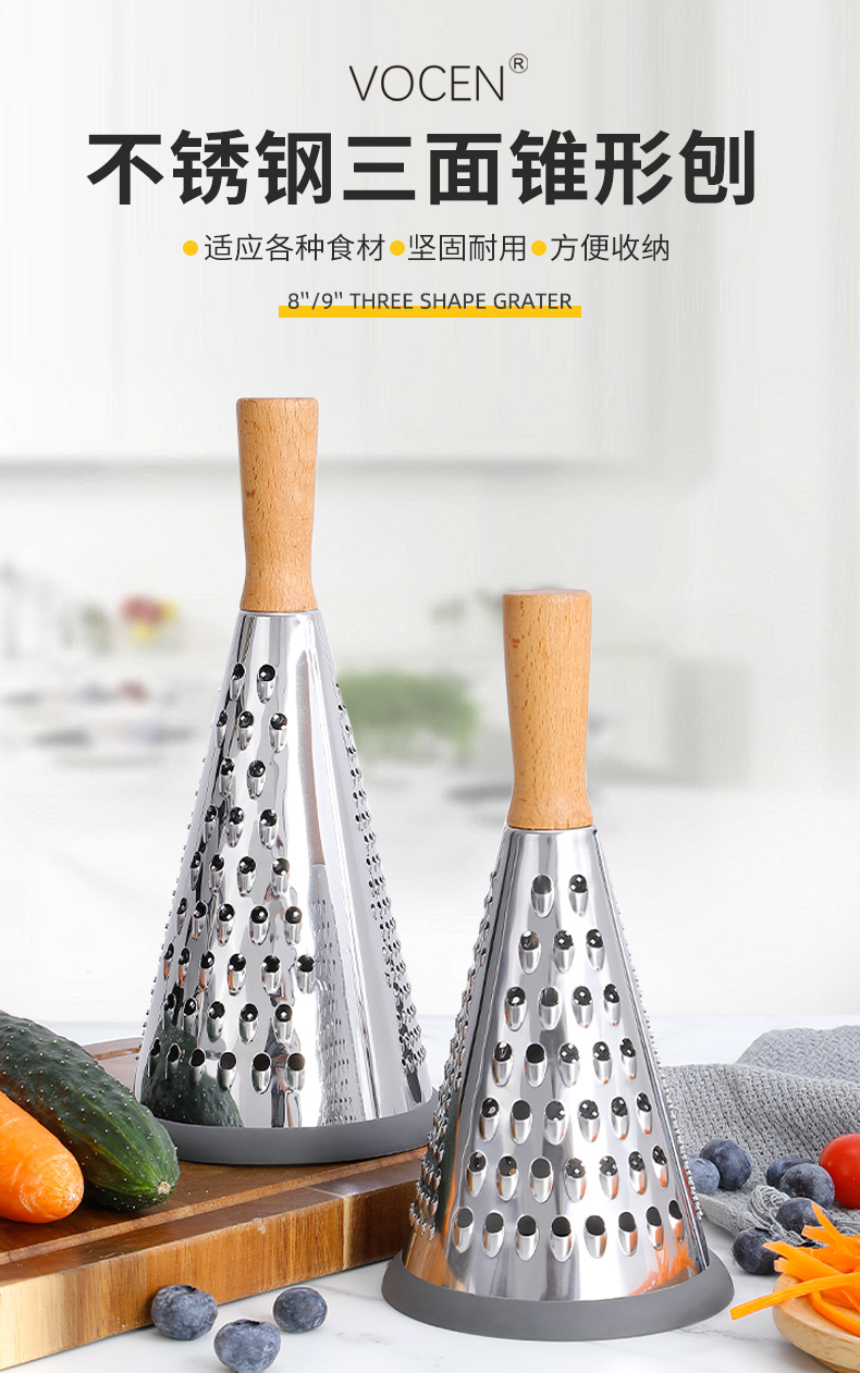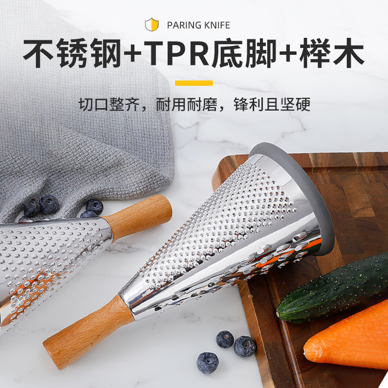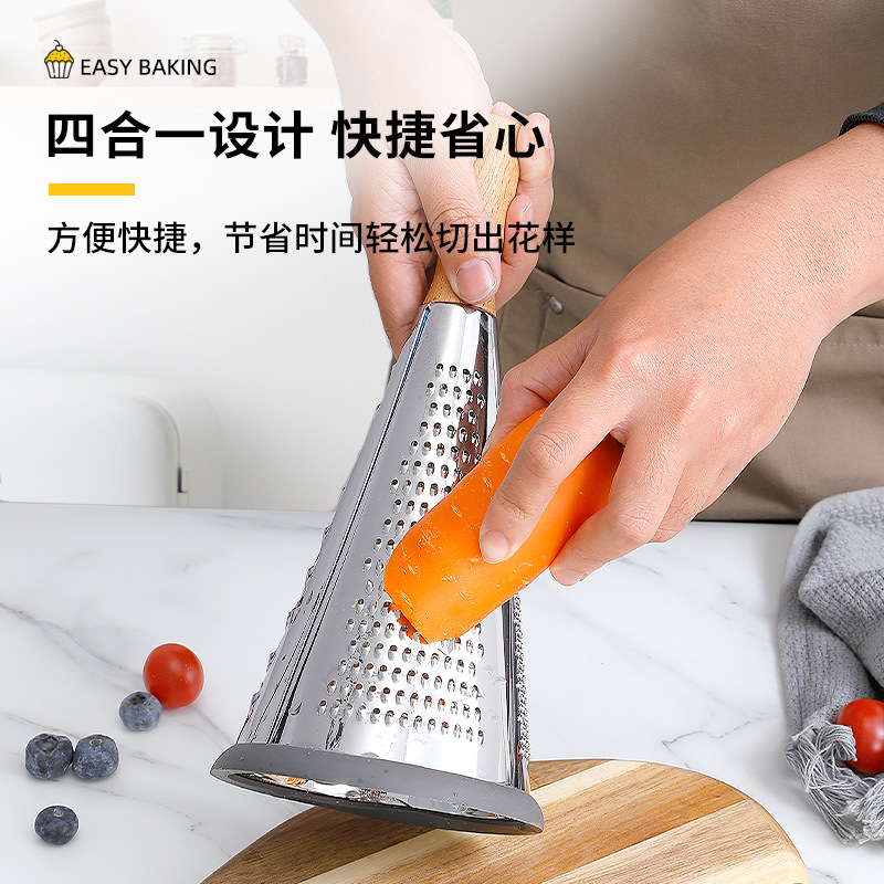 芝士刨土豆刨丝器家用厨房三面圆锥刨多功能擦丝器木柄蔬菜刨丝器