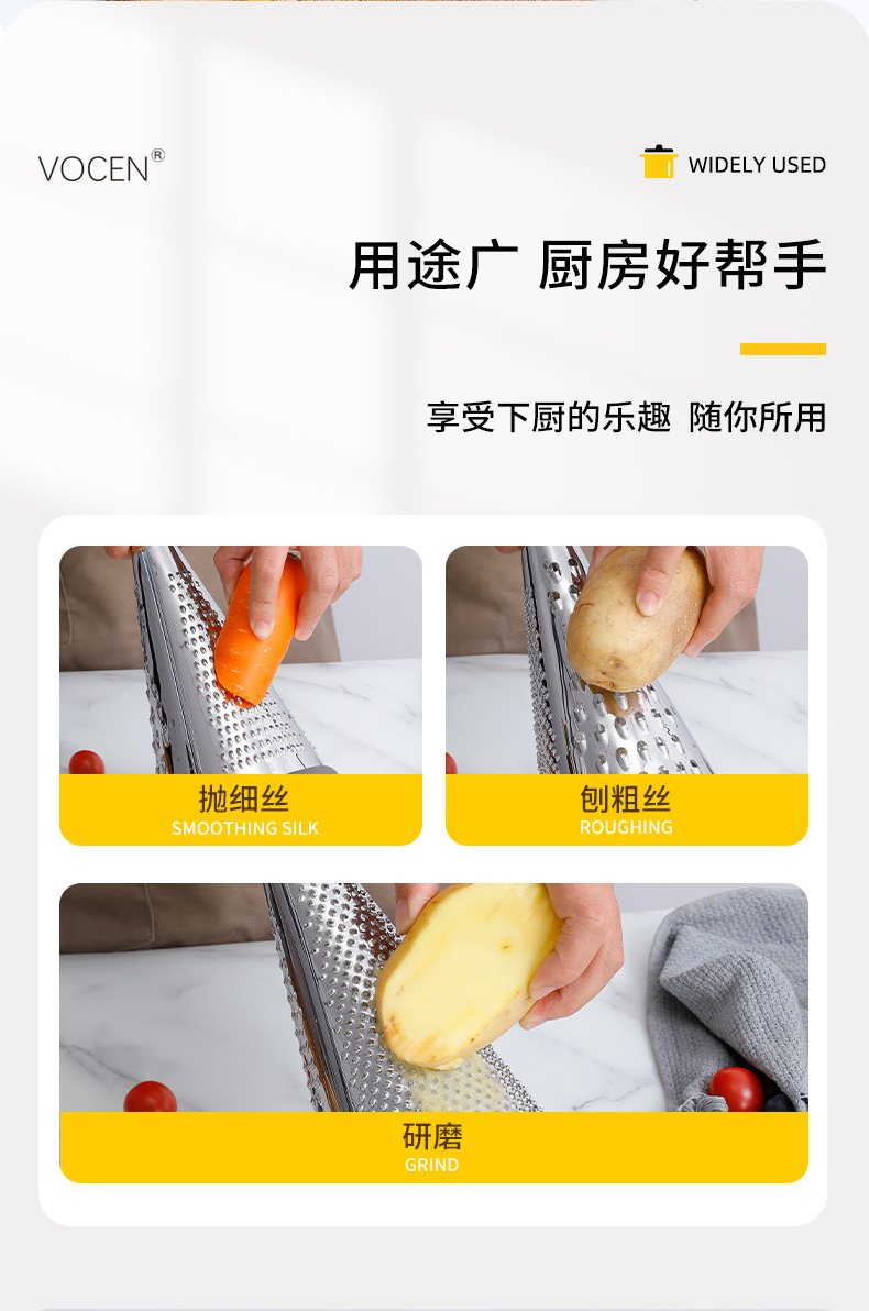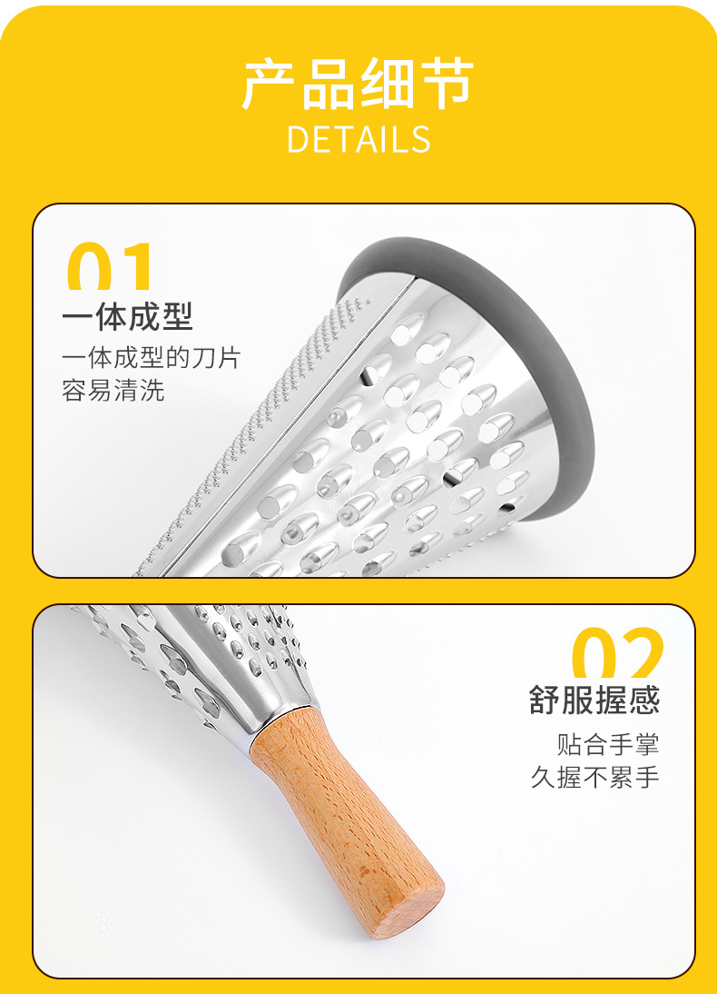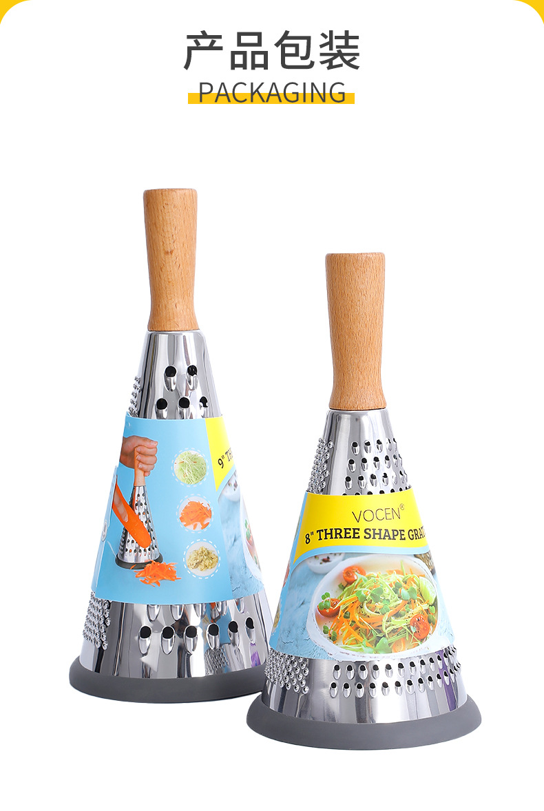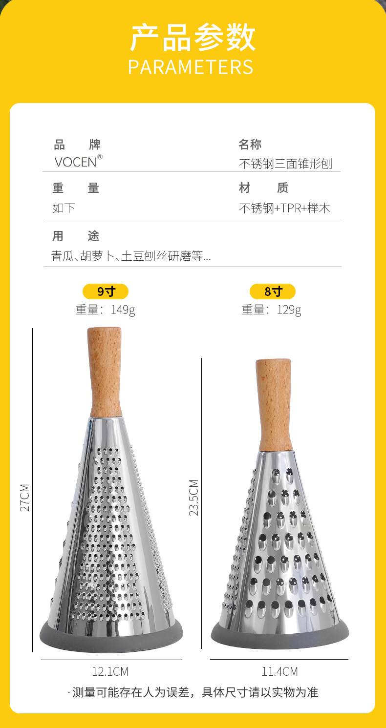 芝士刨土豆刨丝器家用厨房三面圆锥刨多功能擦丝器木柄蔬菜刨丝器