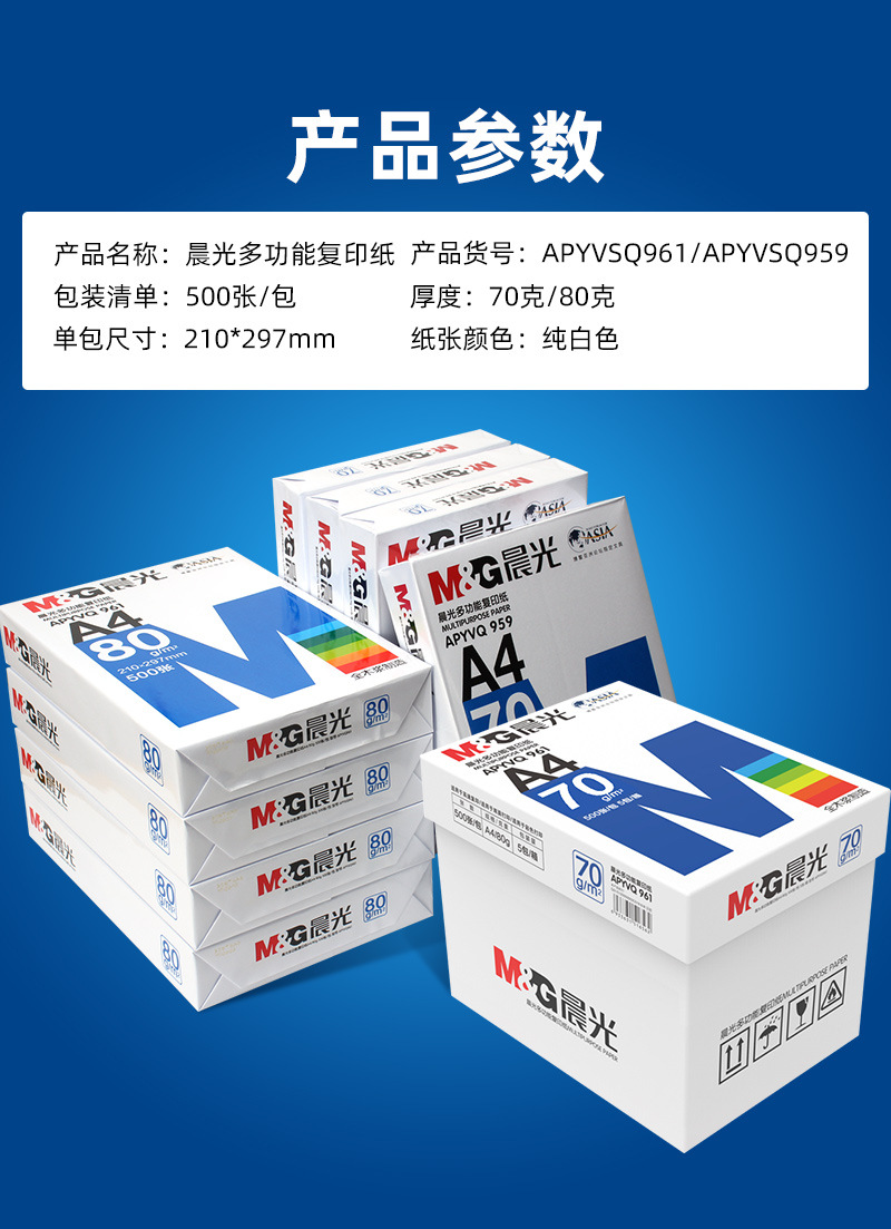 晨光a4打印纸整箱批80g双面复印纸A3A5草稿白纸凭证纸A4纸打印纸