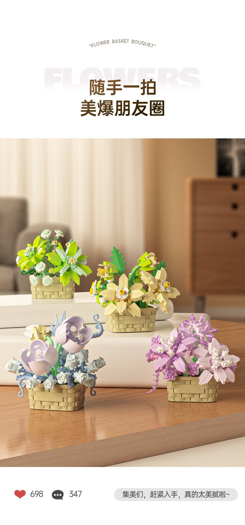 兼容乐高积木永生花系列花篮摆件玫瑰模型儿童益智拼装女生礼物