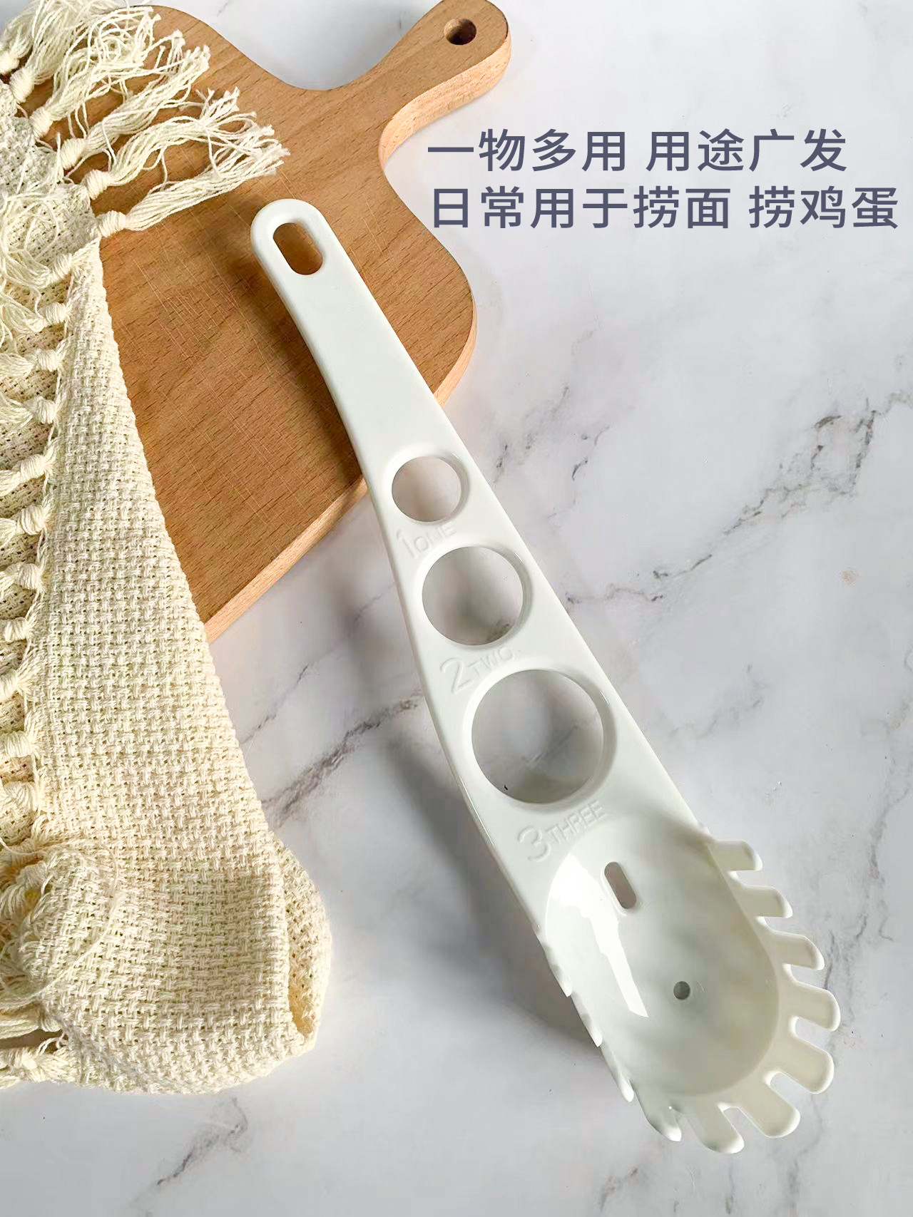 多功能烹饪勺三孔意粉尺二合一蛋黄分离器多功能打蛋器捞面捞蛋勺