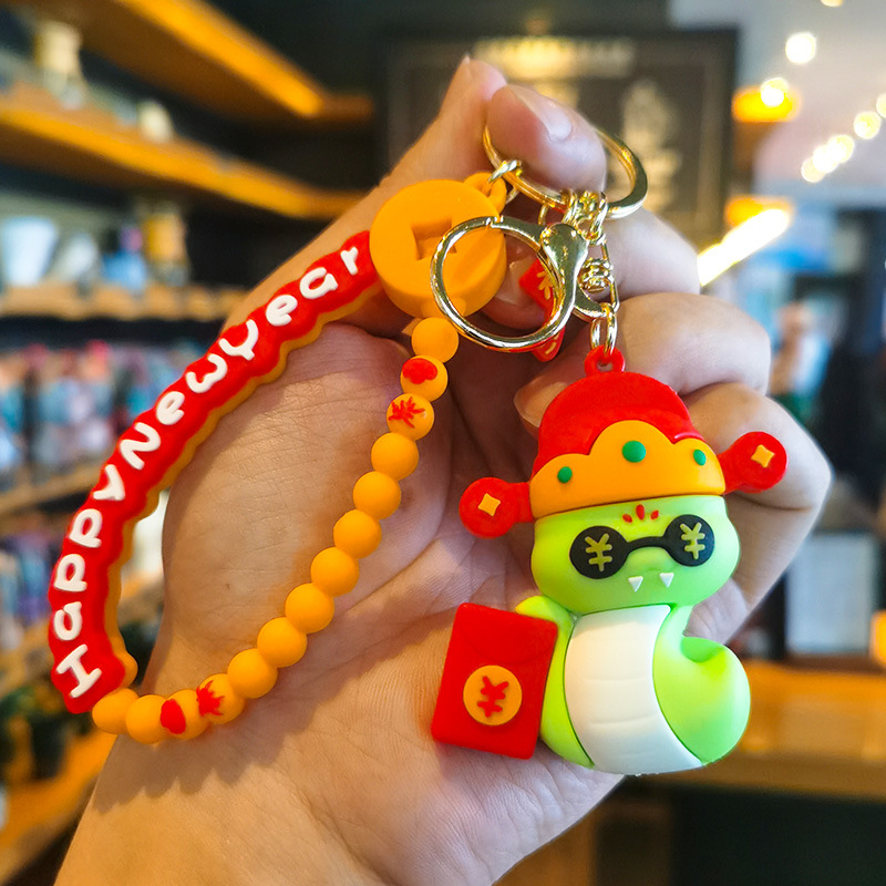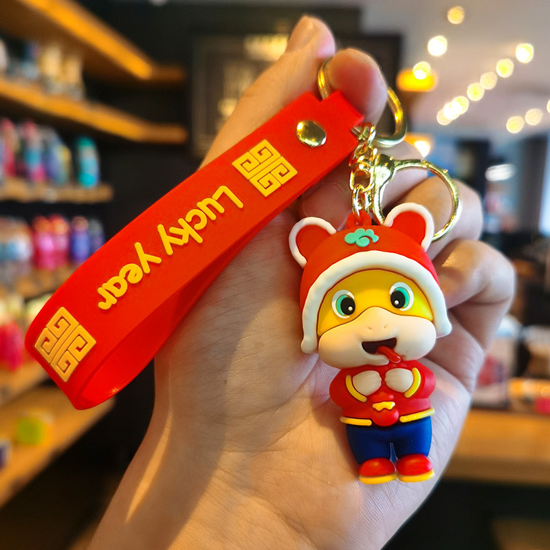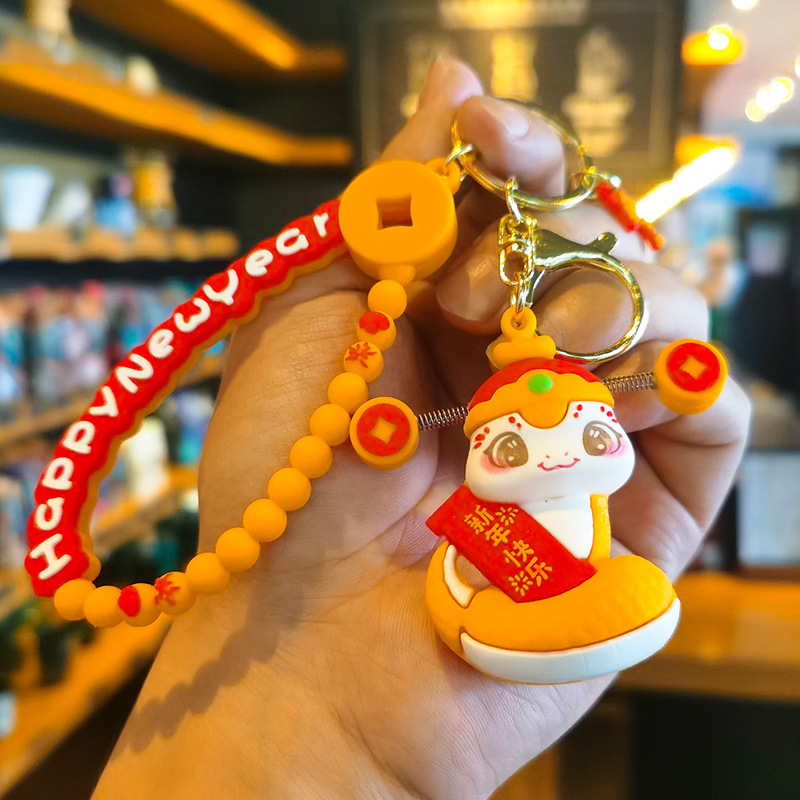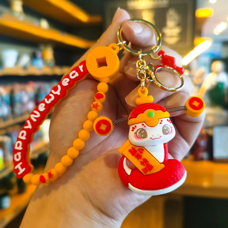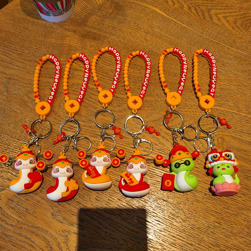 创意新年春节挂件蛇年钥匙扣卡通pvc公仔汽车配件钥匙链圣诞挂件