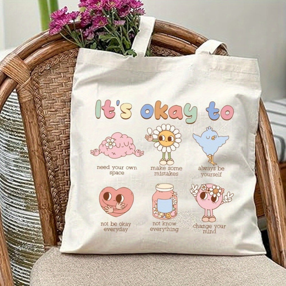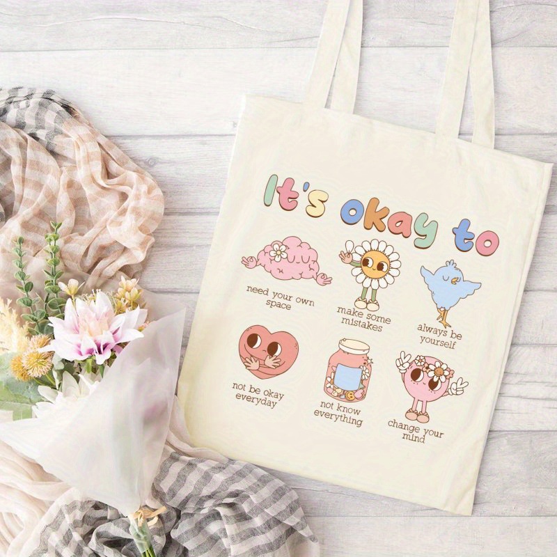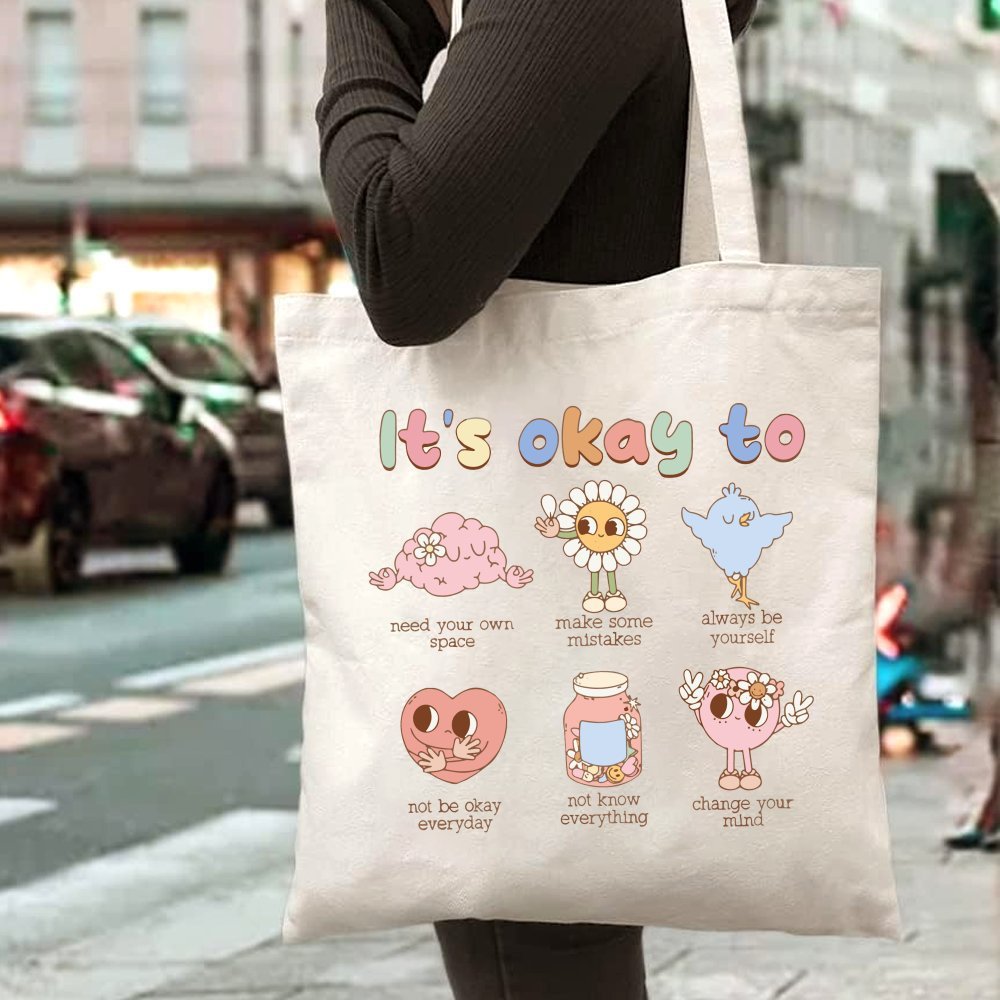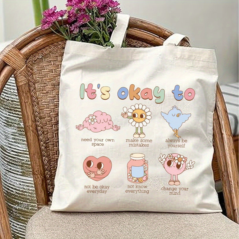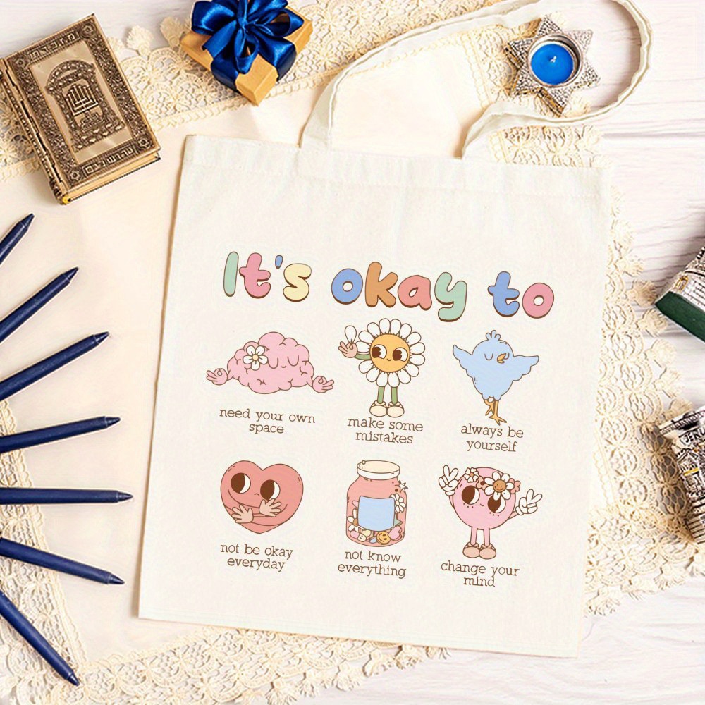 跨境热卖女士单肩包帆布手提袋带有励志的心理健康语句适合购物