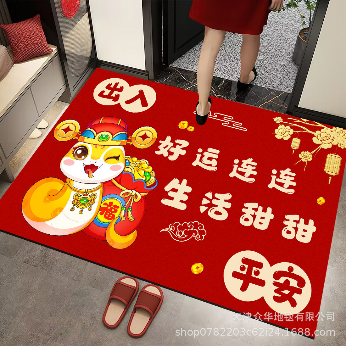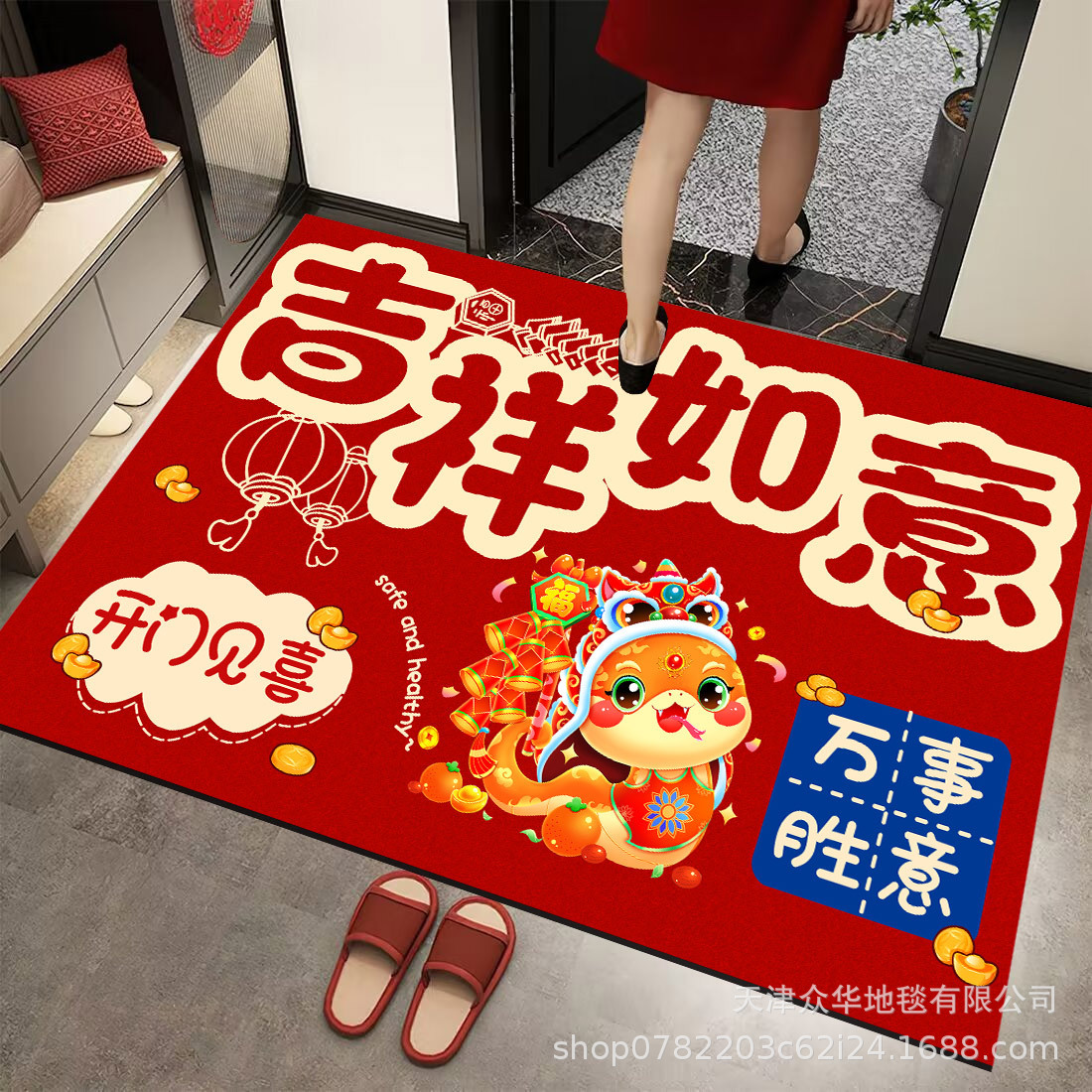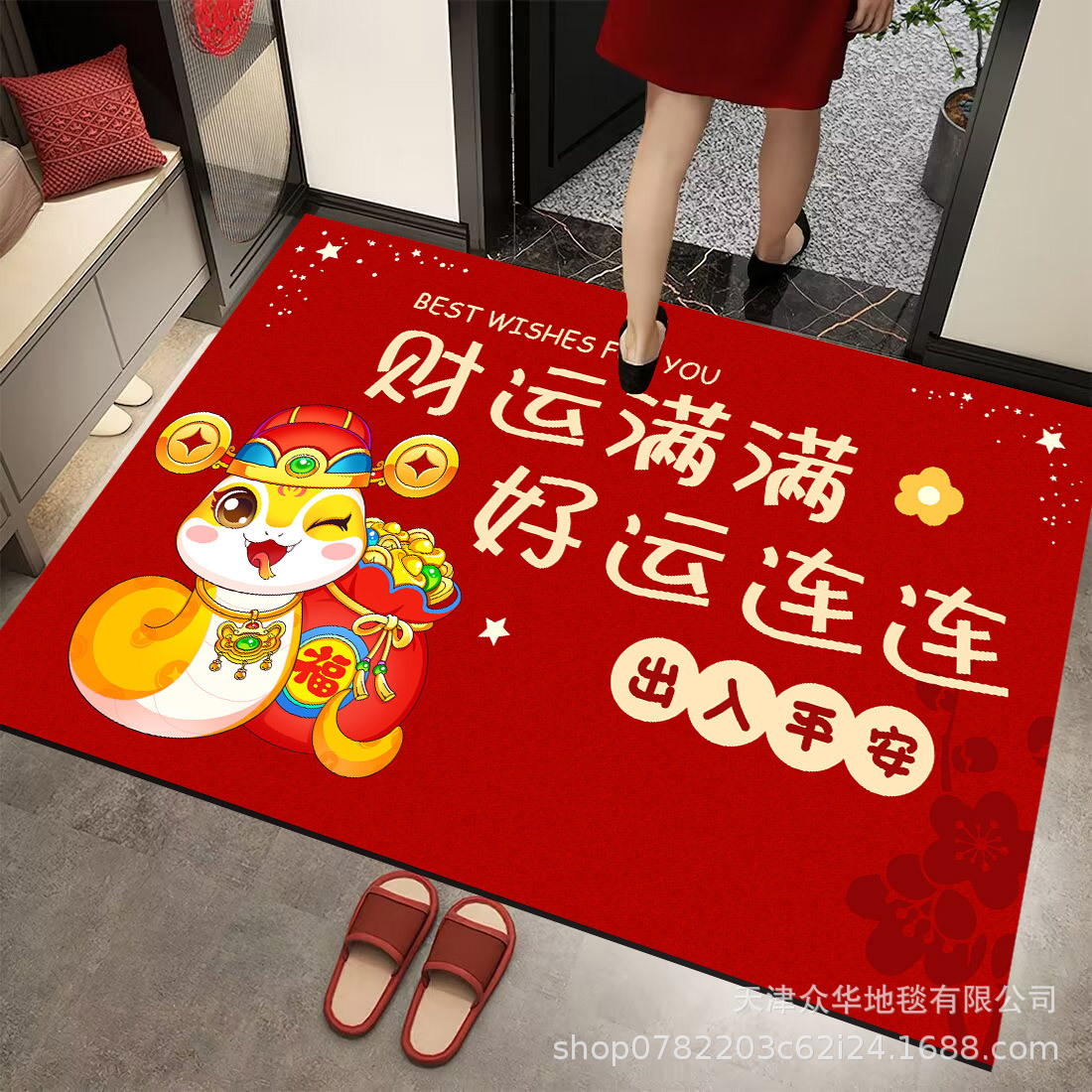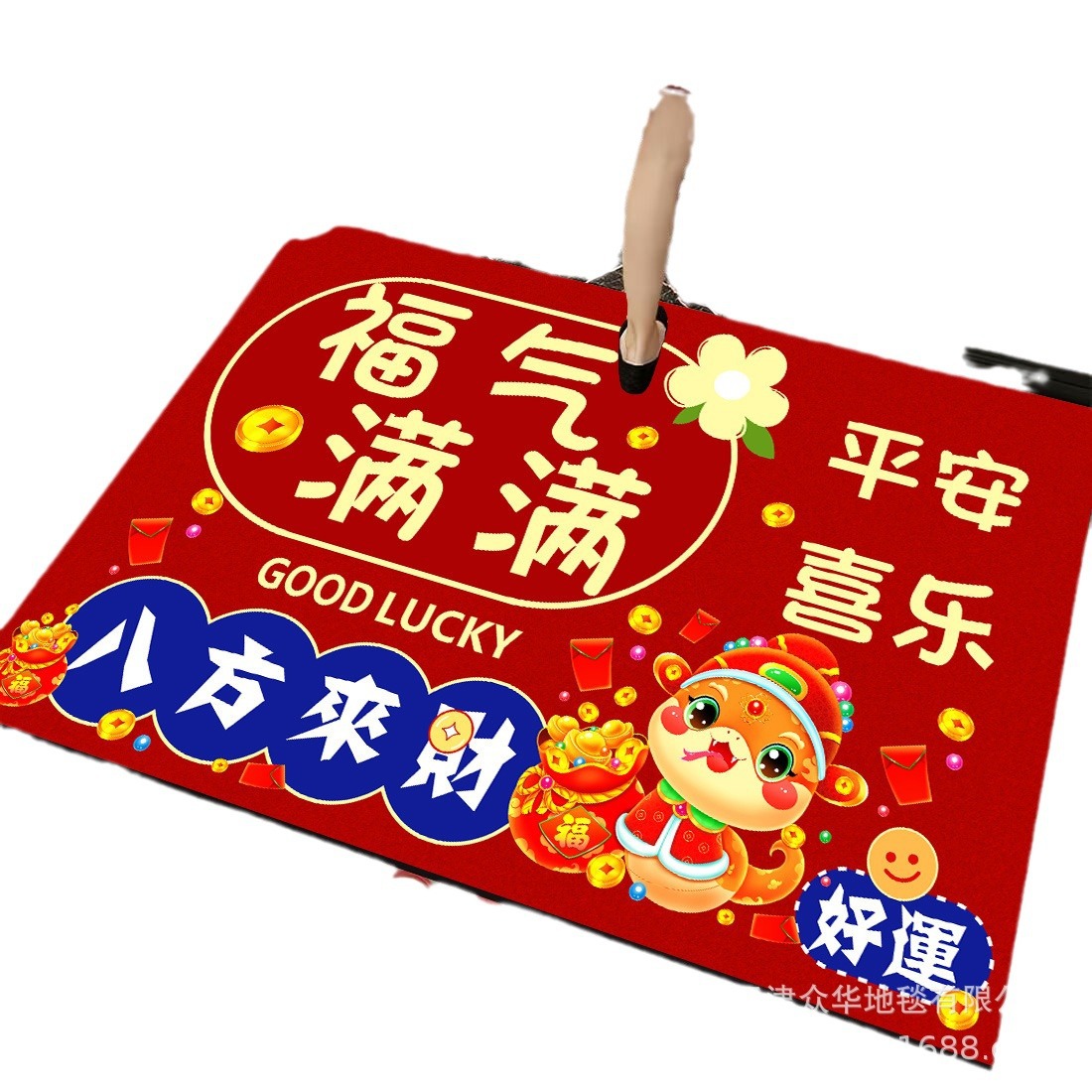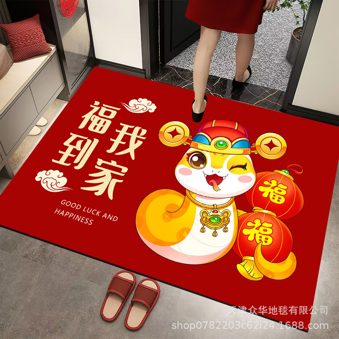 蛇年红门垫2025新年入户门玄关装饰地垫水晶绒公司礼品脚垫加LOGO